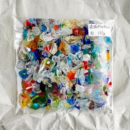 琉球ガラスの材料を仕入れた際、ちょっと小さいカレットがたくさん手に入りました。
