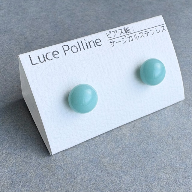 混じりっけのない透明な水色のガラスの粒です。 裏面に、塗料を焼き付けてあるので軸や肌の色が透けることなくお楽しみいただけます。 直径約9.3mm ーーー 【素材】 ・琉球ガラス、サージカルステンレス 【ご注意】 ・ハンドメイド商品ですので、色合いやテクスチャーに個体差があります。 ・ガラス製品ですので、劣化や変色の心配もなく、長くお楽しみいただけます。 ・お使いのモニター環境により、実物と色味が異なって見える場合があります。 ・ガラスには特有の気泡や内包物が含まれています。傷のように見えることもありますが、それもこの商品の魅力としてお楽しみください。