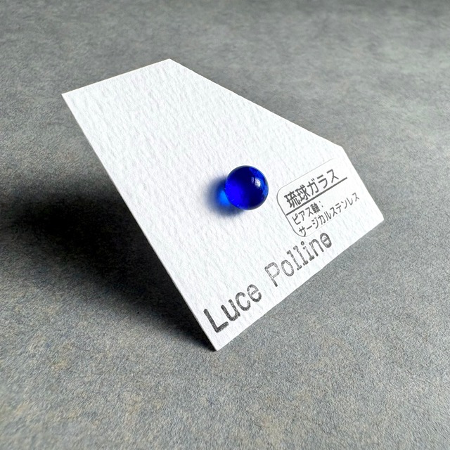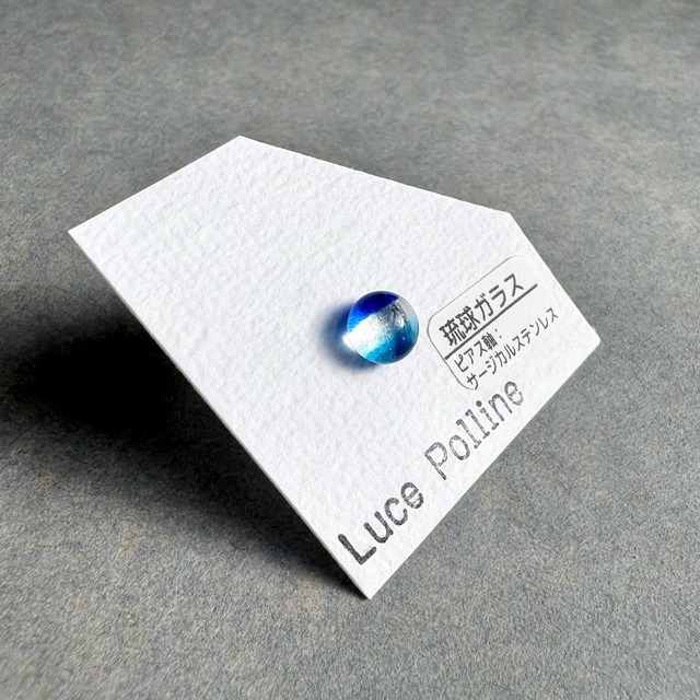 どの方向から見ても心が晴れるような透明な青のガラスの粒です。 裏面には焼き付け塗装を施しており、肌や軸の色が透過することなく、本来の色味をお楽しみいただけます。 直径約 7.6mm ーーー 【素材】 ・琉球ガラス、サージカルステンレス 【ご注意】 ・ハンドメイド商品ですので、色合いやテクスチャーに個体差があります。 ・ガラス製品ですので、劣化や変色の心配もなく、長くお楽しみいただけます。 ・お使いのモニター環境により、実物と色味が異なって見える場合があります。 ・ガラスには特有の気泡や内包物が含まれています。傷のように見えることもありますが、それもこの商品の魅力としてお楽しみください。