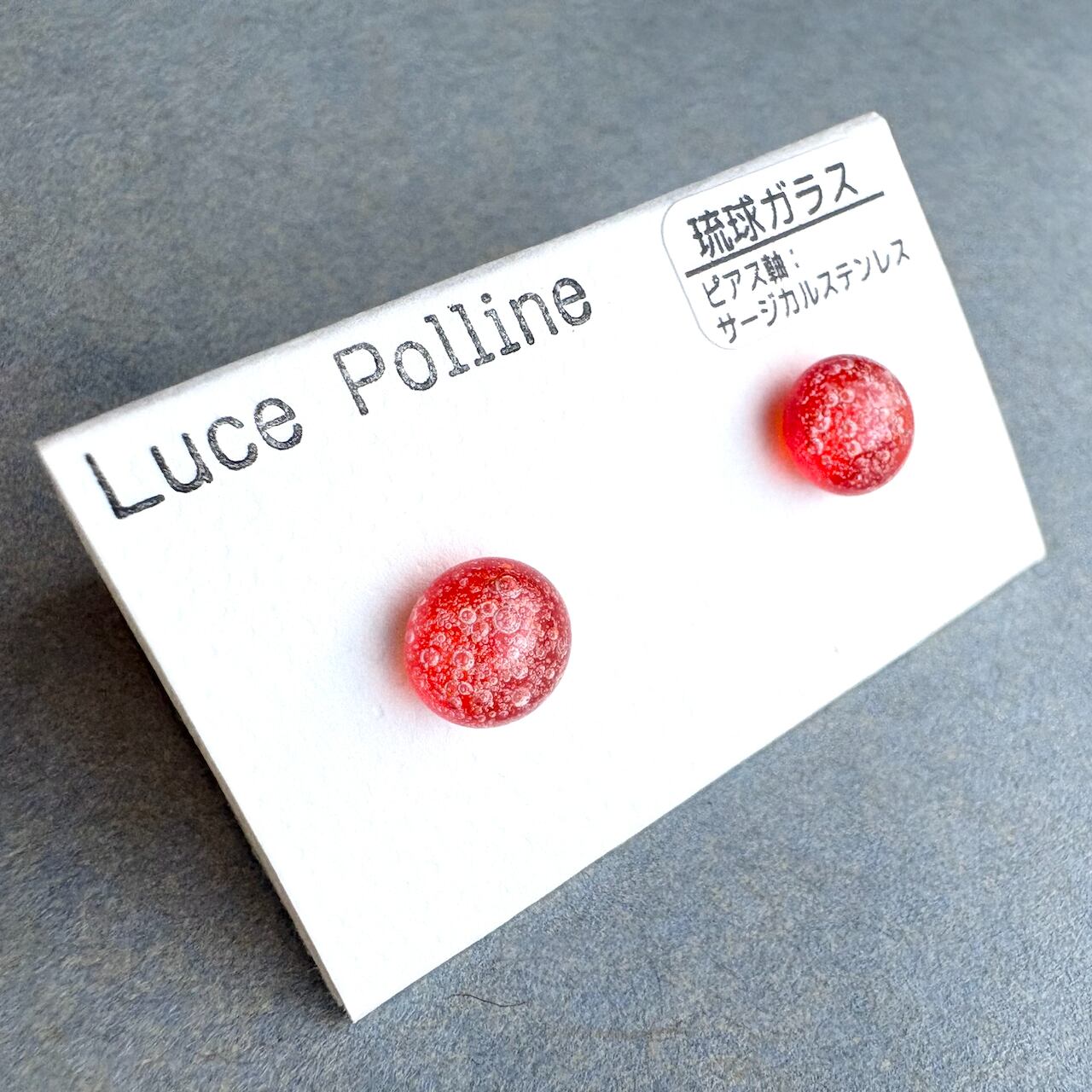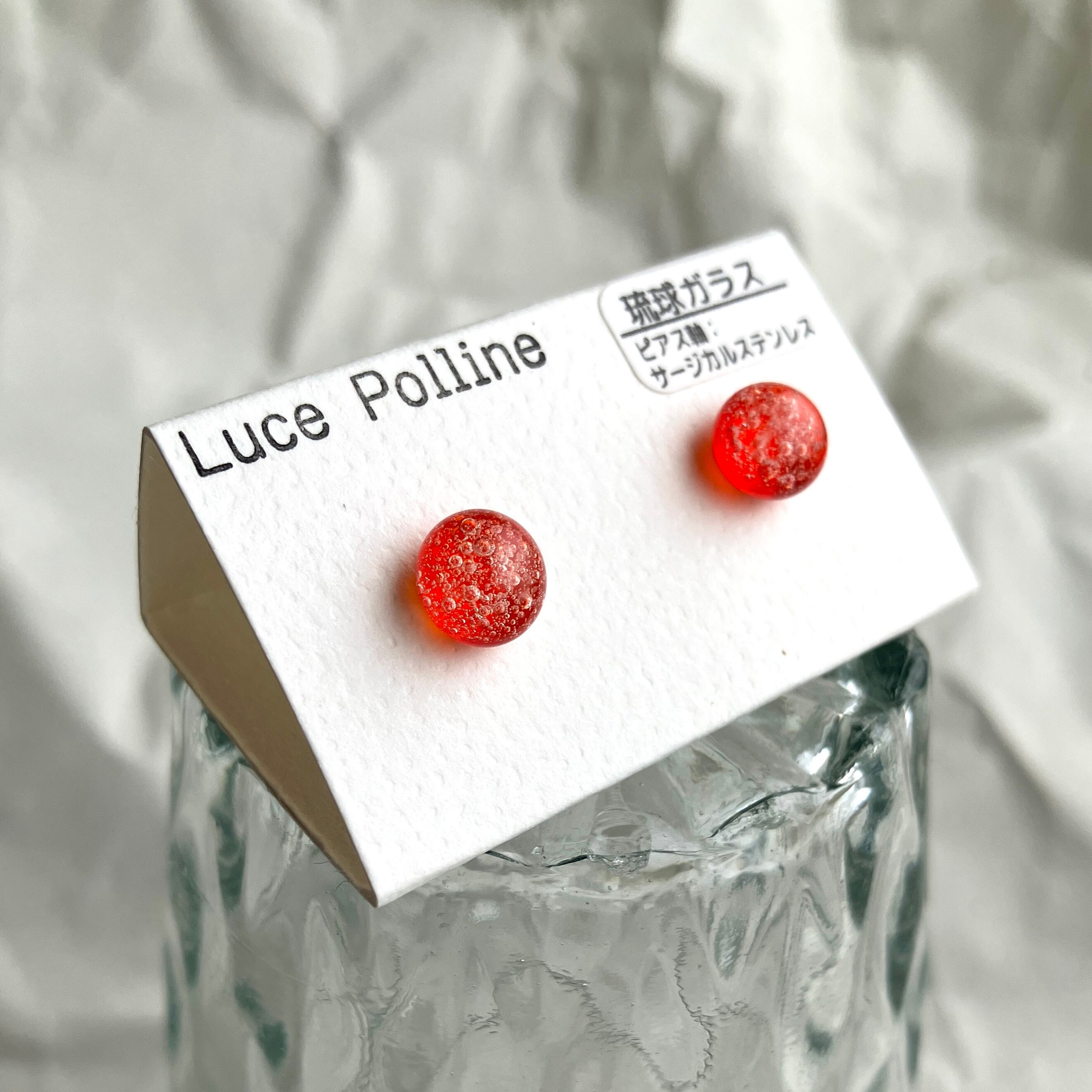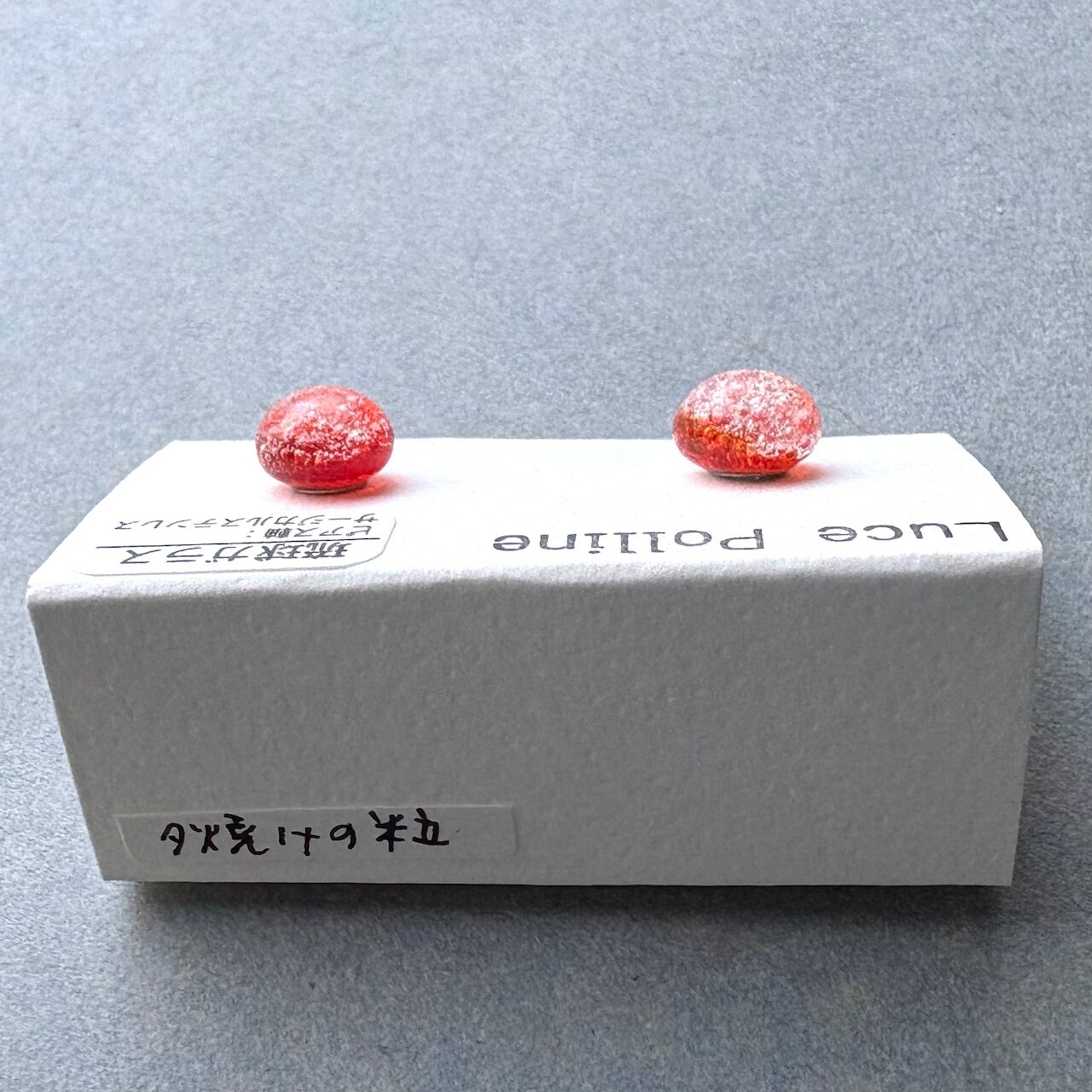 美しい夕焼けをイメージした温かみのある色合いの琉球ガラスを使用した「夕焼けの粒」ピアスです。光が当たるたびに、緋色やオレンジ色のグラデーションが耳元で輝き、魅力的な印象を与えてくれます。