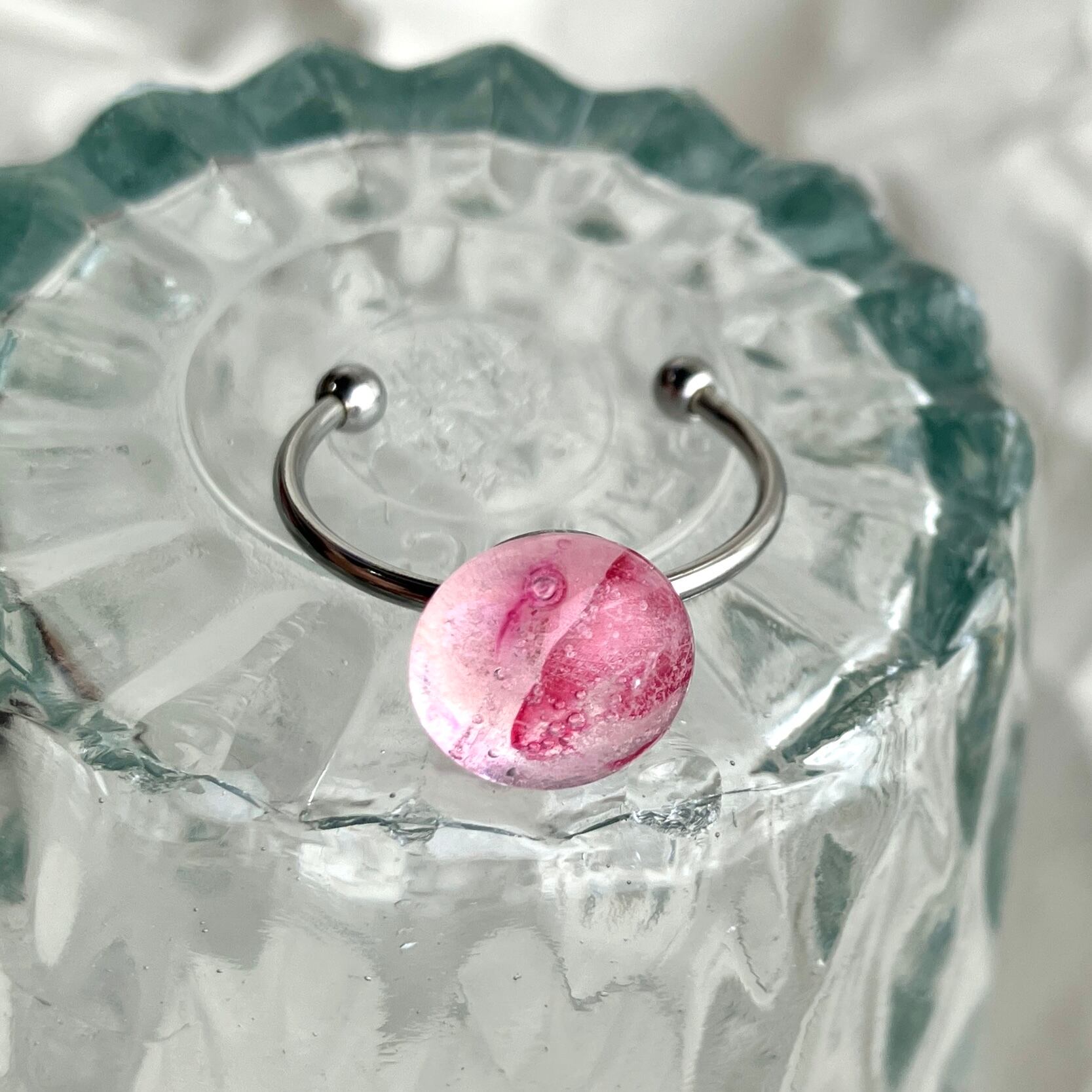 琉球ガラスの特性を生かし、一つ一つ丁寧に手作りで仕上げています。微細な気泡や模様の個体差をお楽しみいただき、世界にひとつだけの“珊瑚礁リング”をぜひお試しください。