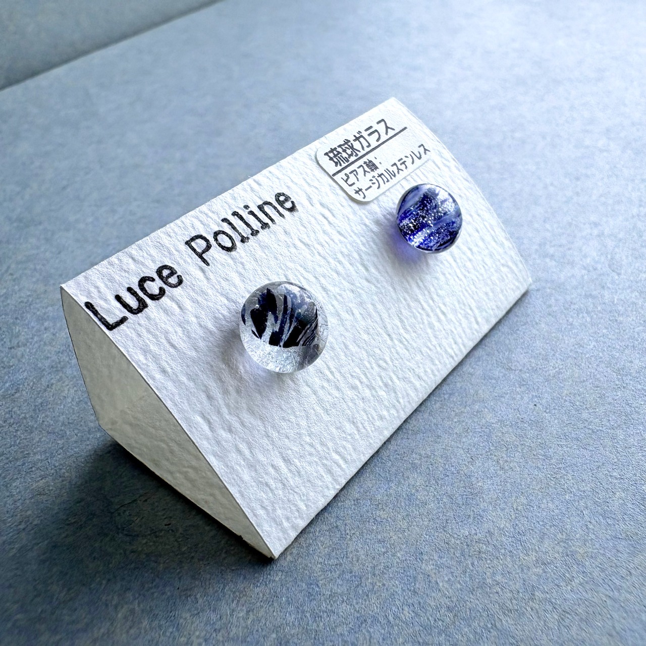 藍の縞の浴衣の粒 琉球ガラス ピアス