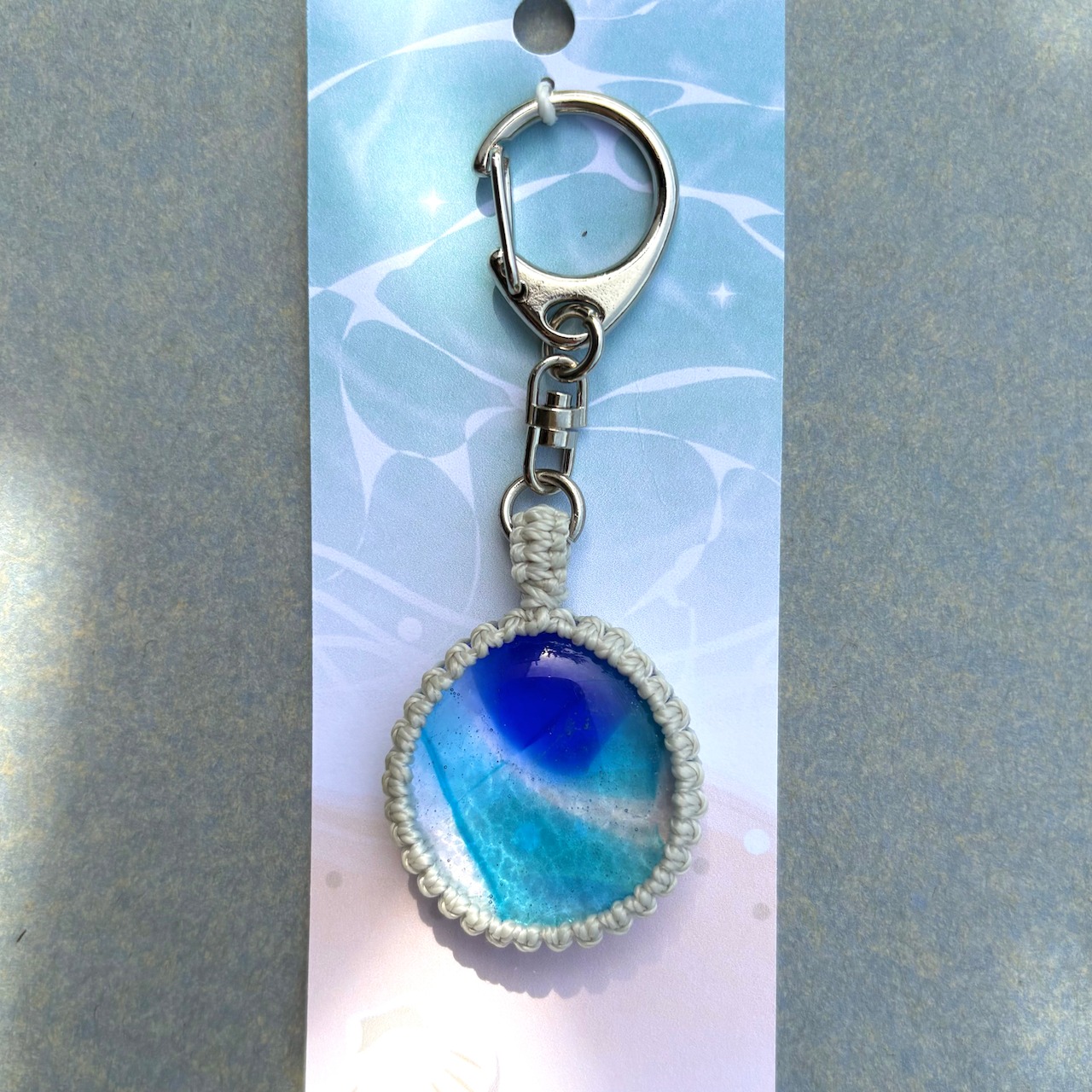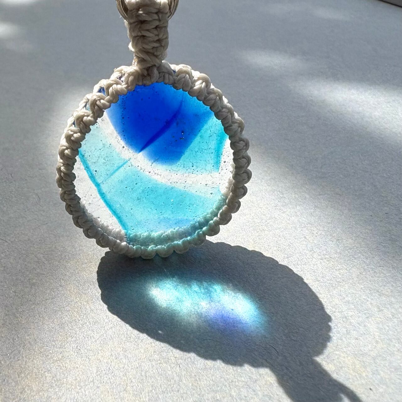 鮮やかな琉球ガラスのチャームは、まるで太陽の光を浴びた海の結晶のように輝きます。
