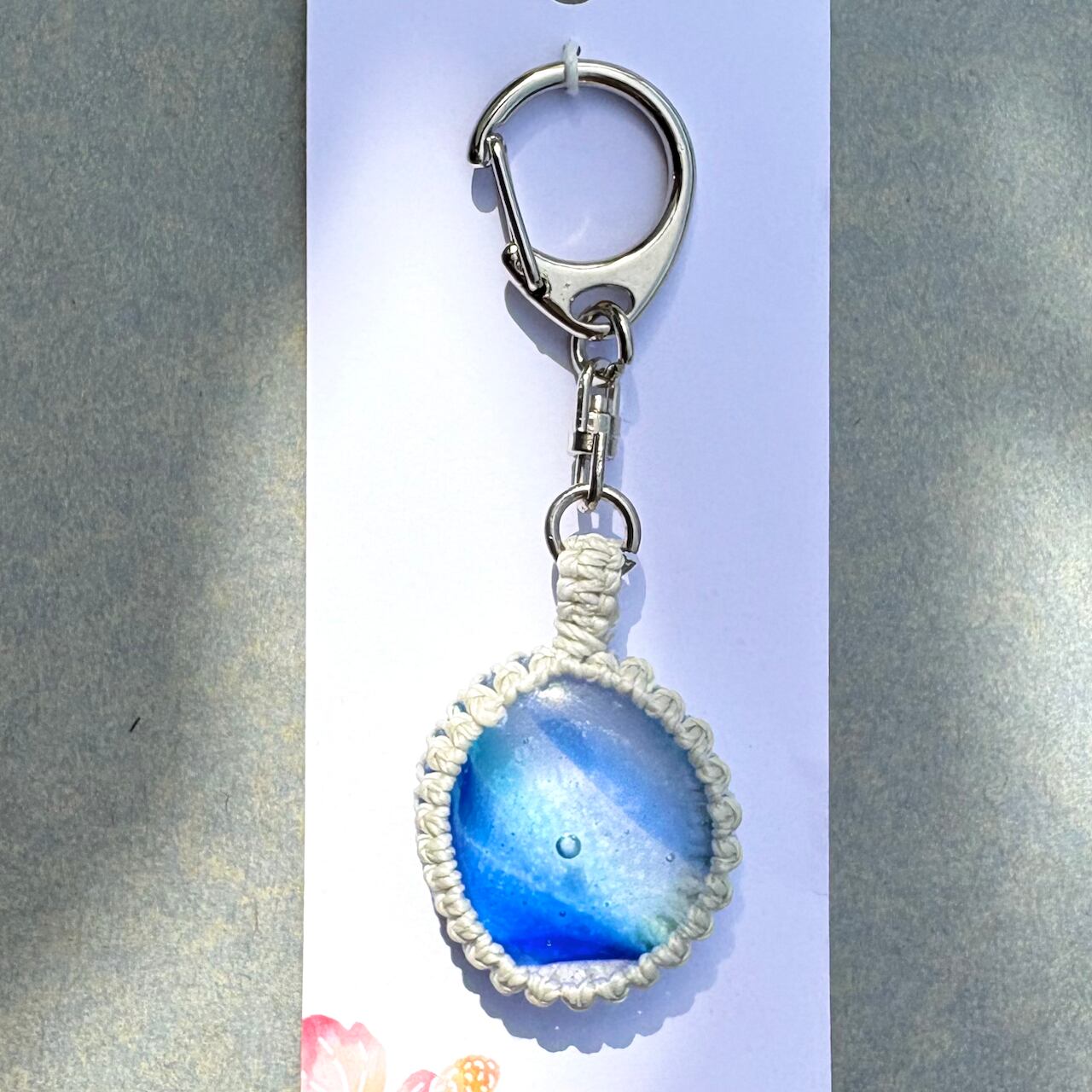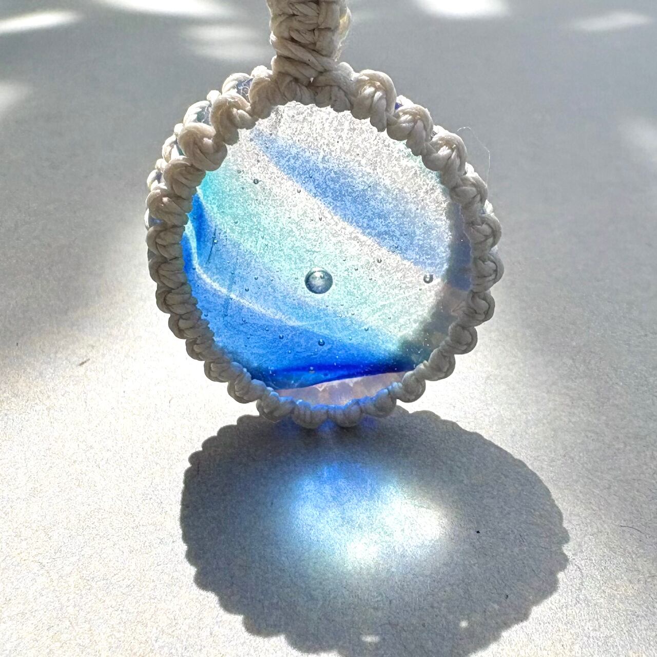 鮮やかな琉球ガラスのチャームは、まるで太陽の光を浴びた海の結晶のように輝きます。
