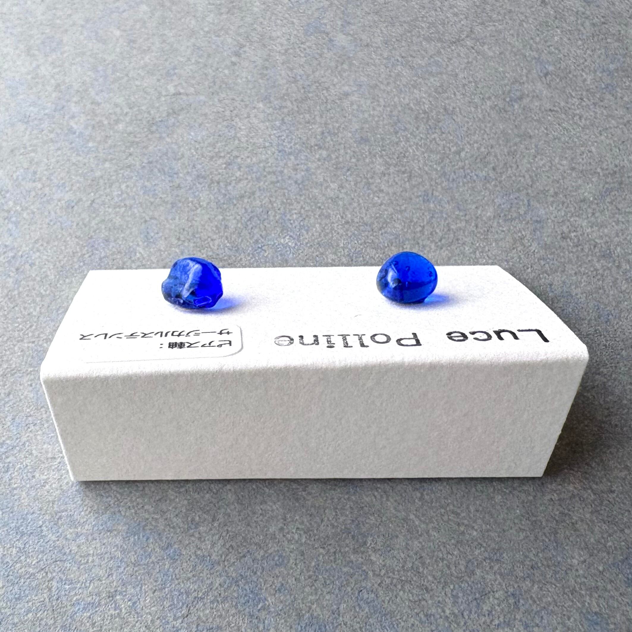 瑠璃色のガラスの粒を、元の形をほんのり残した形で溶かしてピアスに仕立てました。