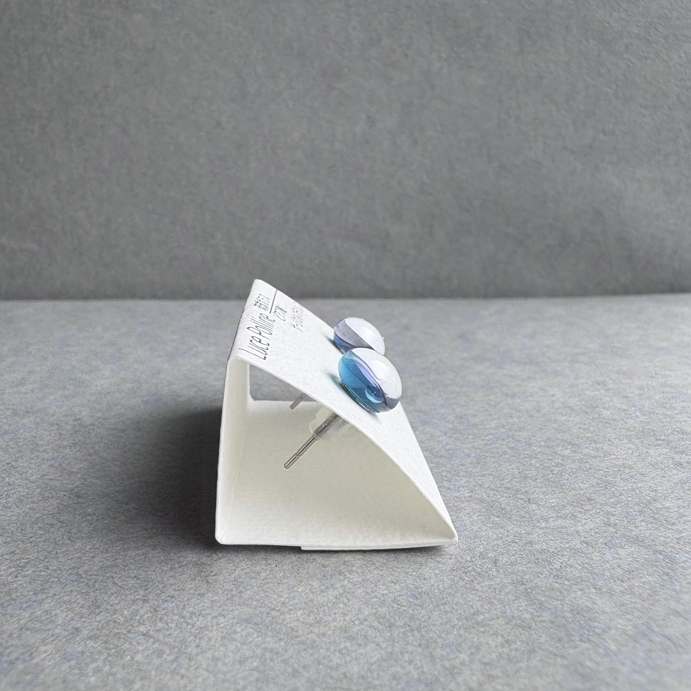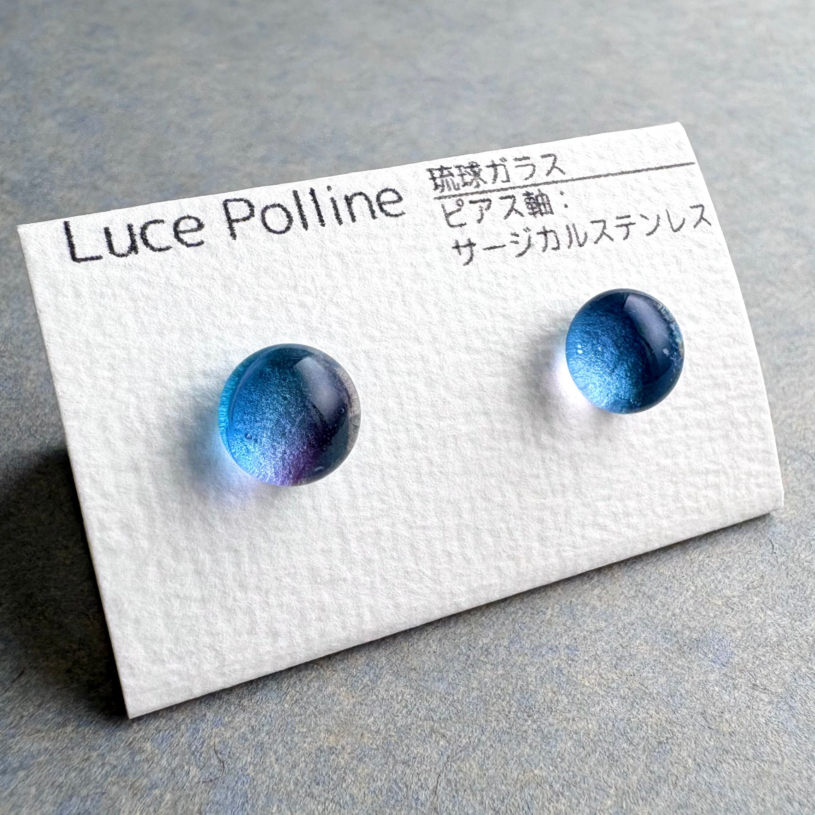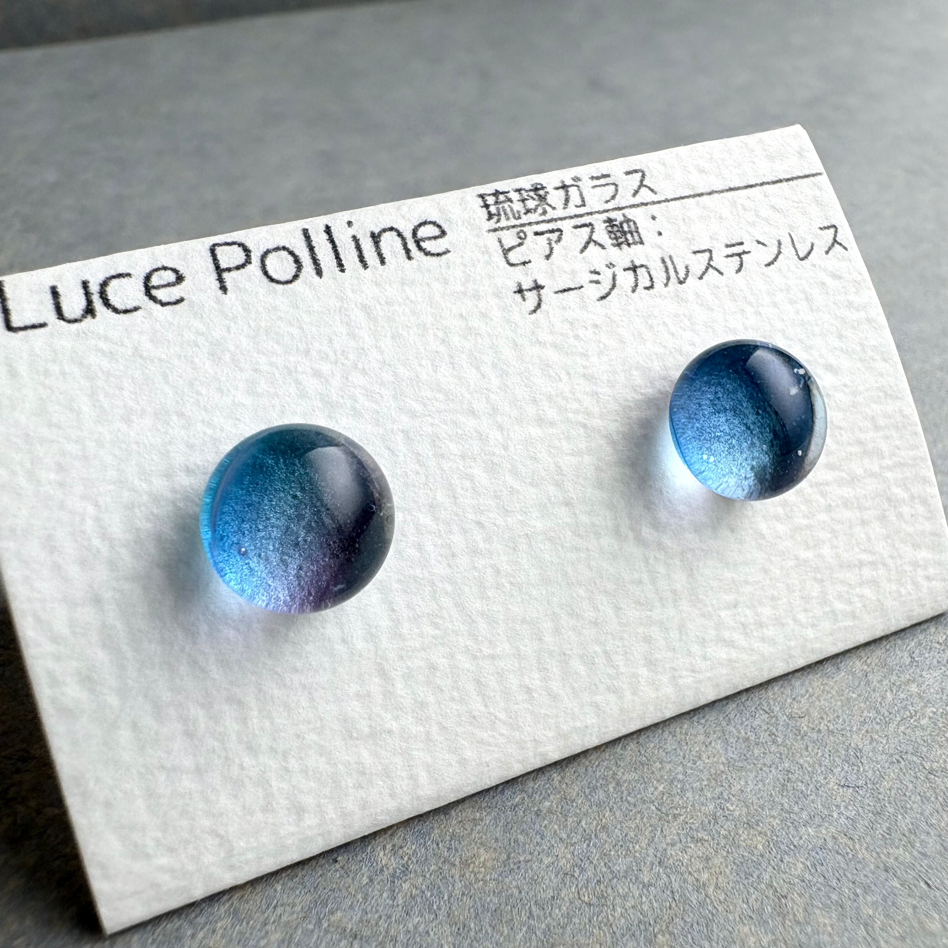 天空の闇が、星の明るさで青や紫に輝くような色合いのガラスの粒をピアスに仕立てました。