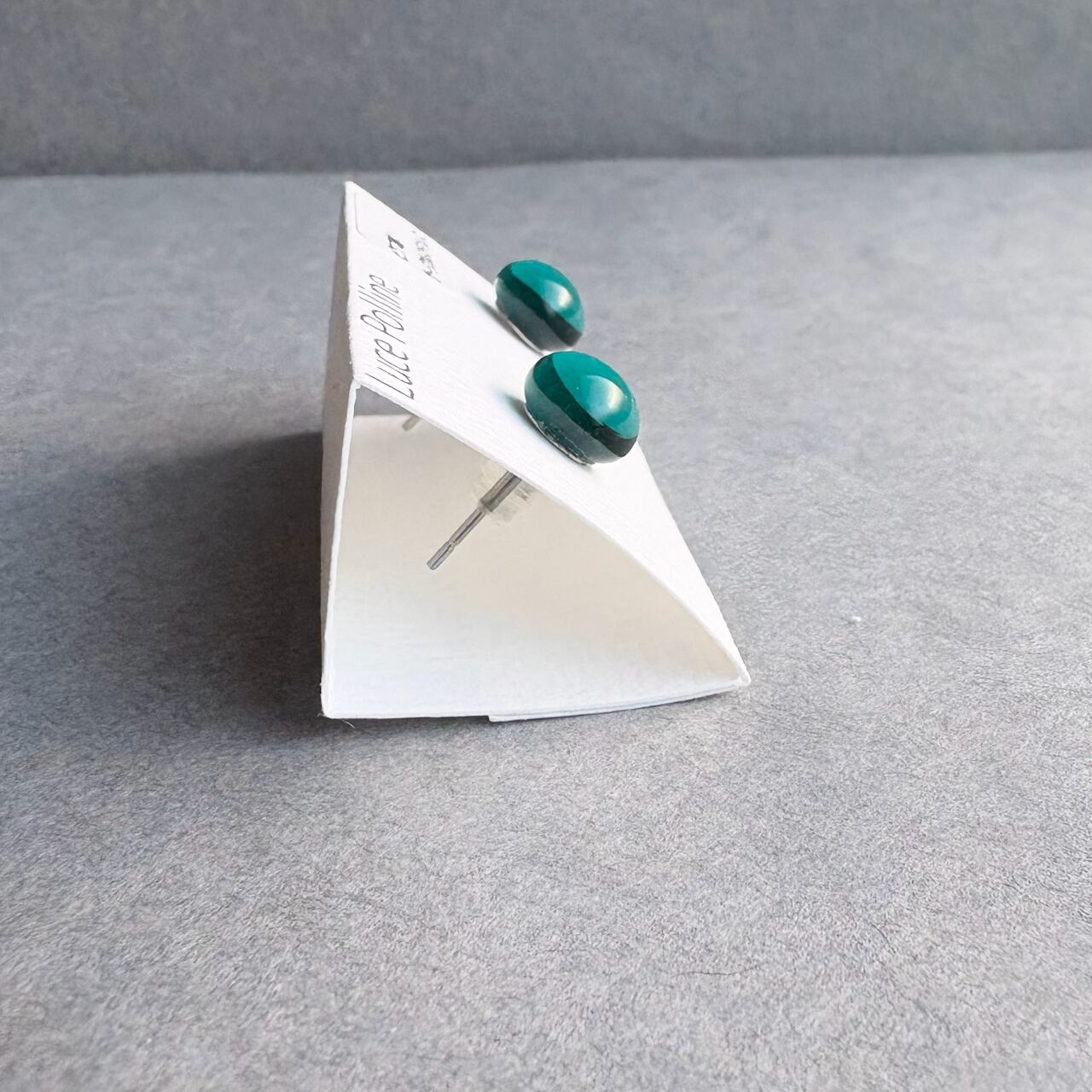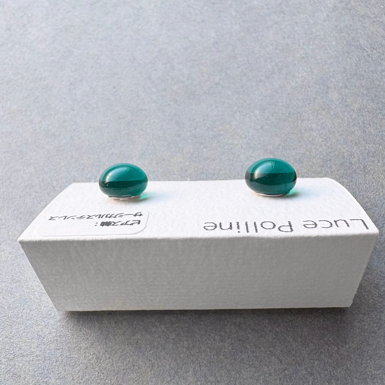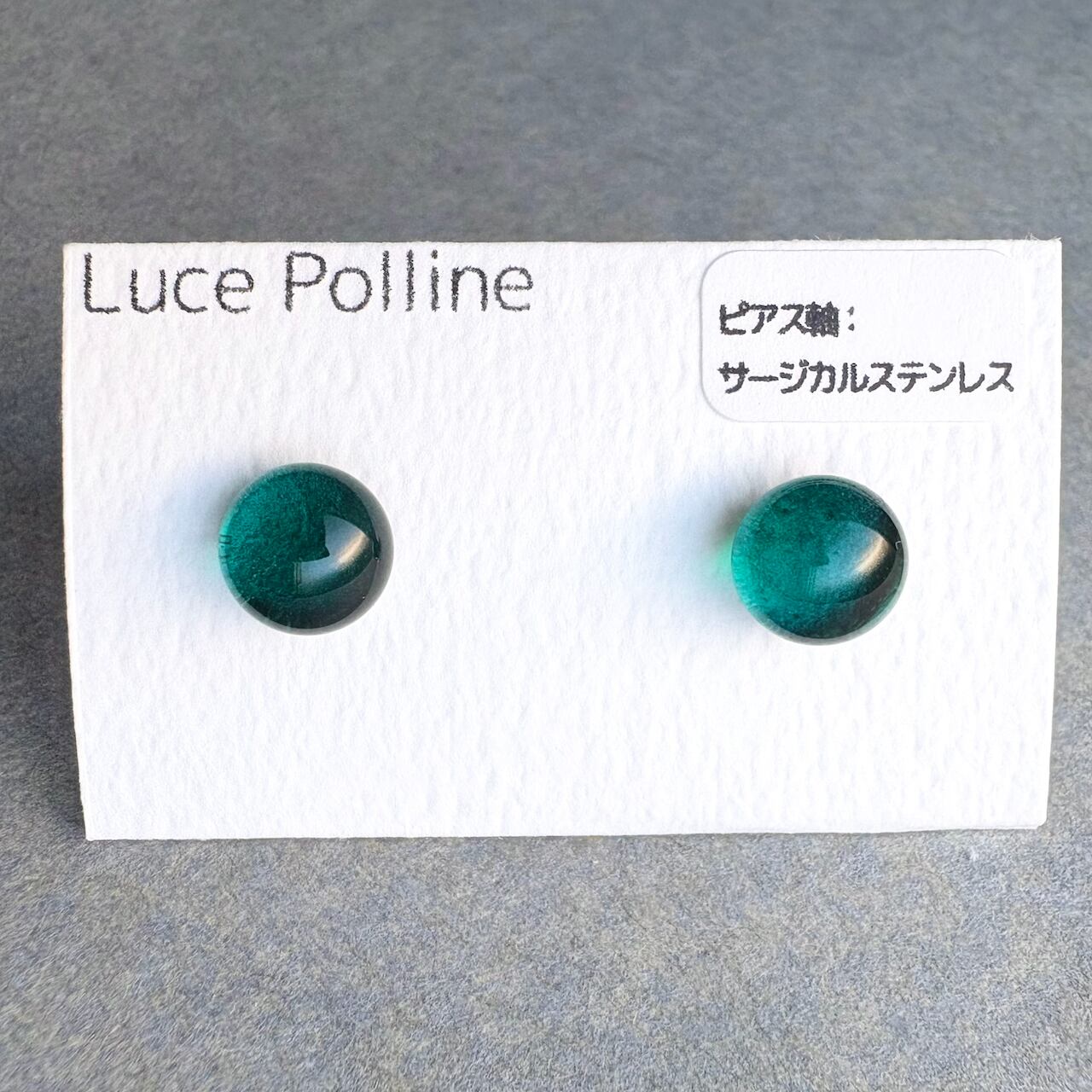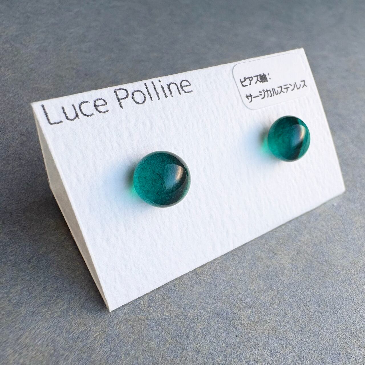 きらびやかな青緑色のはずなのに、しっとり落ち着いた色合いで、大きさも控えめなので日常にも華やかなドレスにも映えるピアスです。