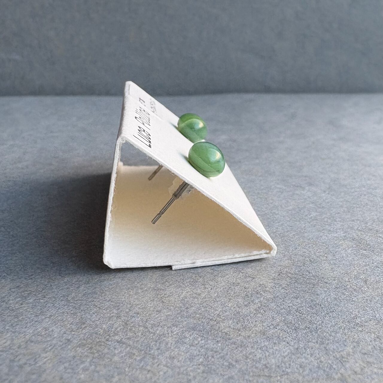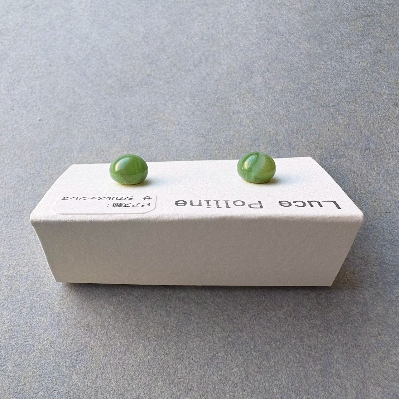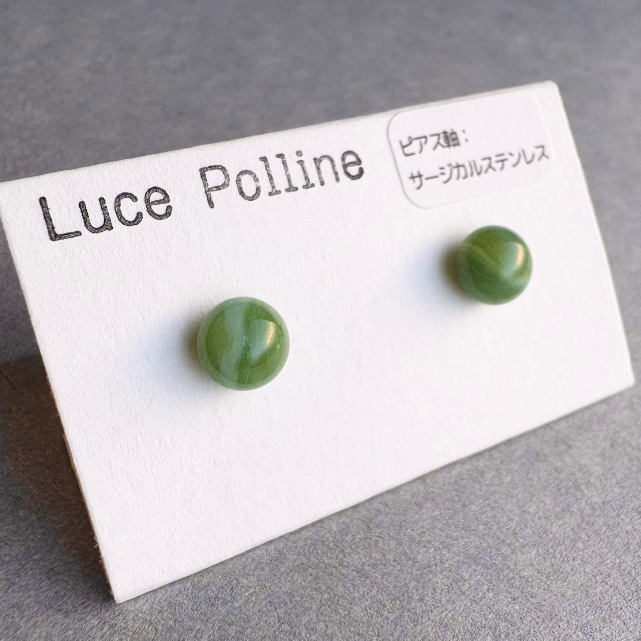 抹茶色に重なる白い帯がミルクや練乳を思わせる小さめのガラスの粒です。