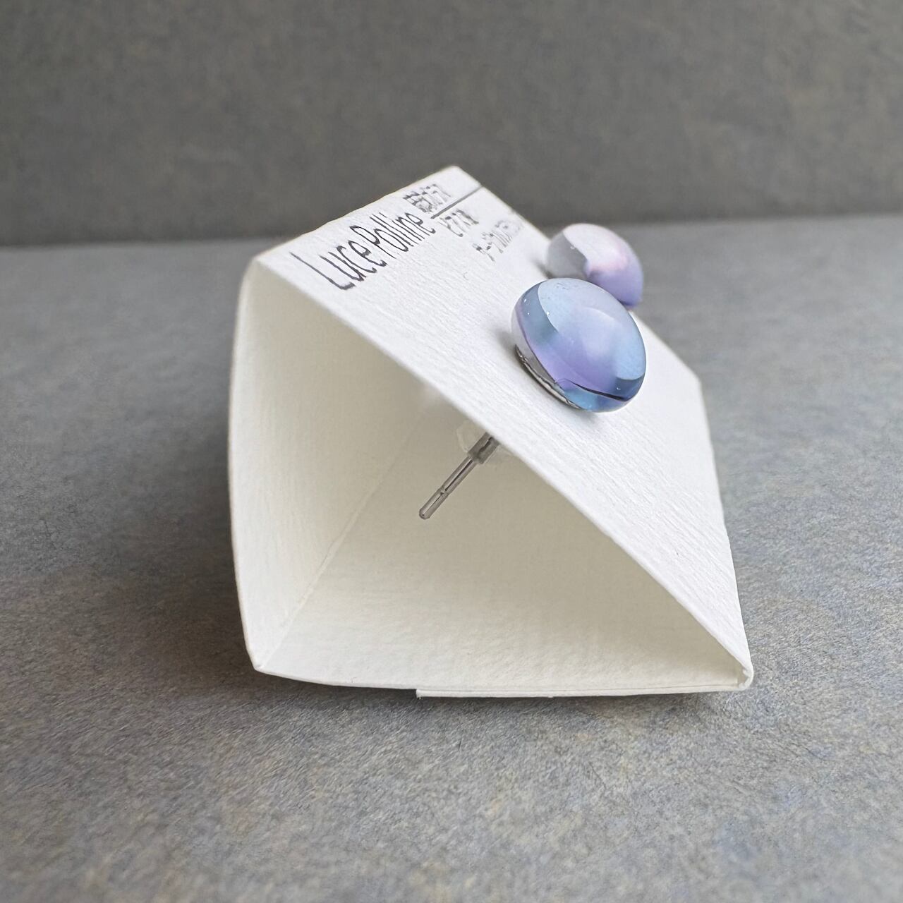 透明なガラスに青と紫色と乳白色がグラデーションとなる美しい粒です。