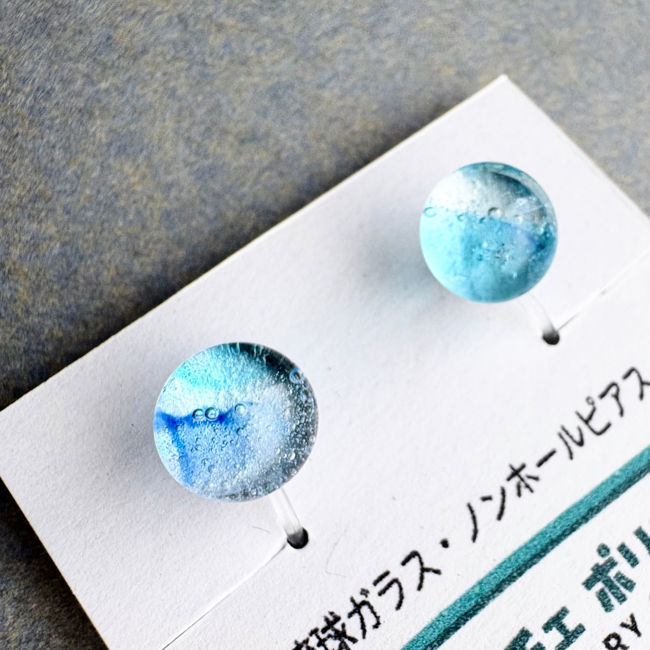 琉球ガラスの粒を樹脂製のノンホールピアスに仕立てました。