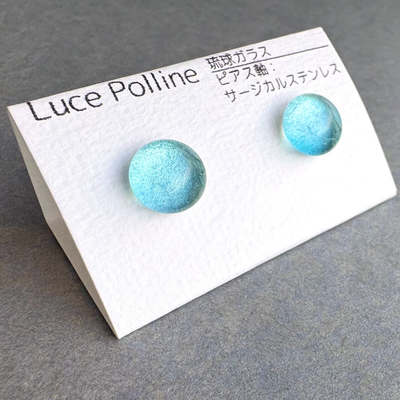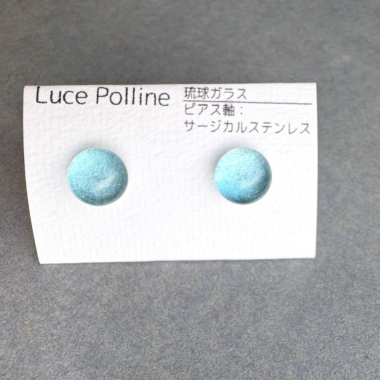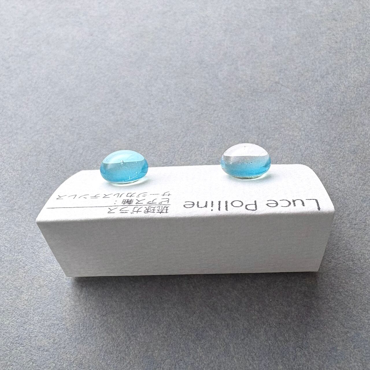 厚みの部分は透明なガラスで、底の水色のガラスを写して輝きます。