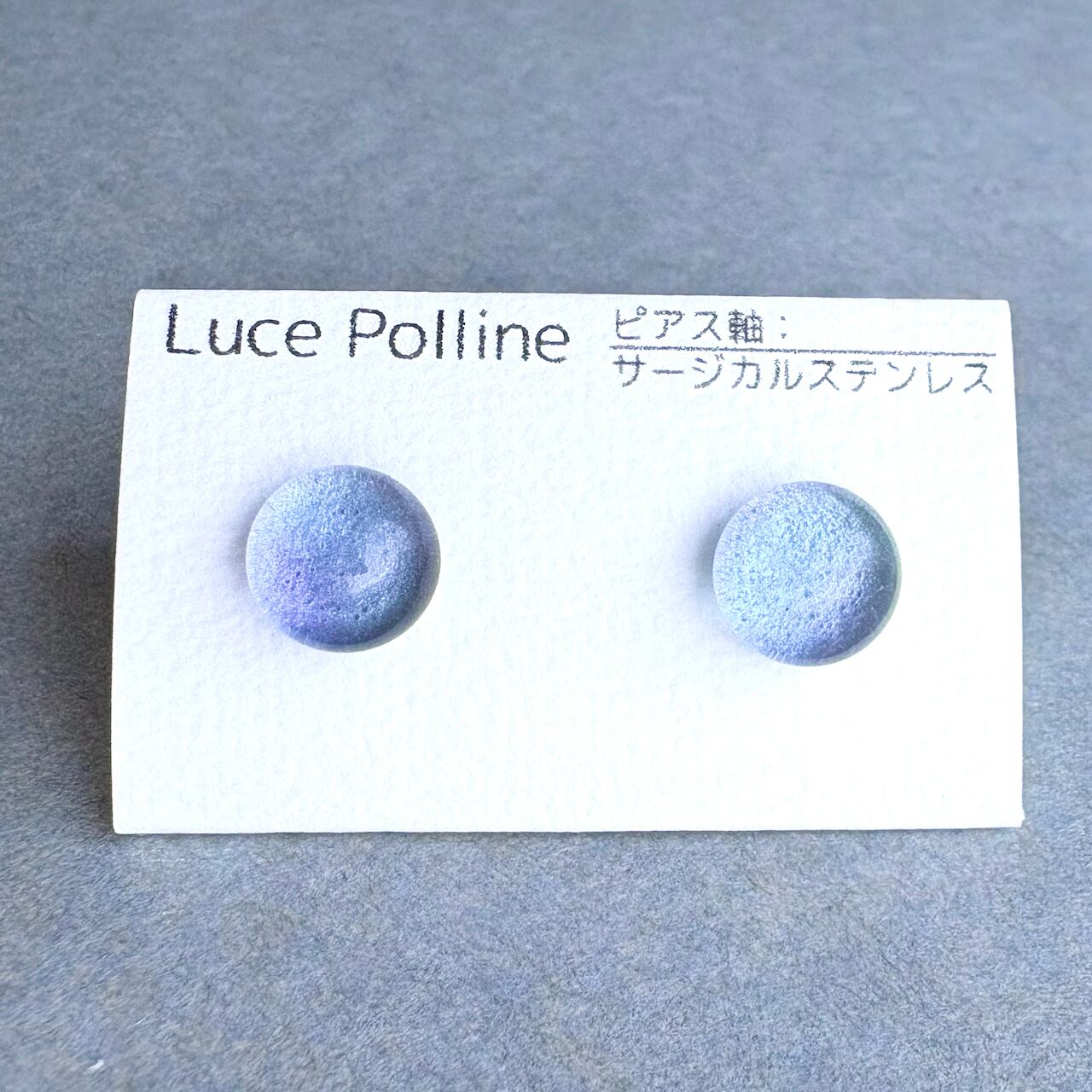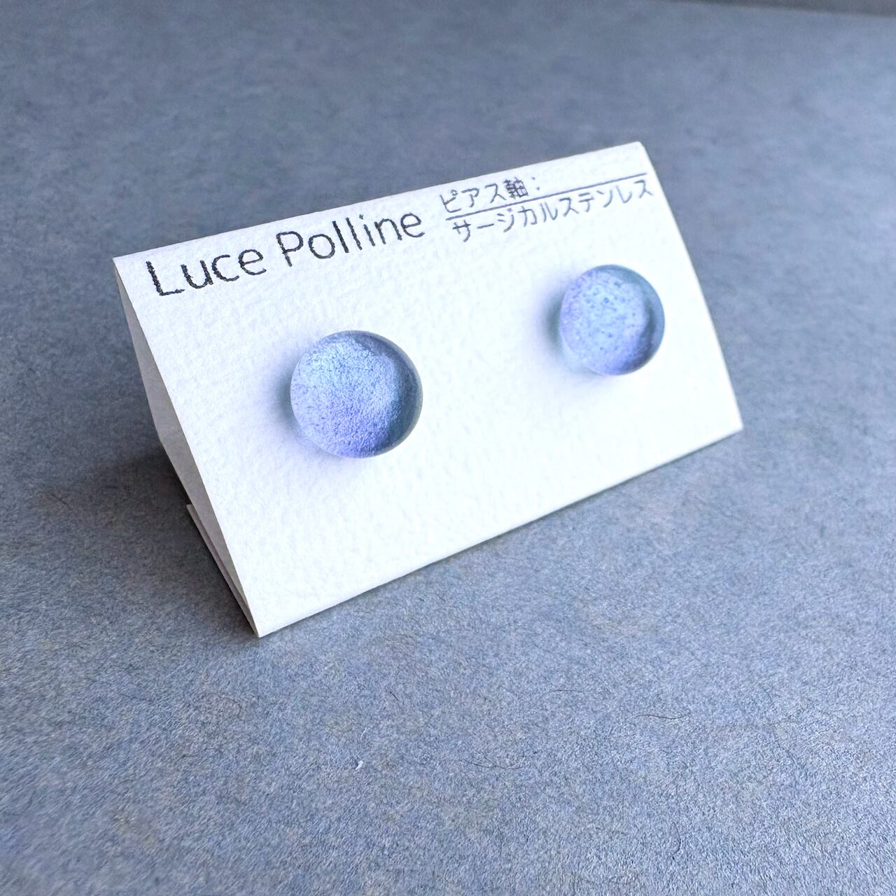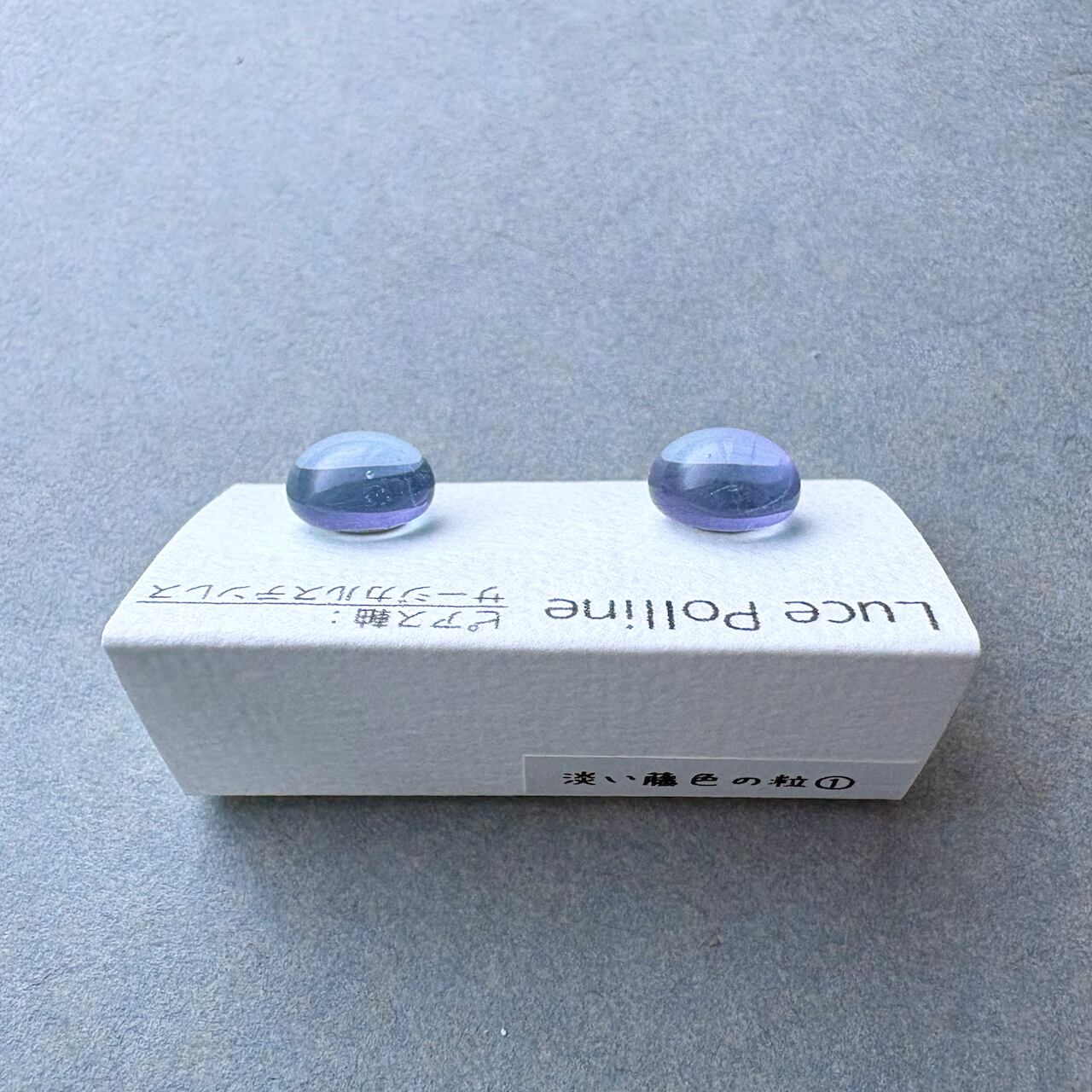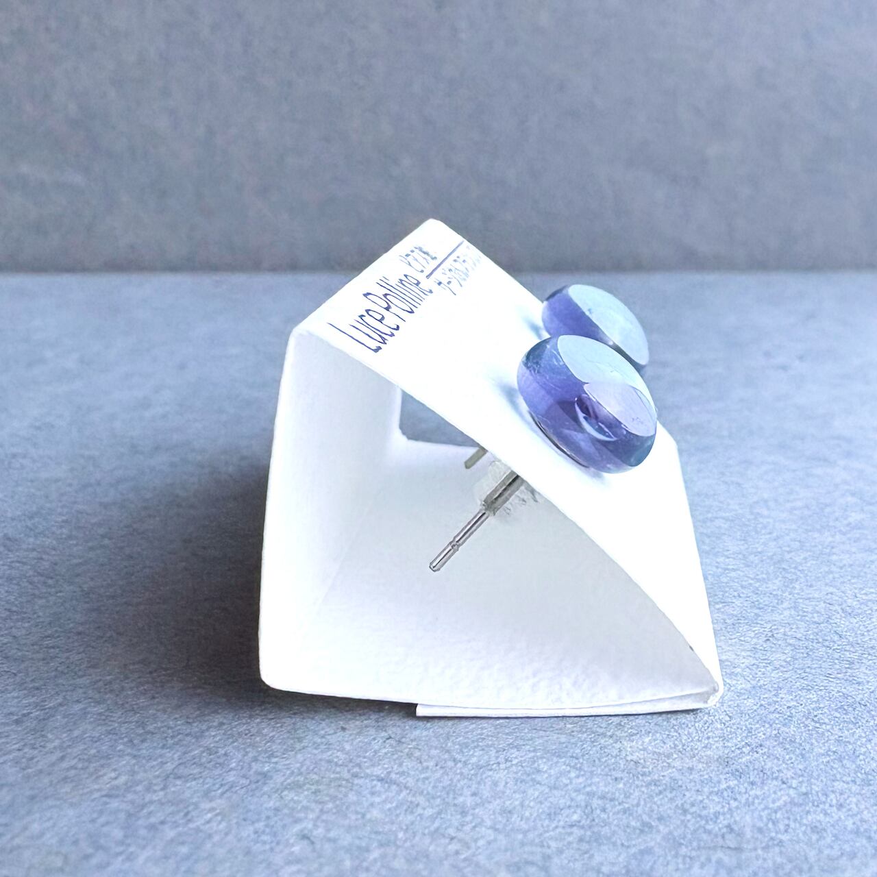 ステンドグラス用のガラスを重ねてオリジナルの色味のガラスの粒をピアスに仕立てました。