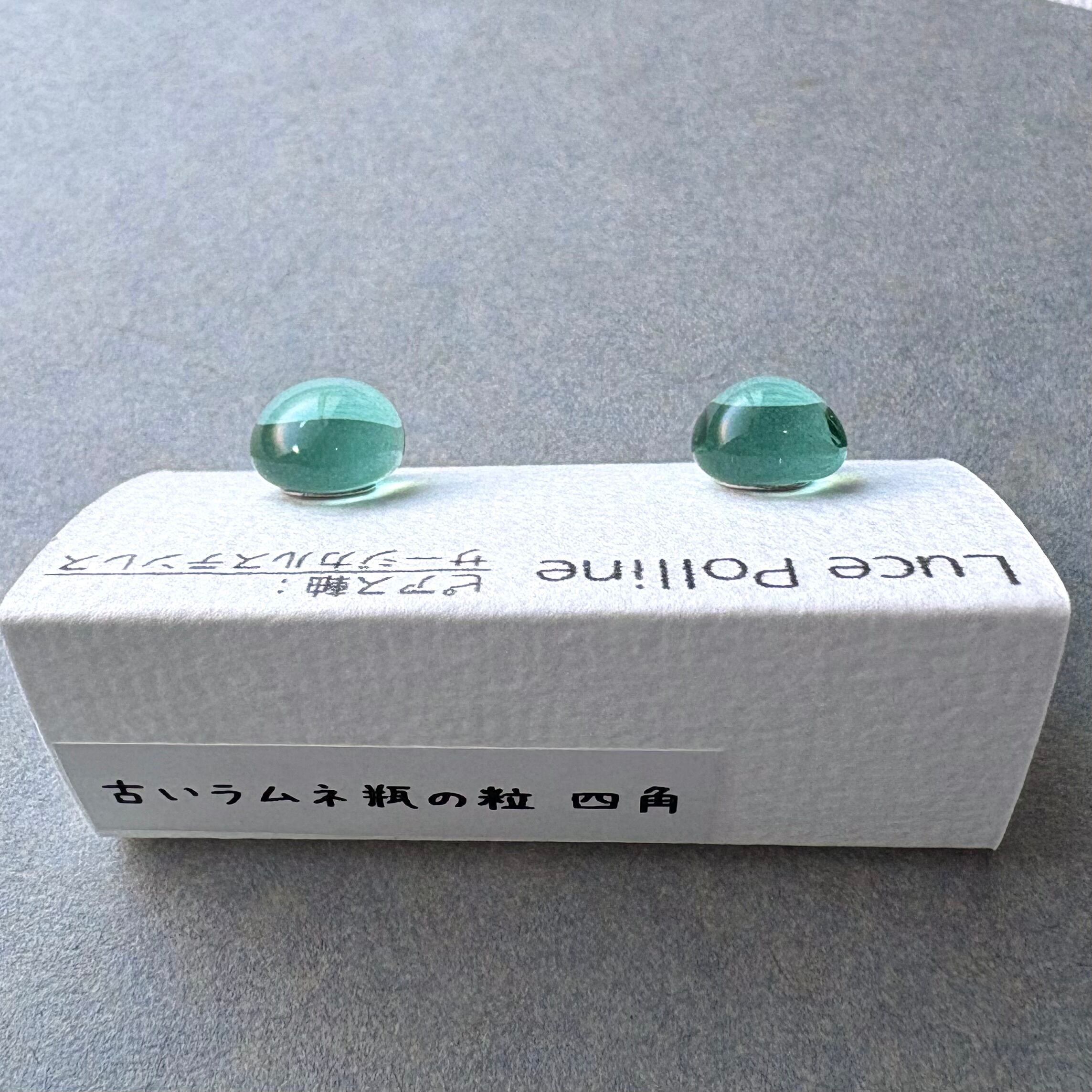 古いラムネ瓶の粒 四角 ガラス ピアス