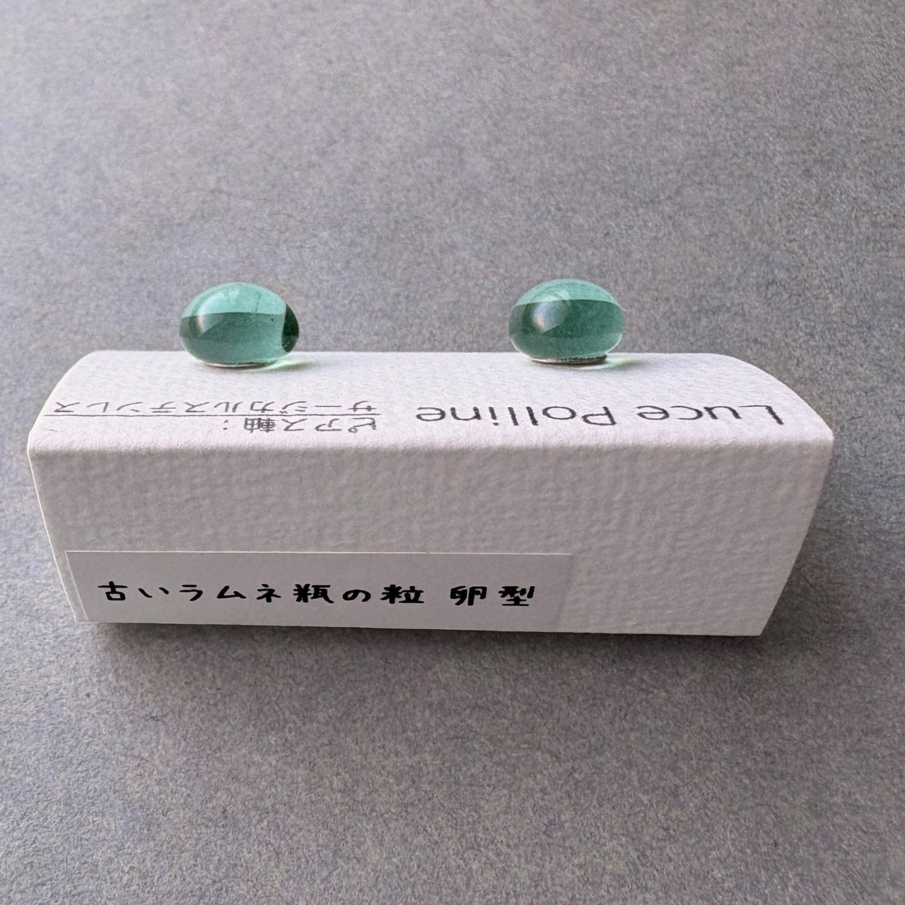懐かしさと共に、古いラムネ瓶の優しい雰囲気が漂います。透き通った青緑色は童心に戻って心を癒してくれるような不思議な魅力があります。