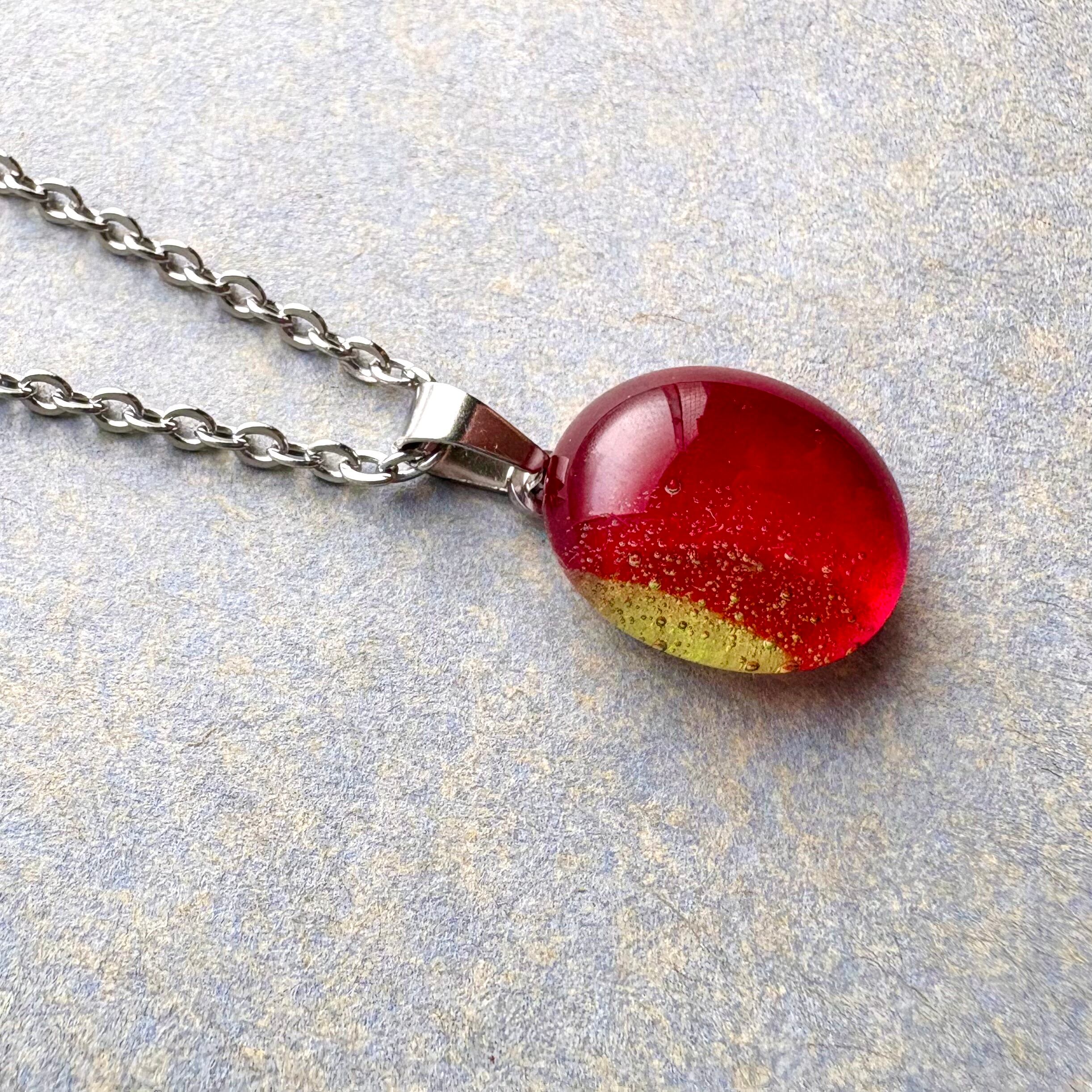 ・琉球ガラス、ステンレスネックレス(45cm)アレルギー非対応
