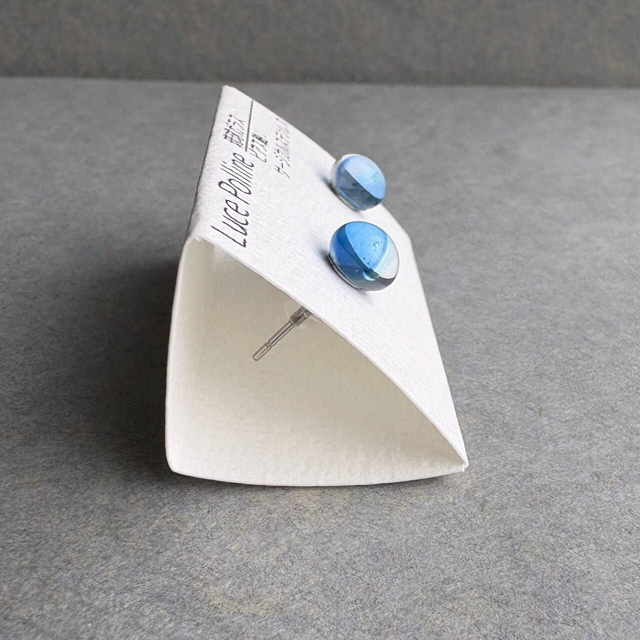 多彩な表情を見せる海のような琉球ガラスの粒のピアスです。