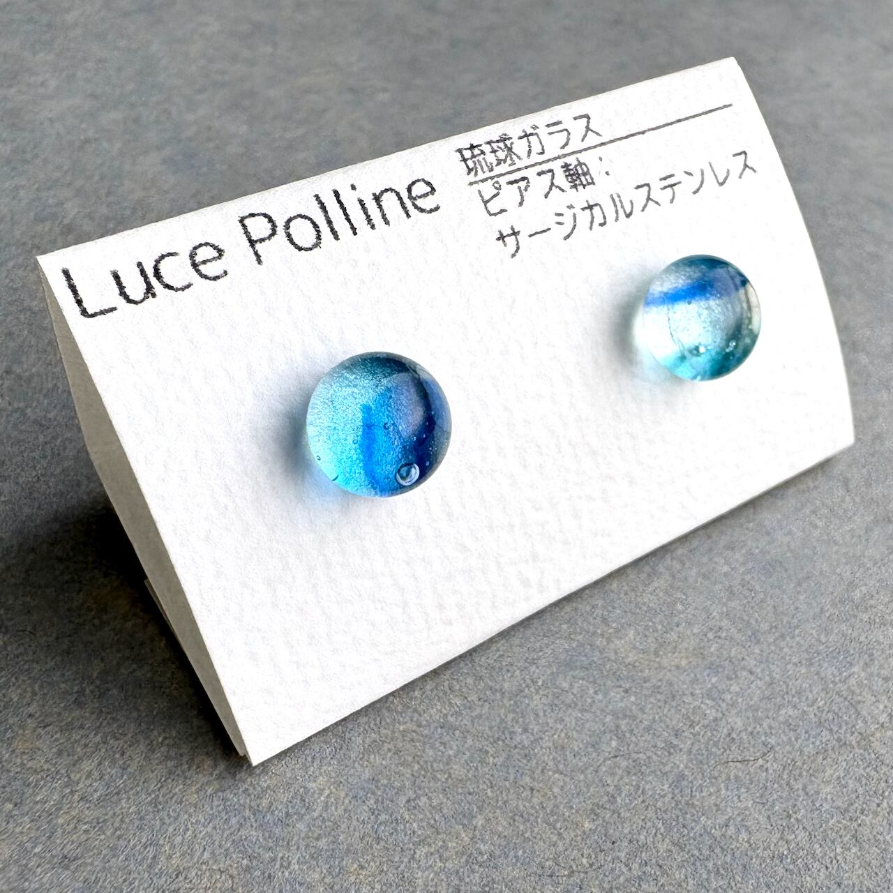 多彩な表情を見せる海のような琉球ガラスの粒のピアスです。