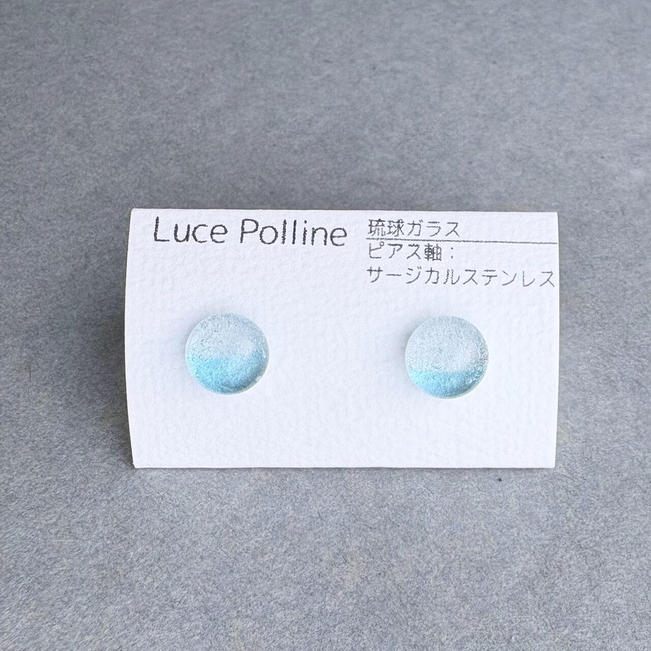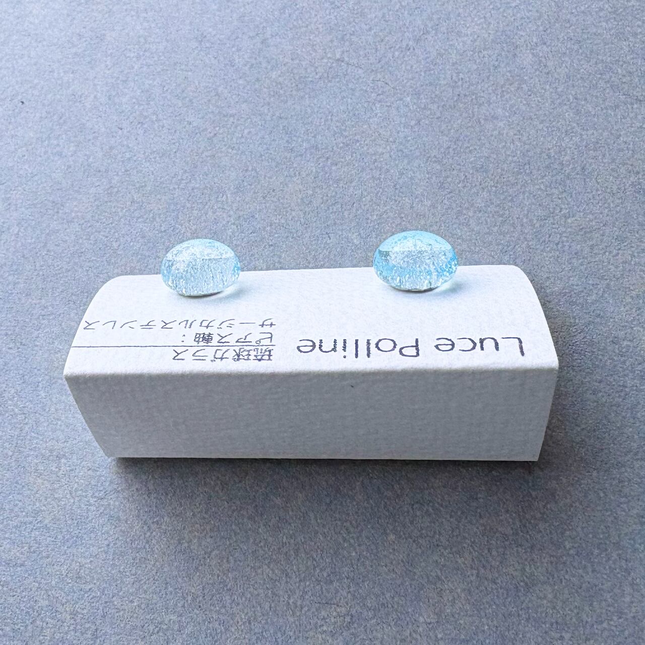 透明なビーチの波打ち際のような琉球ガラスの粒のピアスです。