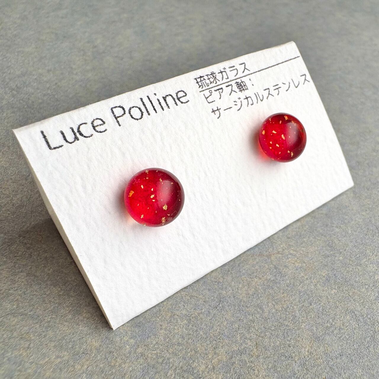 琉球赤に金彩の粒 琉球ガラス ピアス