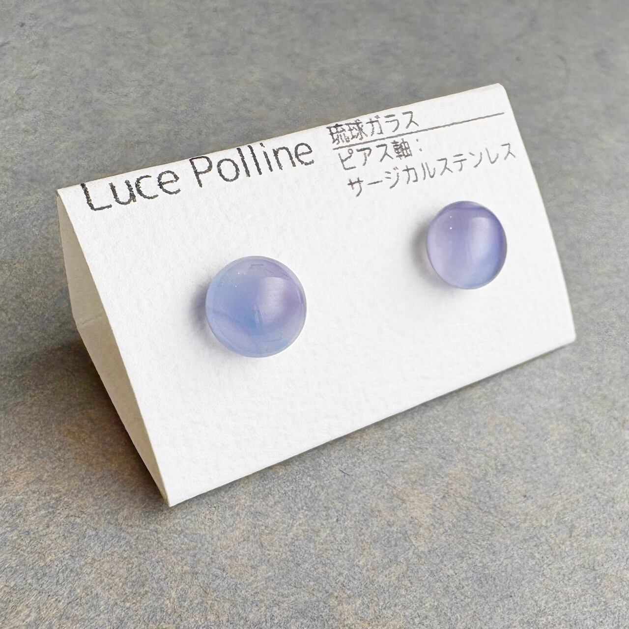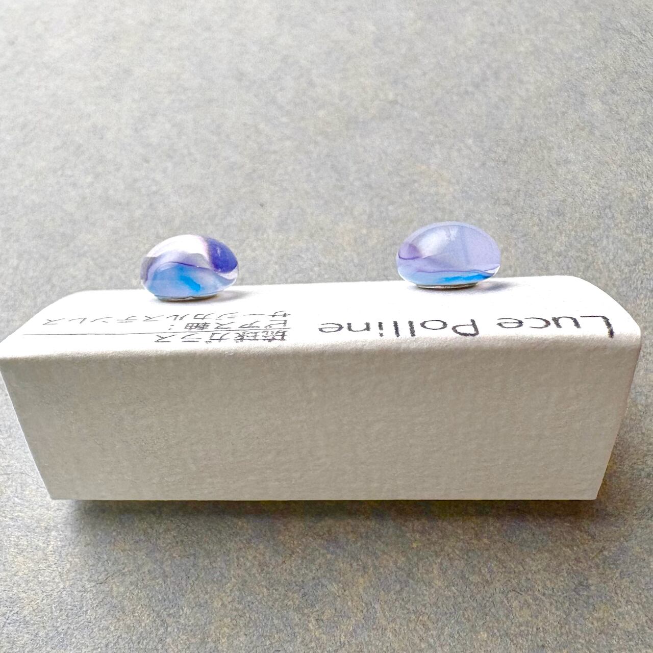乳白色の淡い紫色のガラスの粒です。