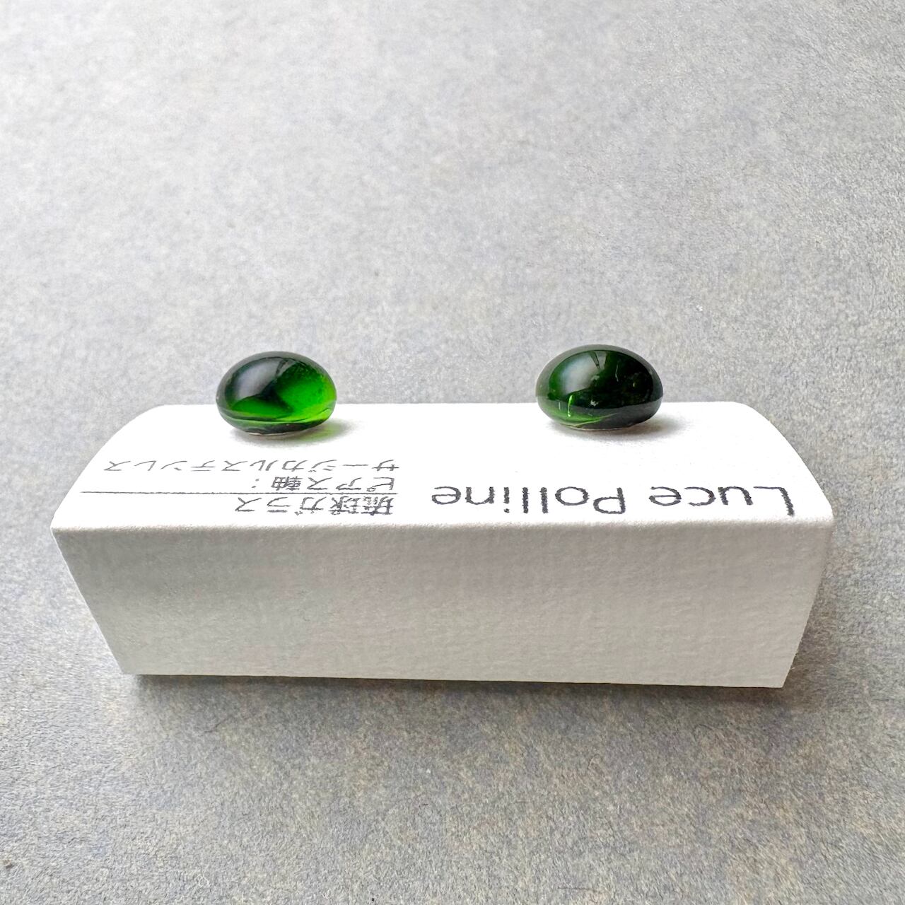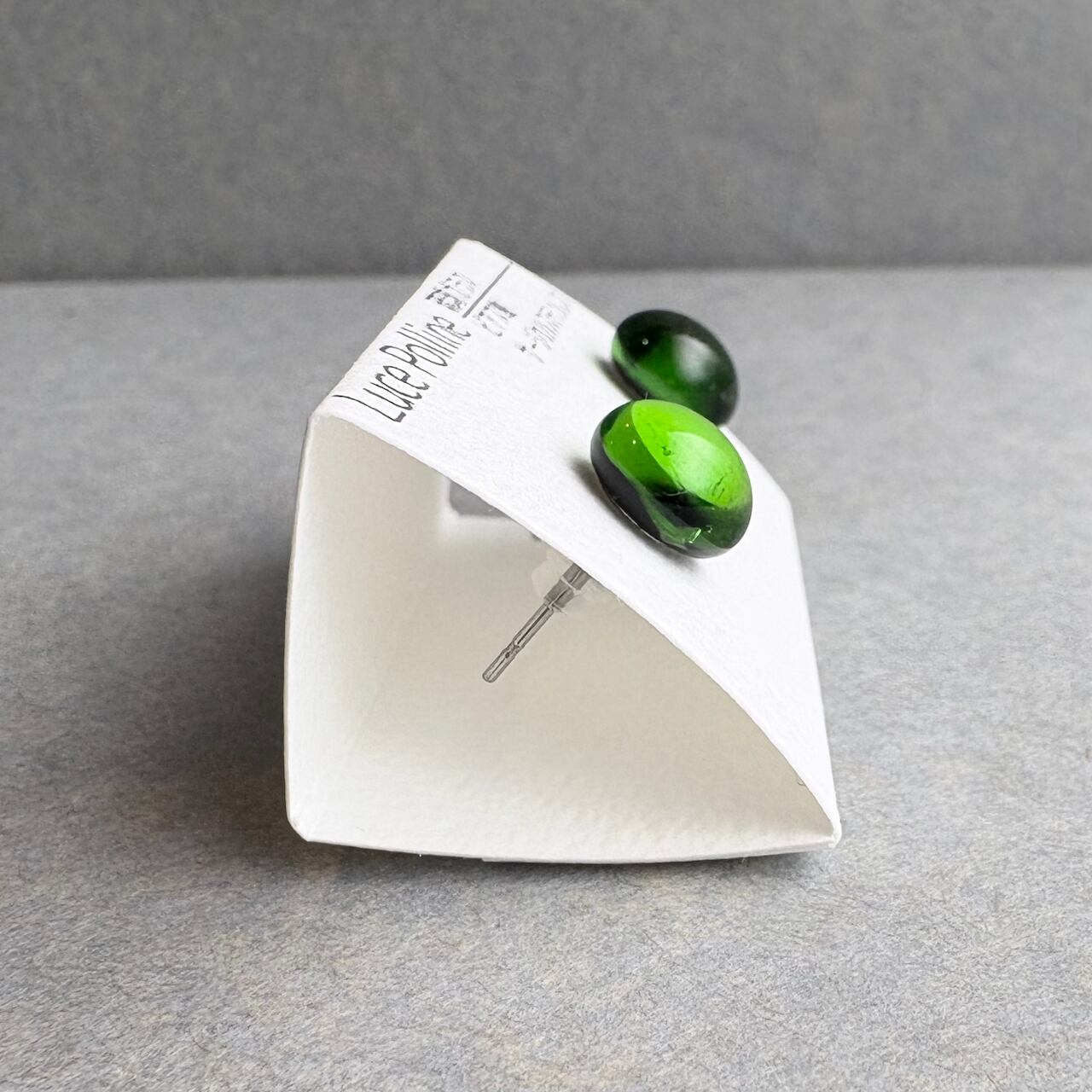 夜露が降りたようなしっとりとした深い緑色のガラスの粒です。