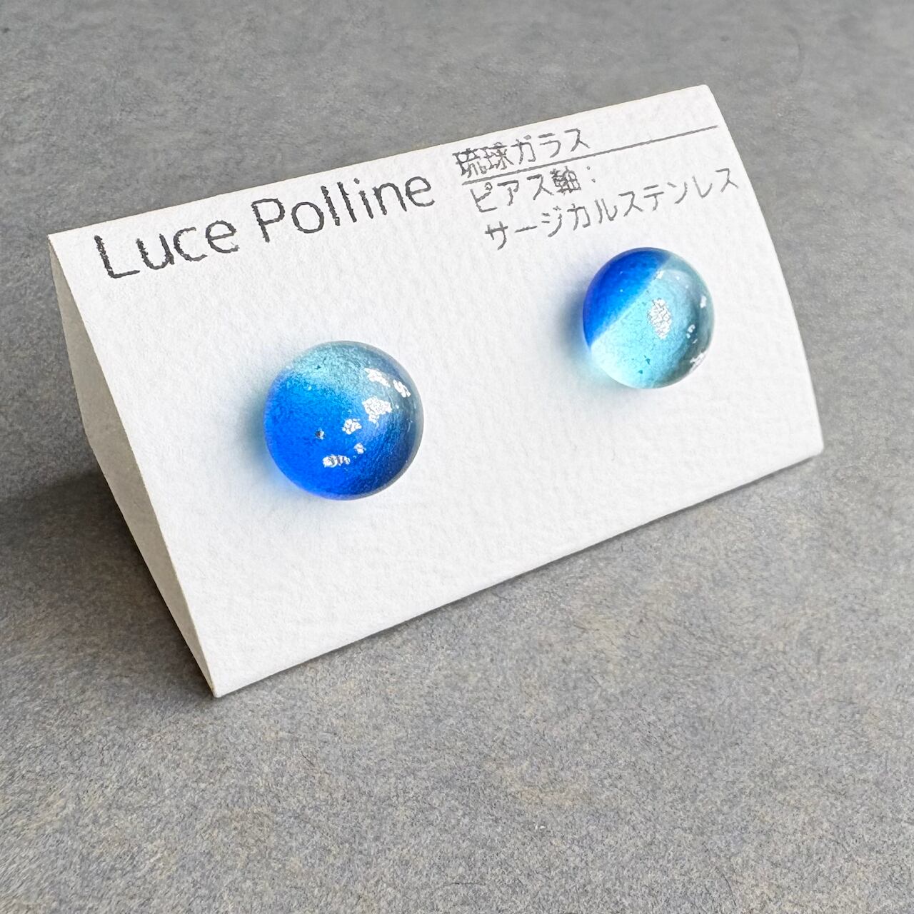 2色のブルーに舞う銀彩が星空のようなガラスの粒です。