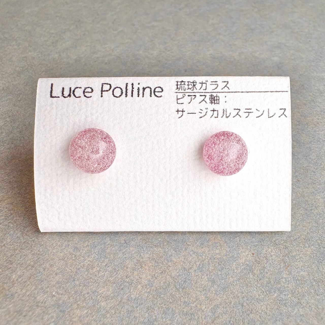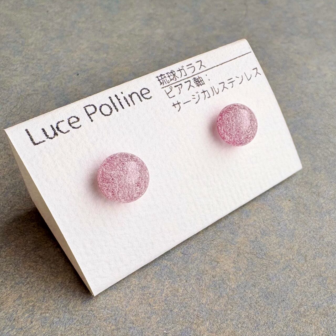 桃色のガラスにたくさんの気泡が乗った琉球ガラスの粒です。