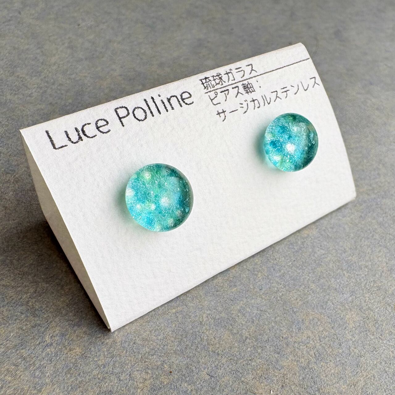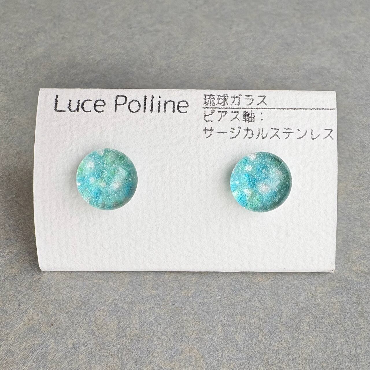 青い和紙の粒 琉球ガラス ピアス