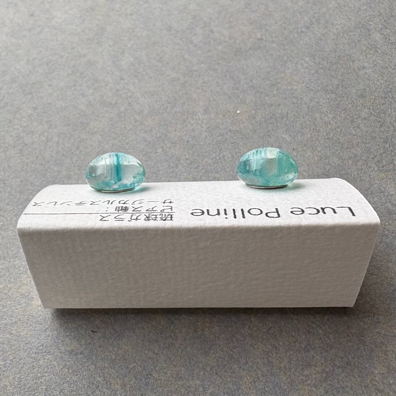 底に青い和紙を貼り付けたような琉球ガラスの粒です。