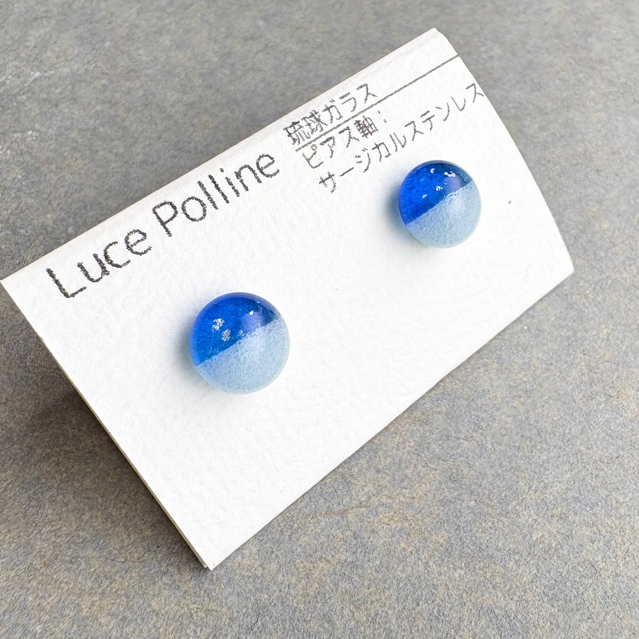 気泡たっぷりの白に抜けるような青空に銀彩が舞う琉球ガラスのピアスです。