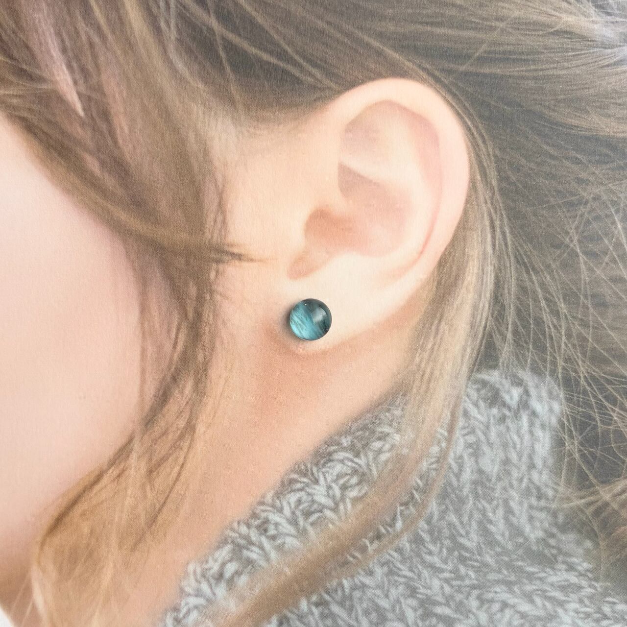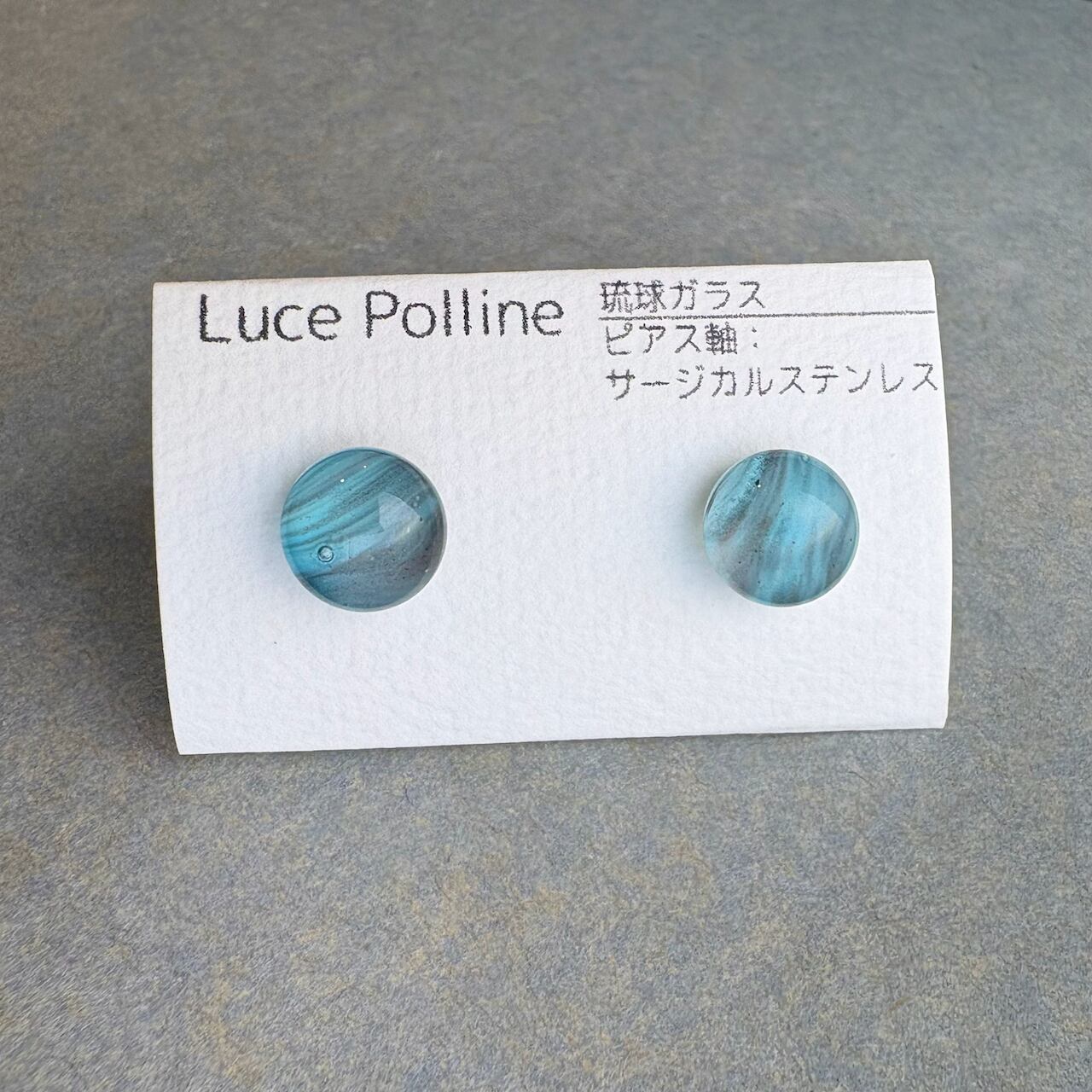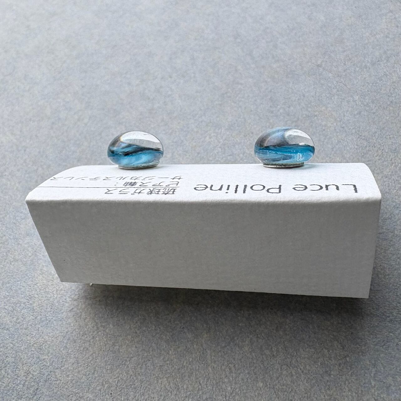 柔らかいブルーと透明なグレーが流れる琉球ガラスのピアスです。