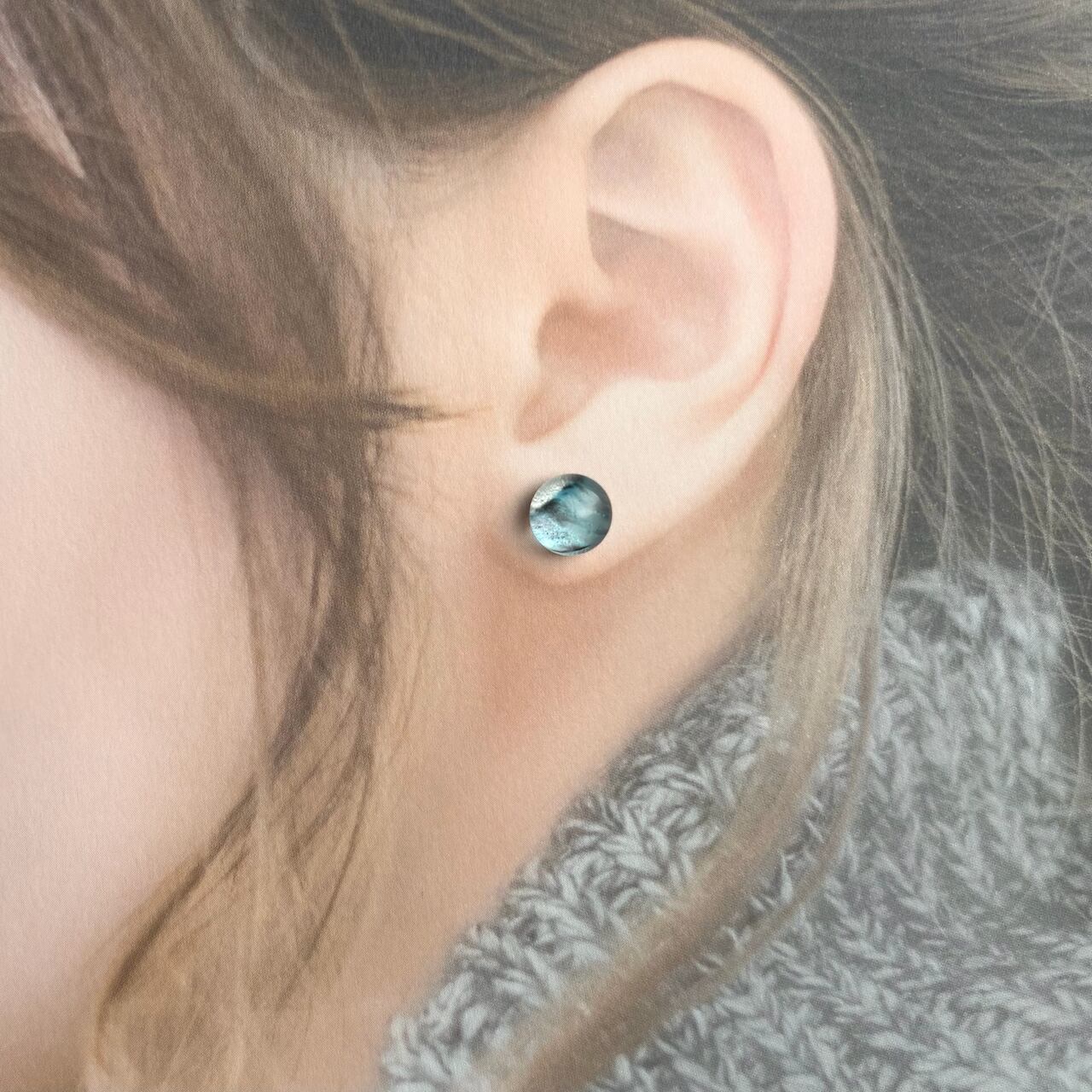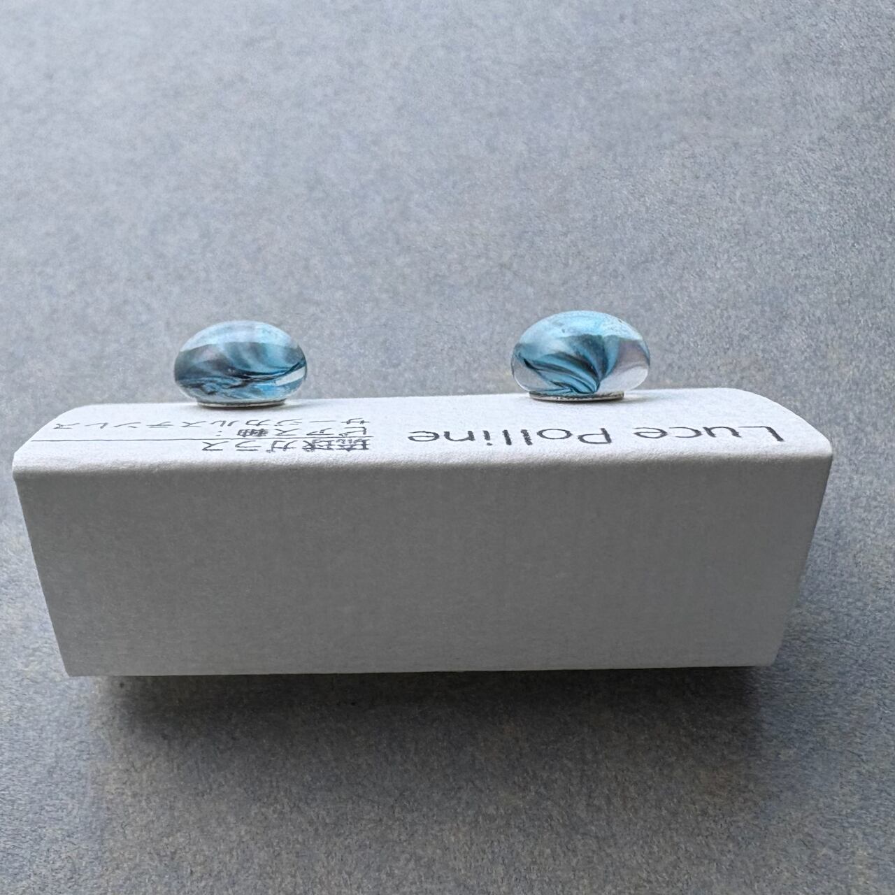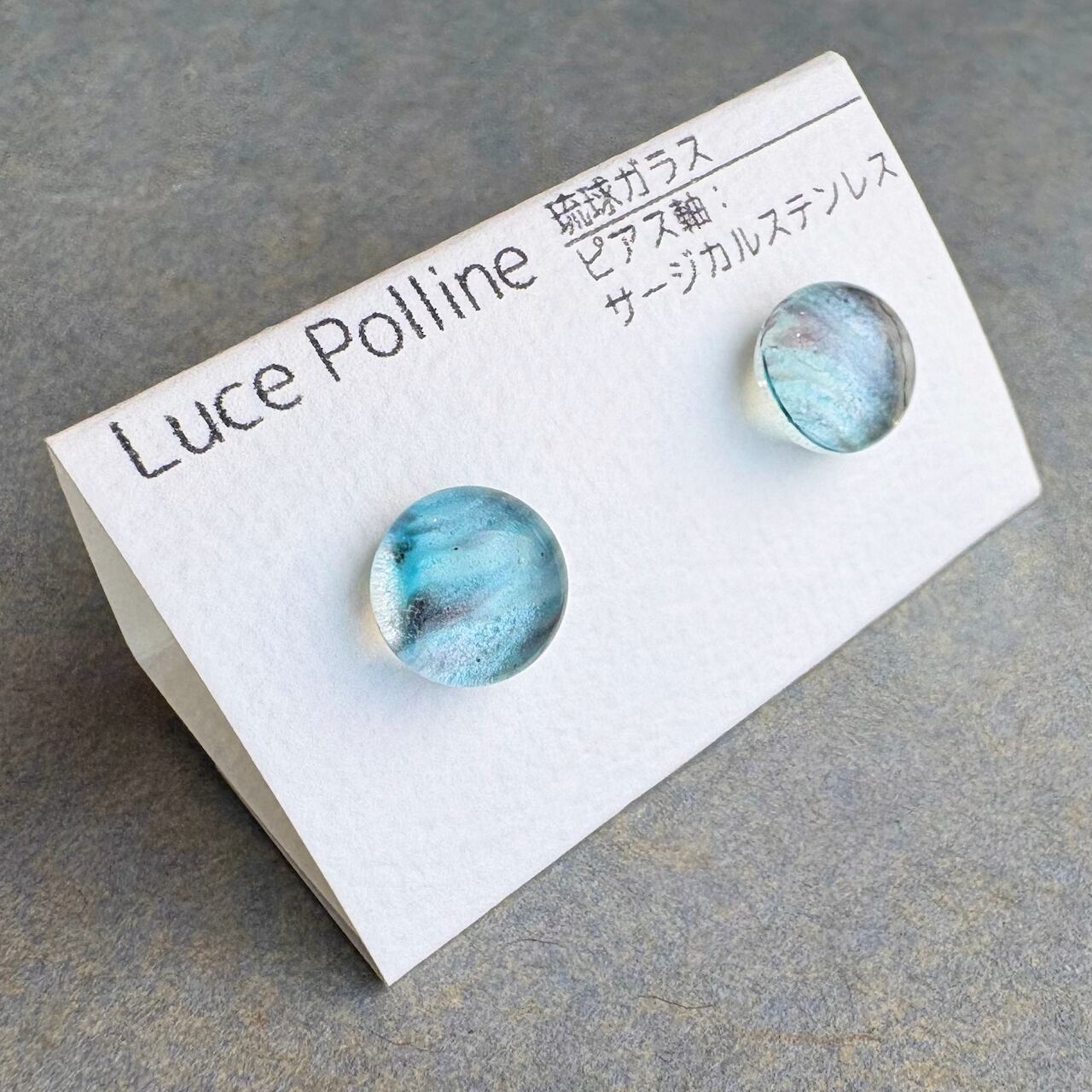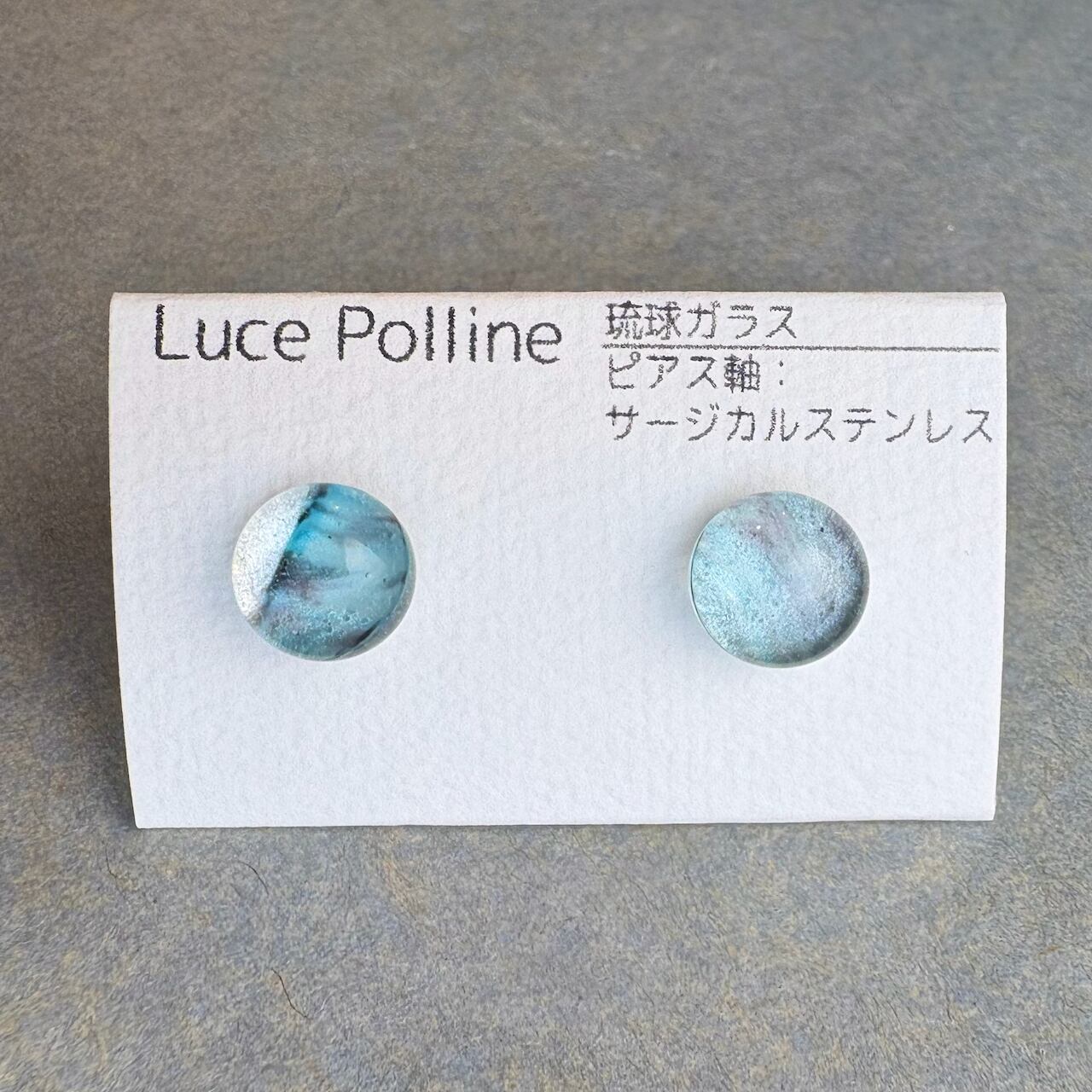 柔らかいブルーと透明なグレーが流れる琉球ガラスのピアスです。