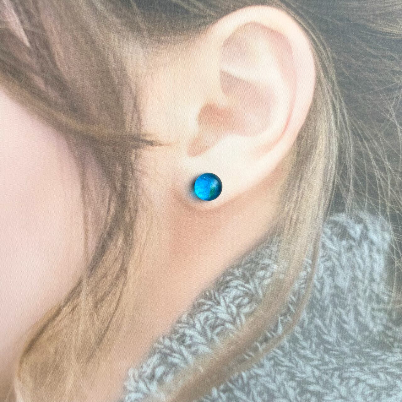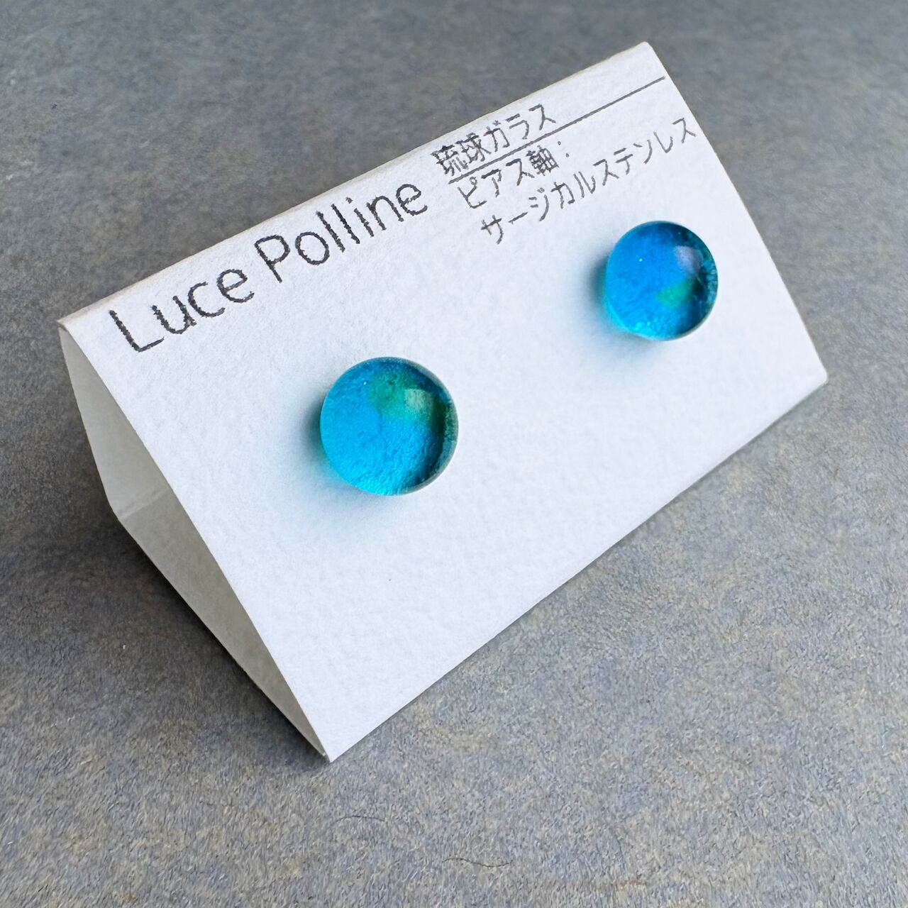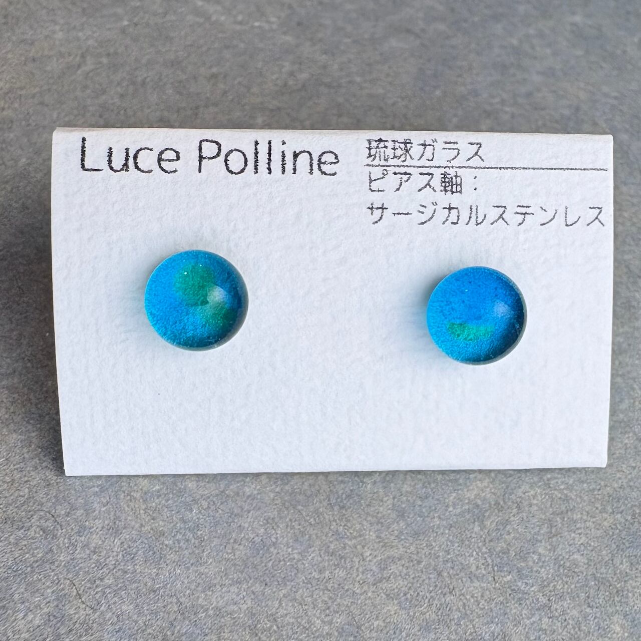 透明な水色のガラスにほんのり緑色のガラスがアクセントの琉球ガラスのピアスです。