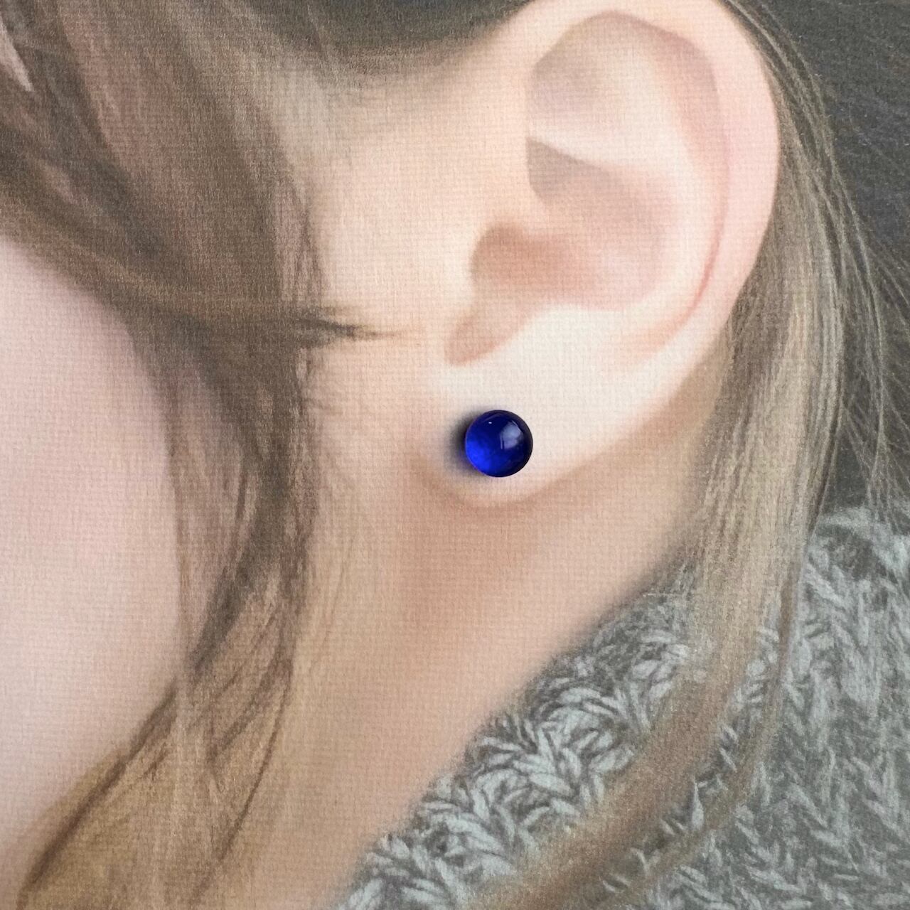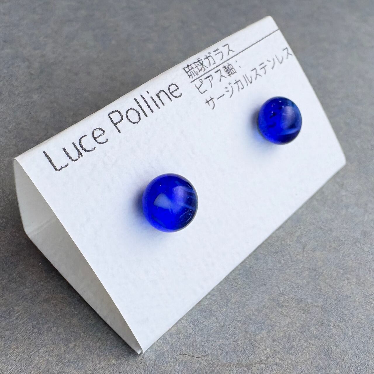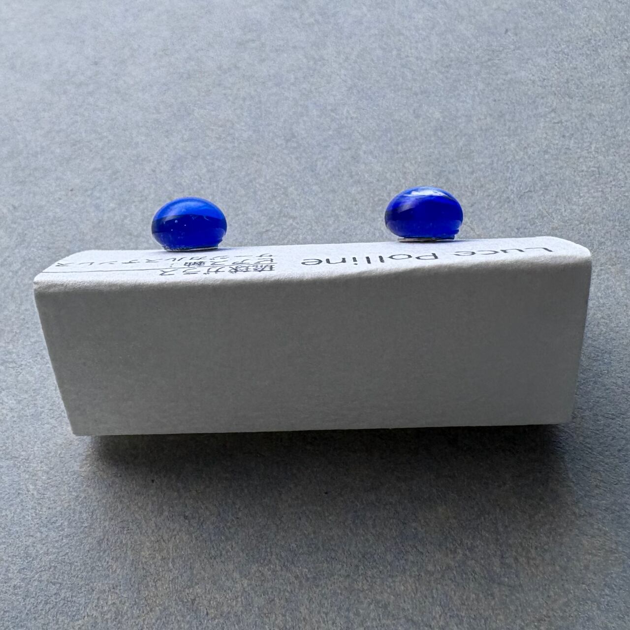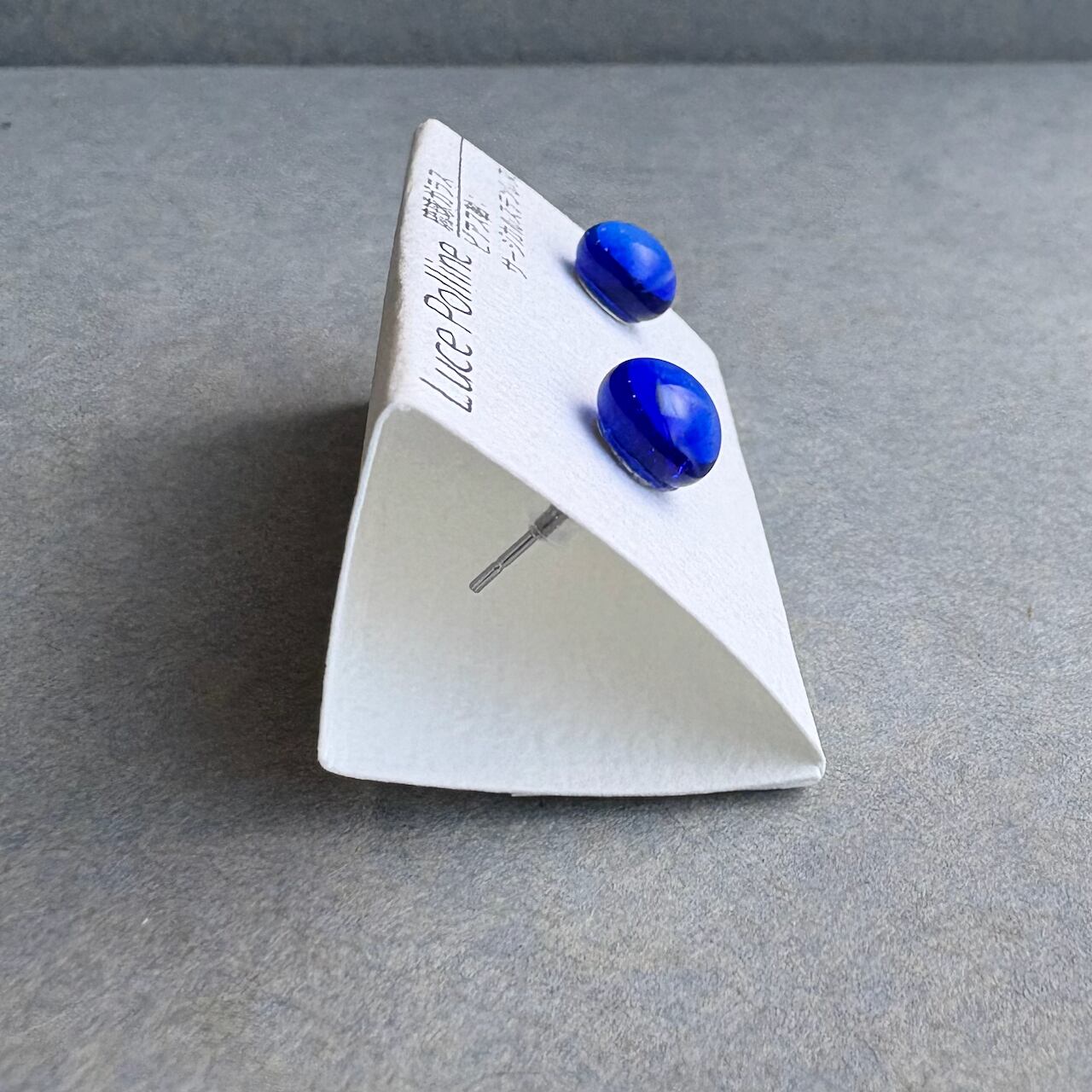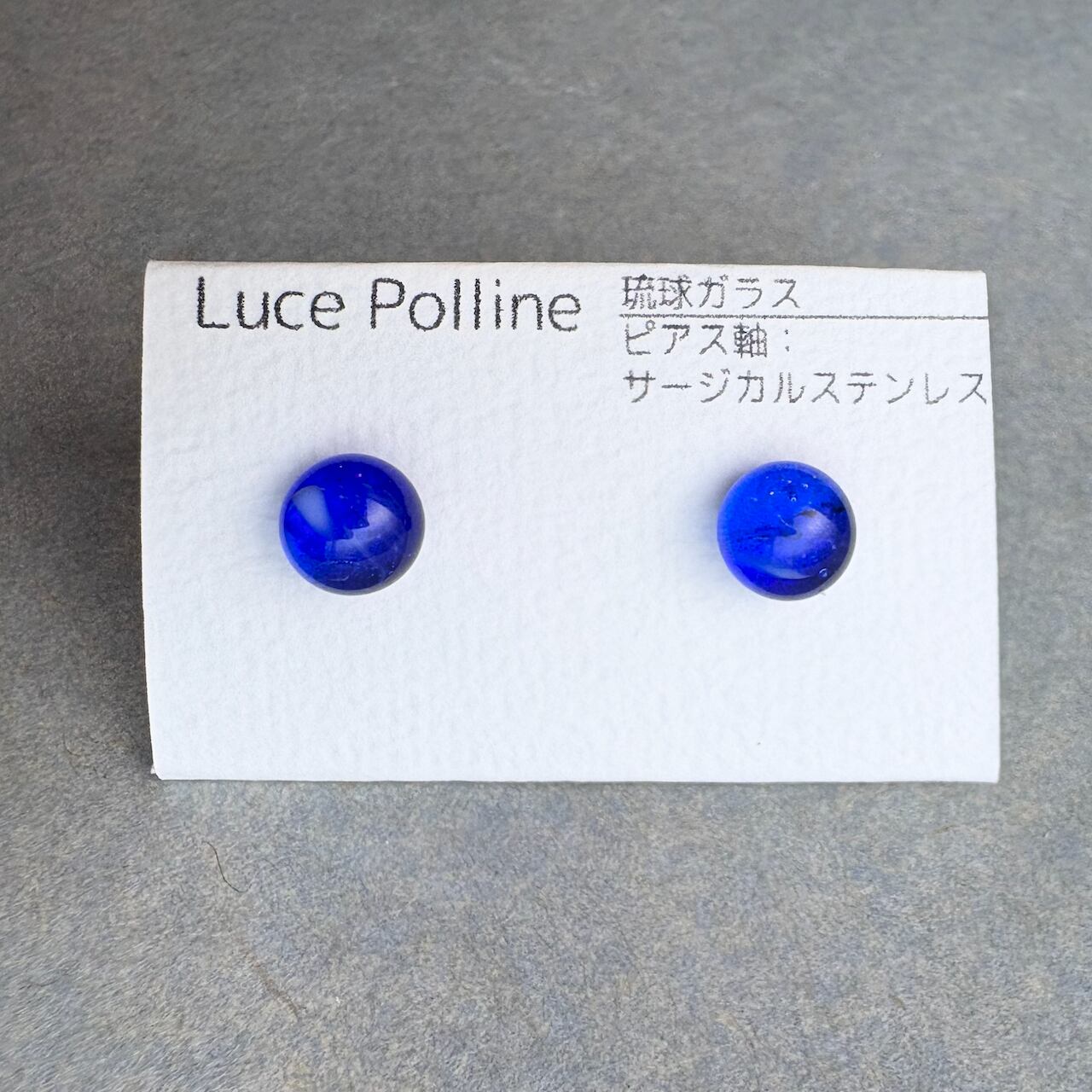 濃い青にすっと流れる白いガラスが風に流れる雲のような琉球ガラスのピアスです。