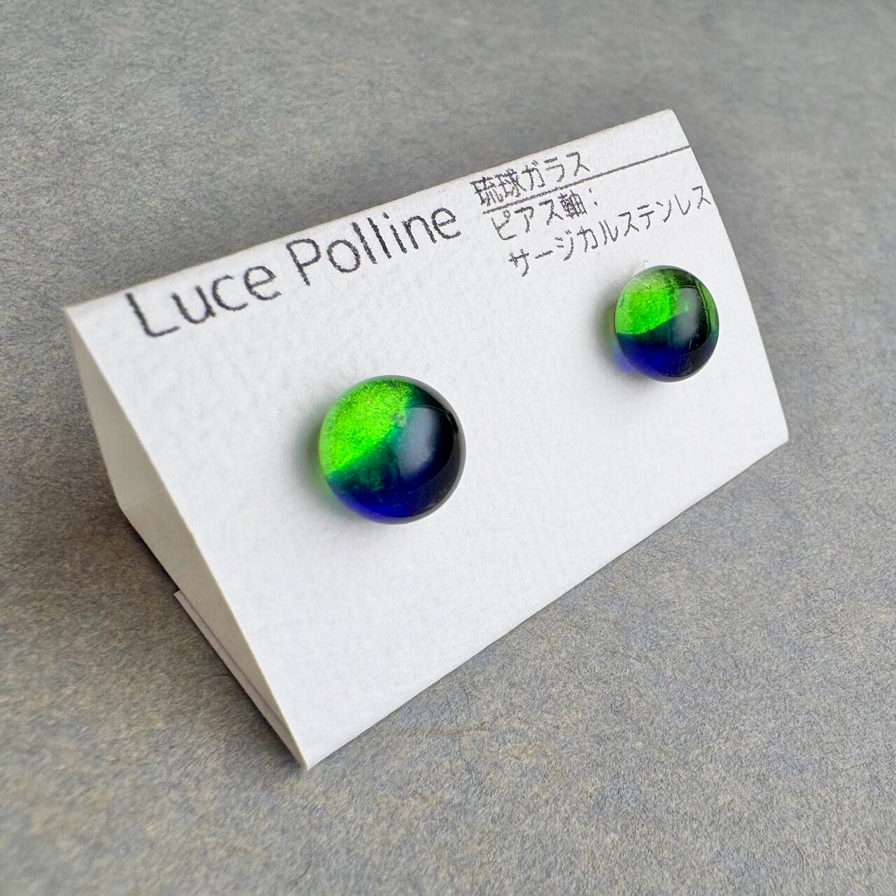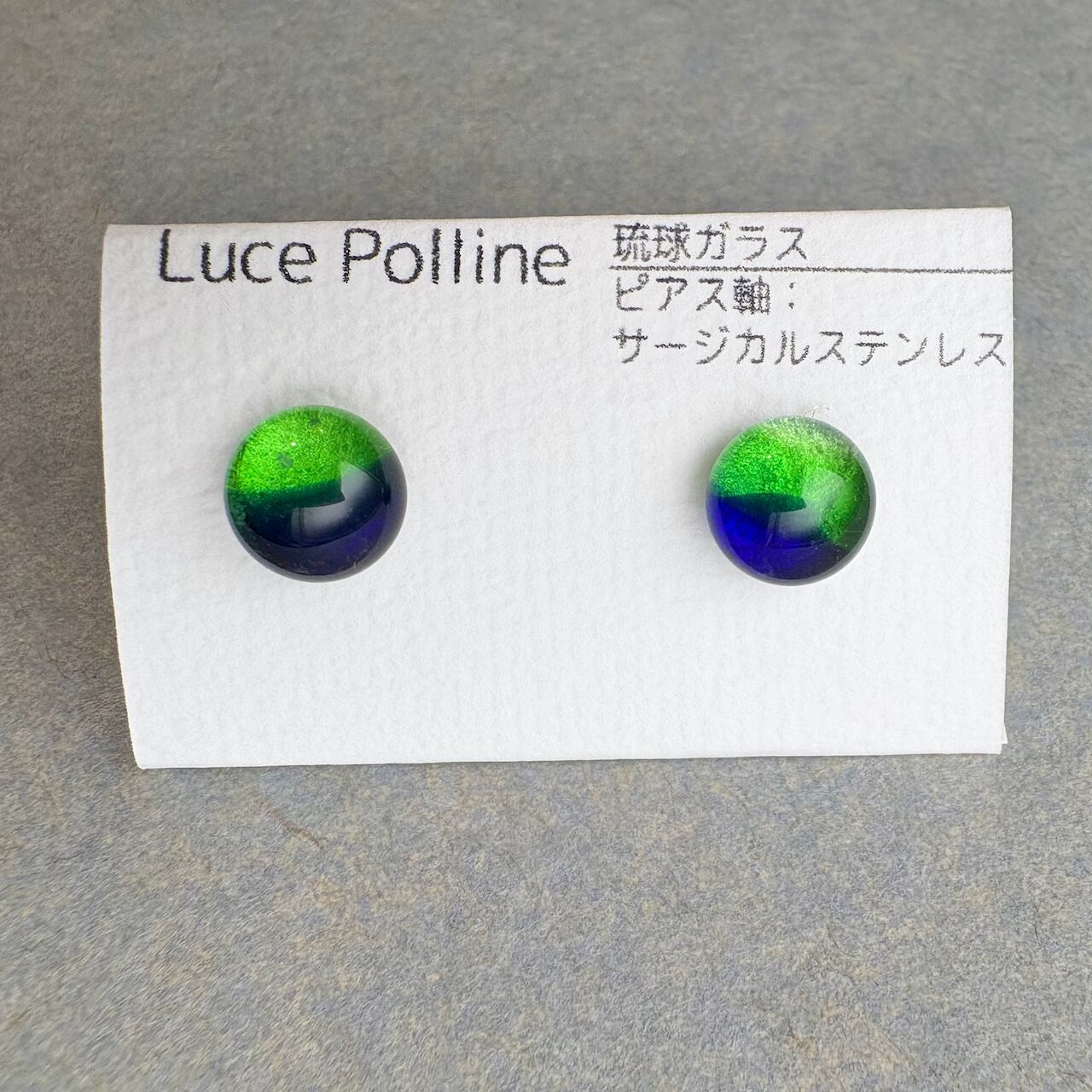 緑と藍の粒 琉球ガラス ピアス