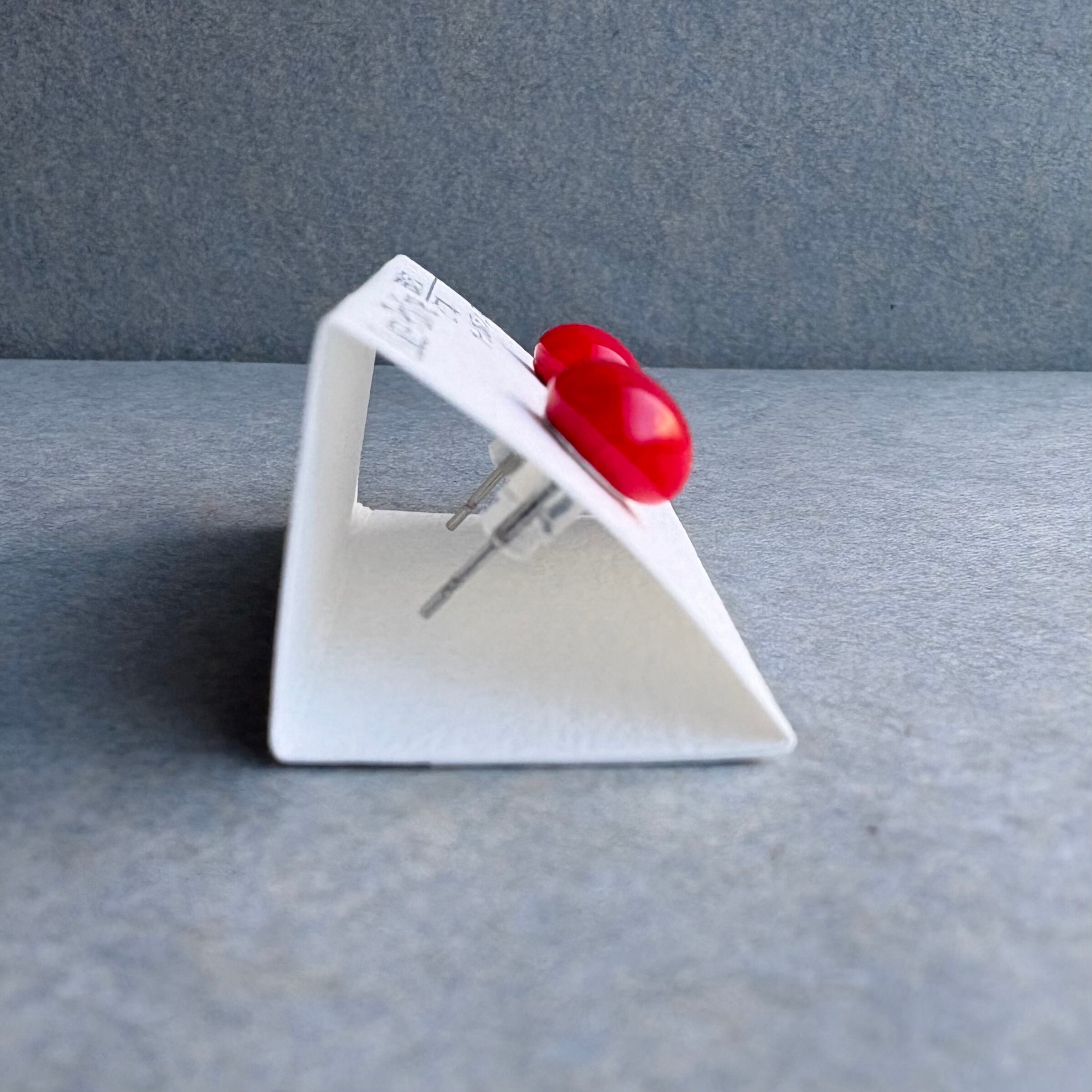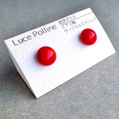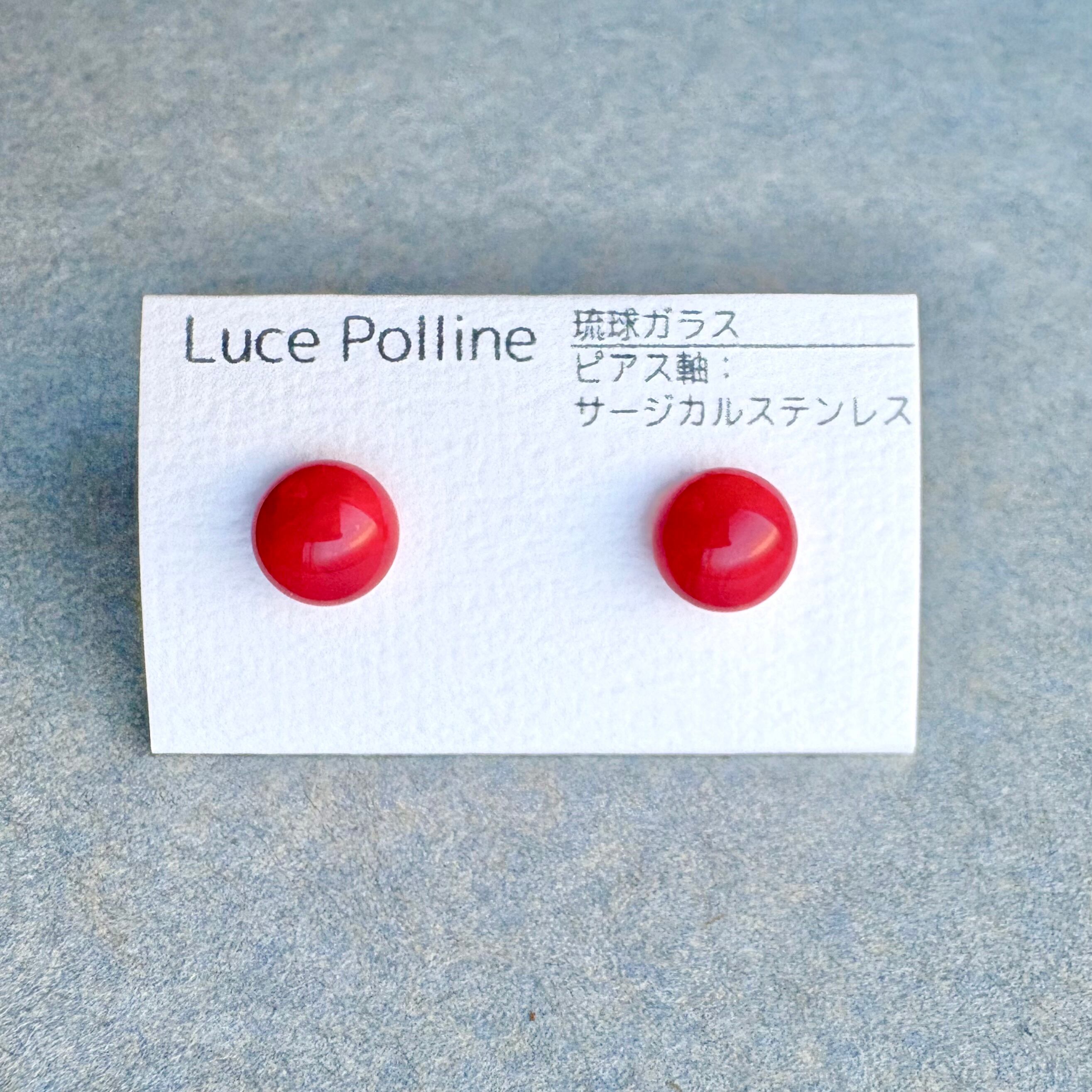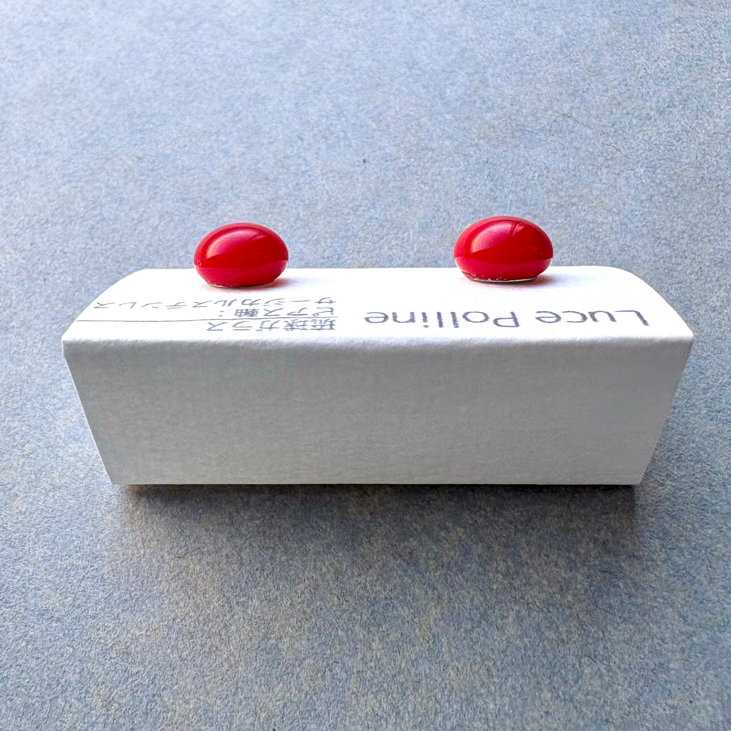 不透明で明るい朱赤の琉球ガラスのピアスです。
