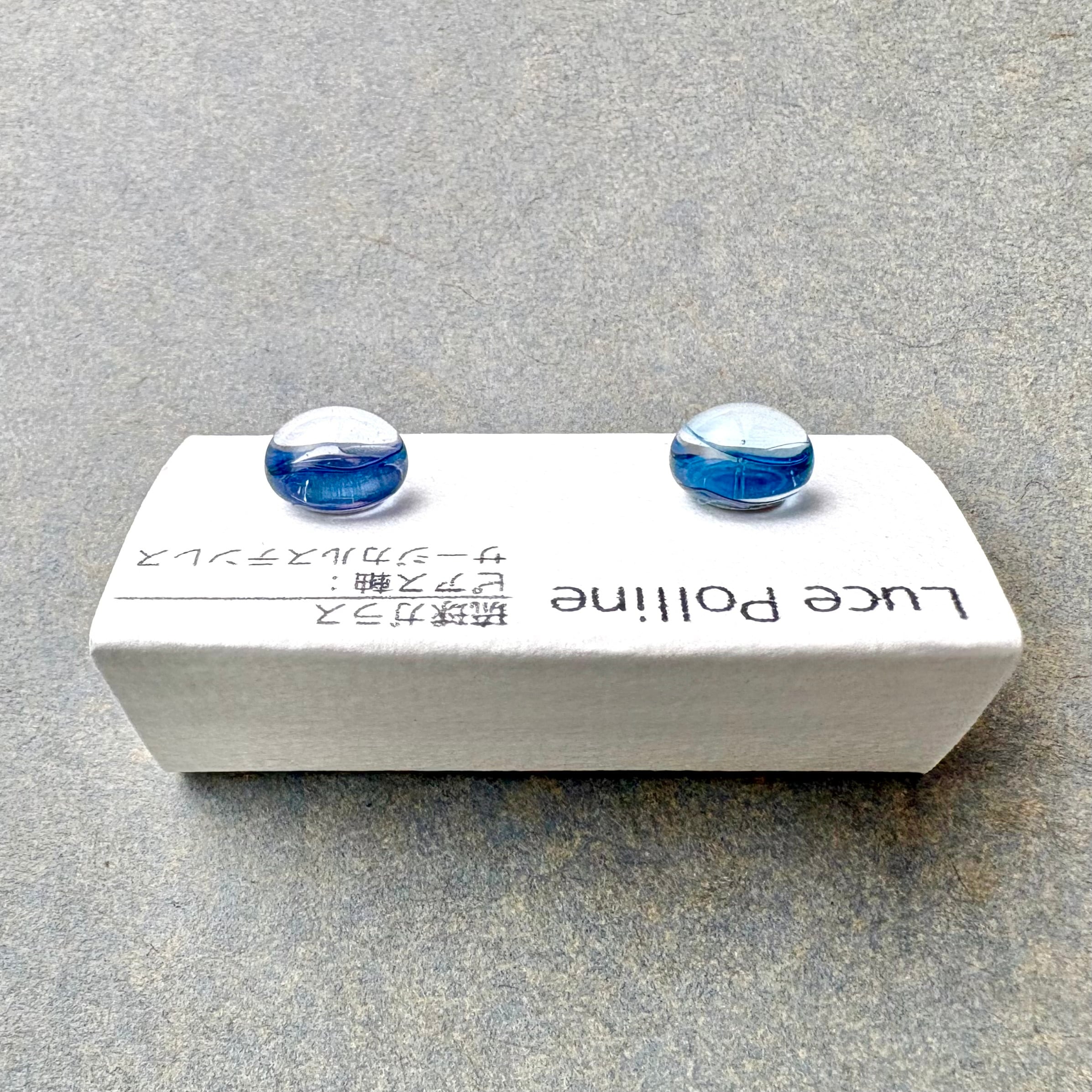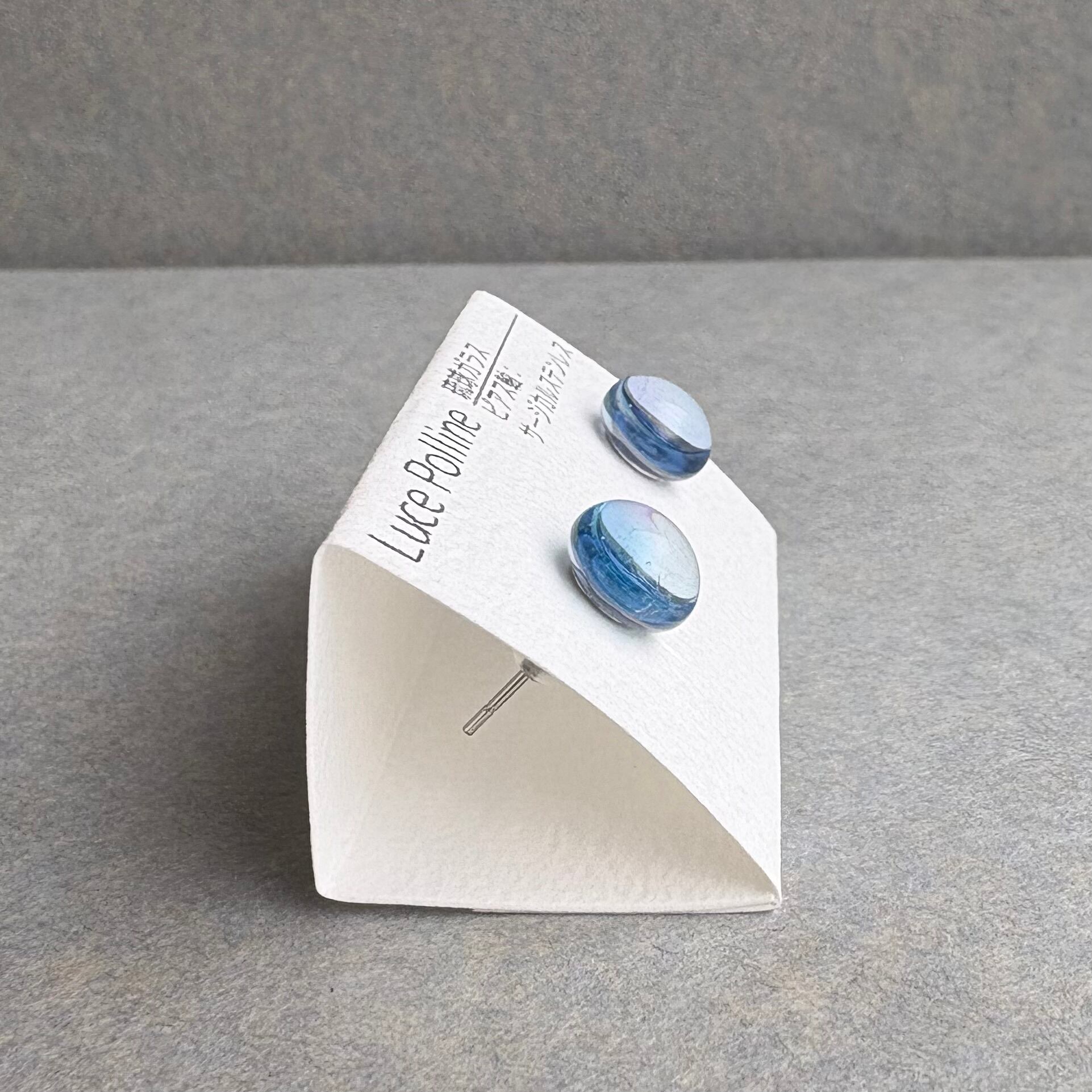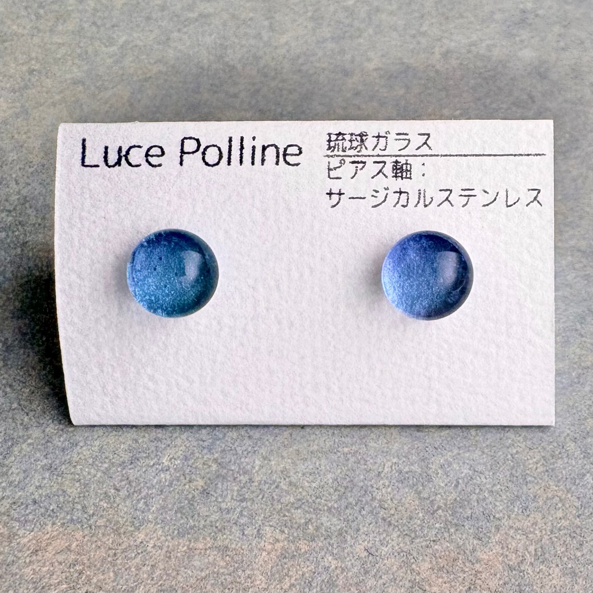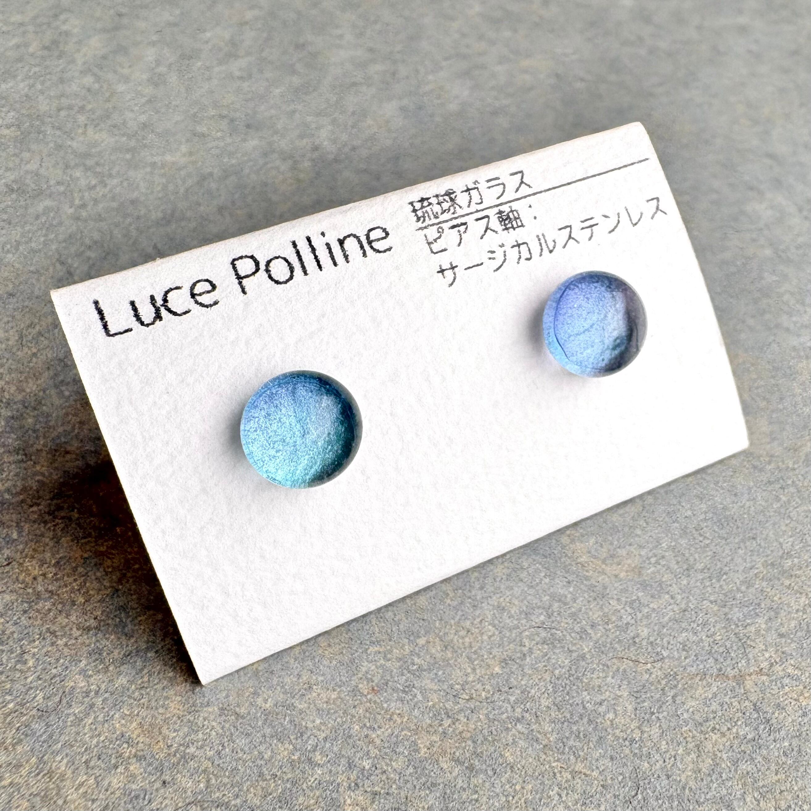 透明なガラスに淡い青と淡い紫が裏面の塗料に乱反射して不思議な魅力を醸し出す琉球ガラスの粒です。