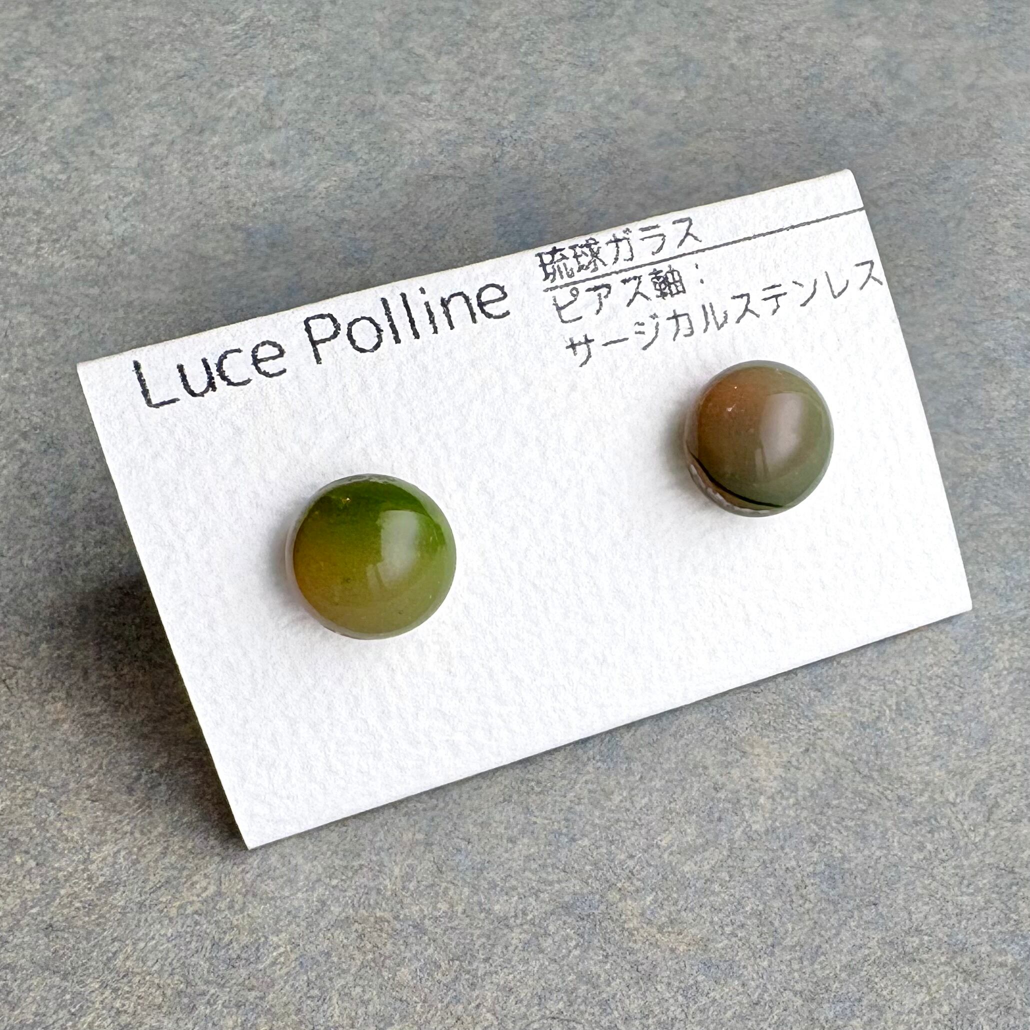 半透明な緑色のガラスの奥を透かしてみると、オレンジ色が覗きます。