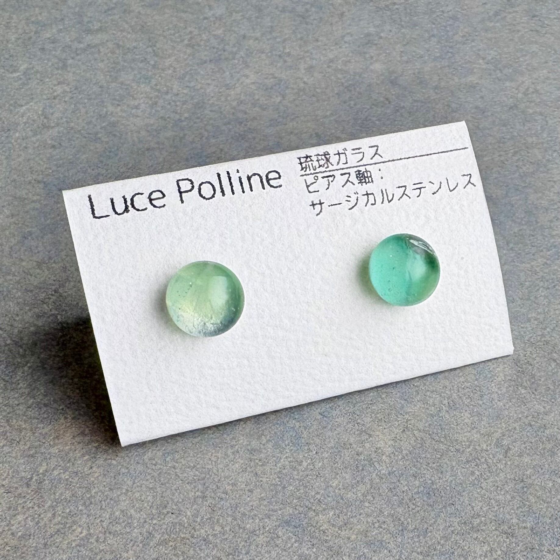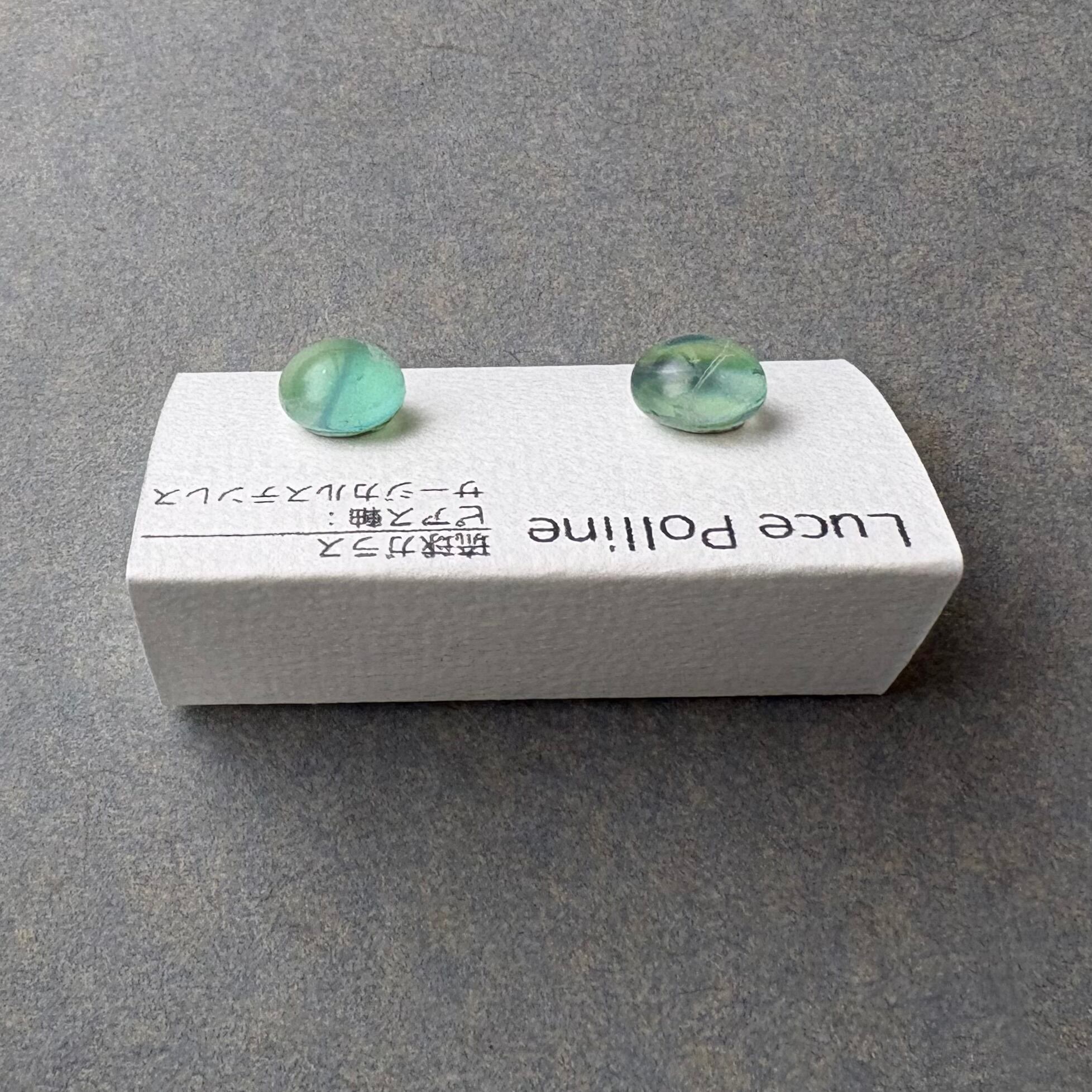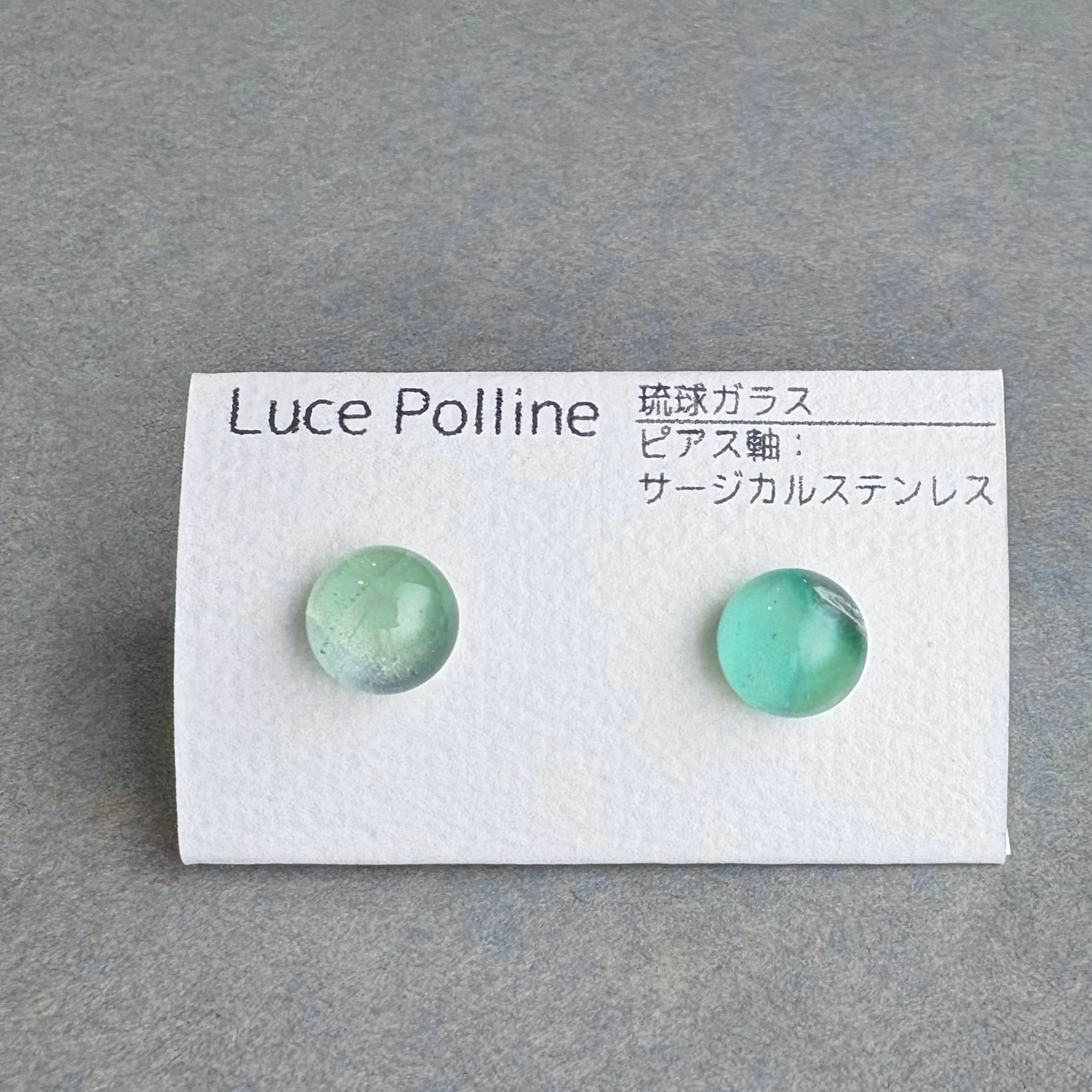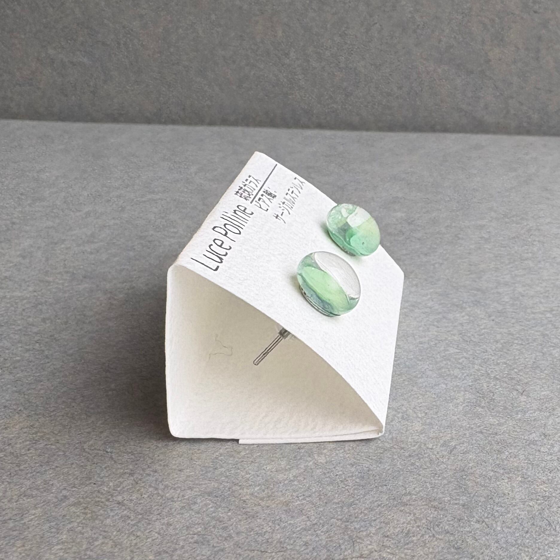 透明なガラスの奥にパステルカラーのグリーンが可愛らしい琉球ガラスのピアスです。