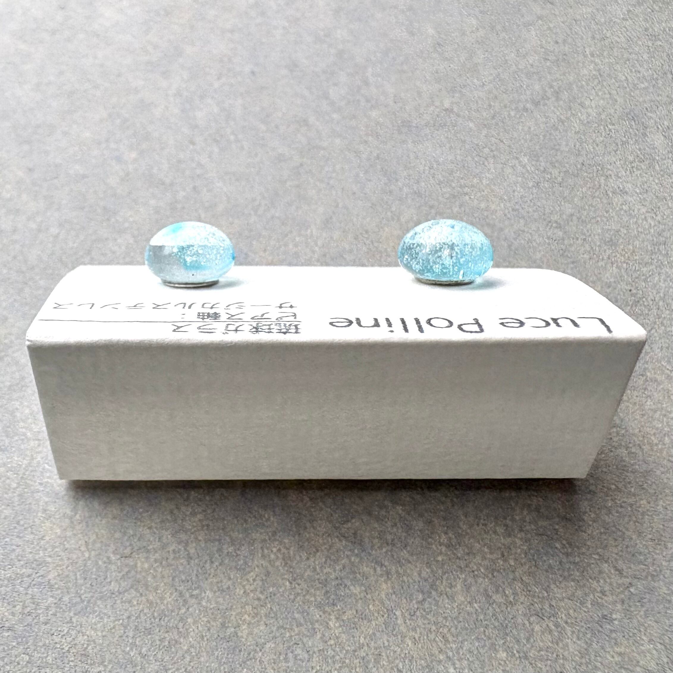 淡い水色がたっぷりの気泡を含んで軽やかでの美しい琉球ガラスの粒です