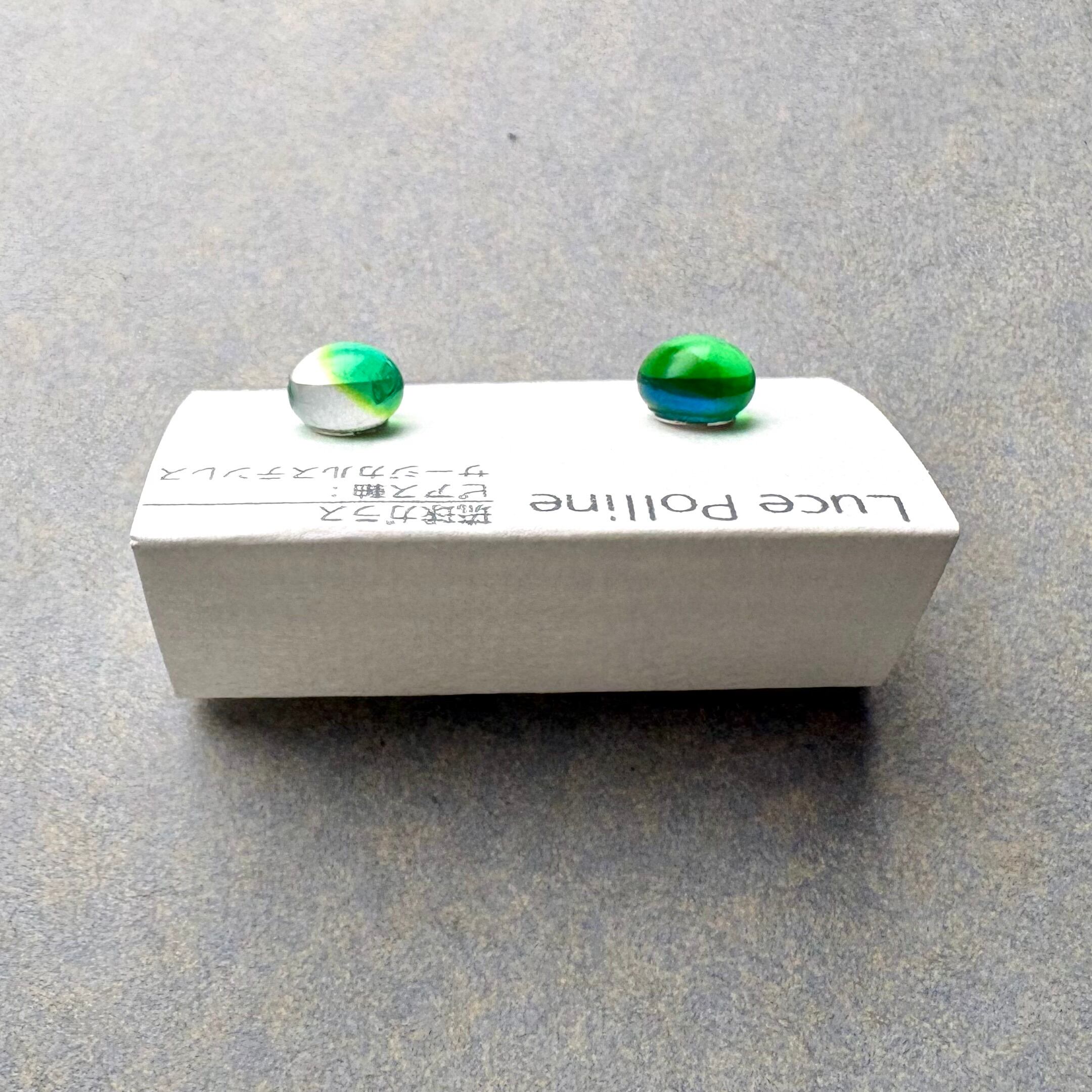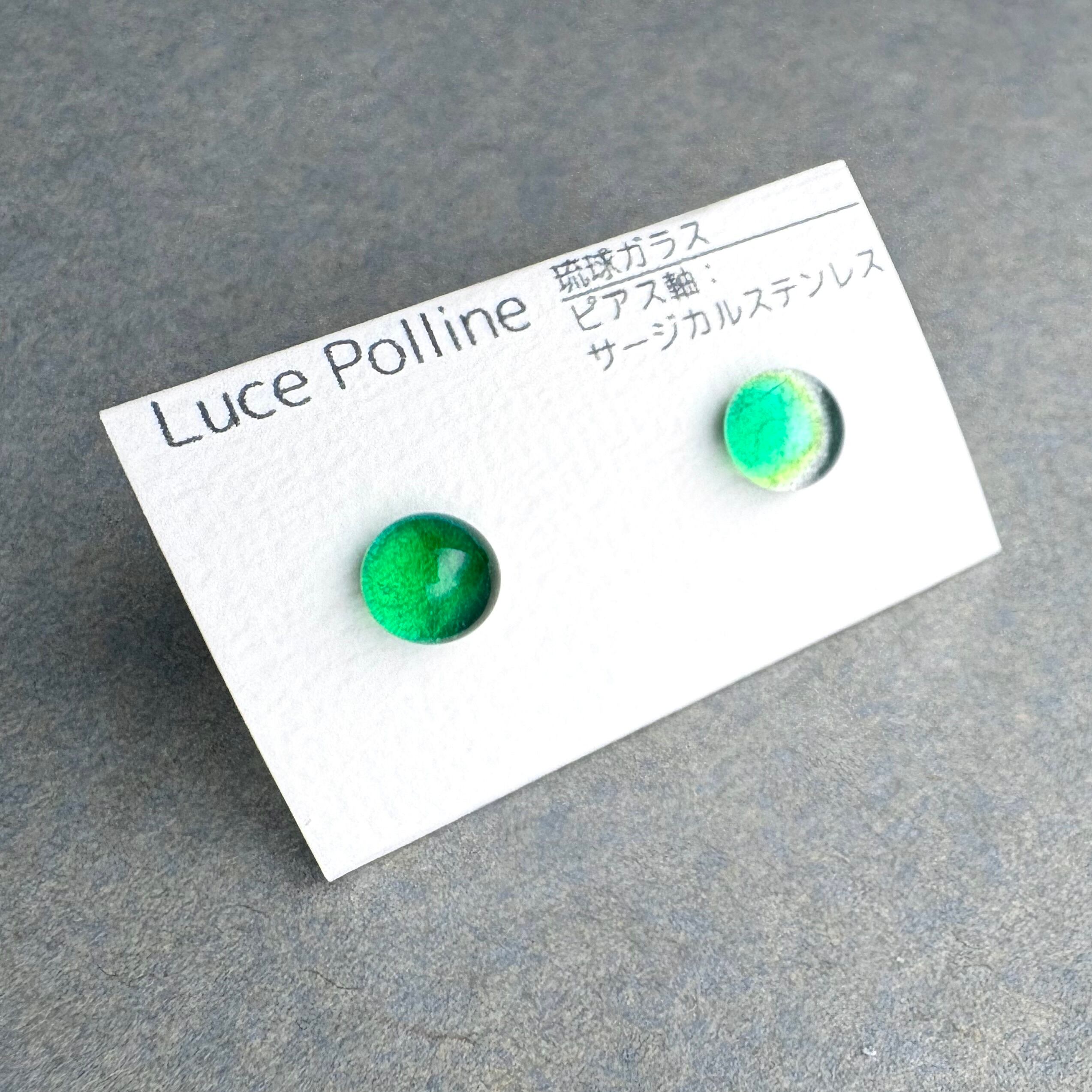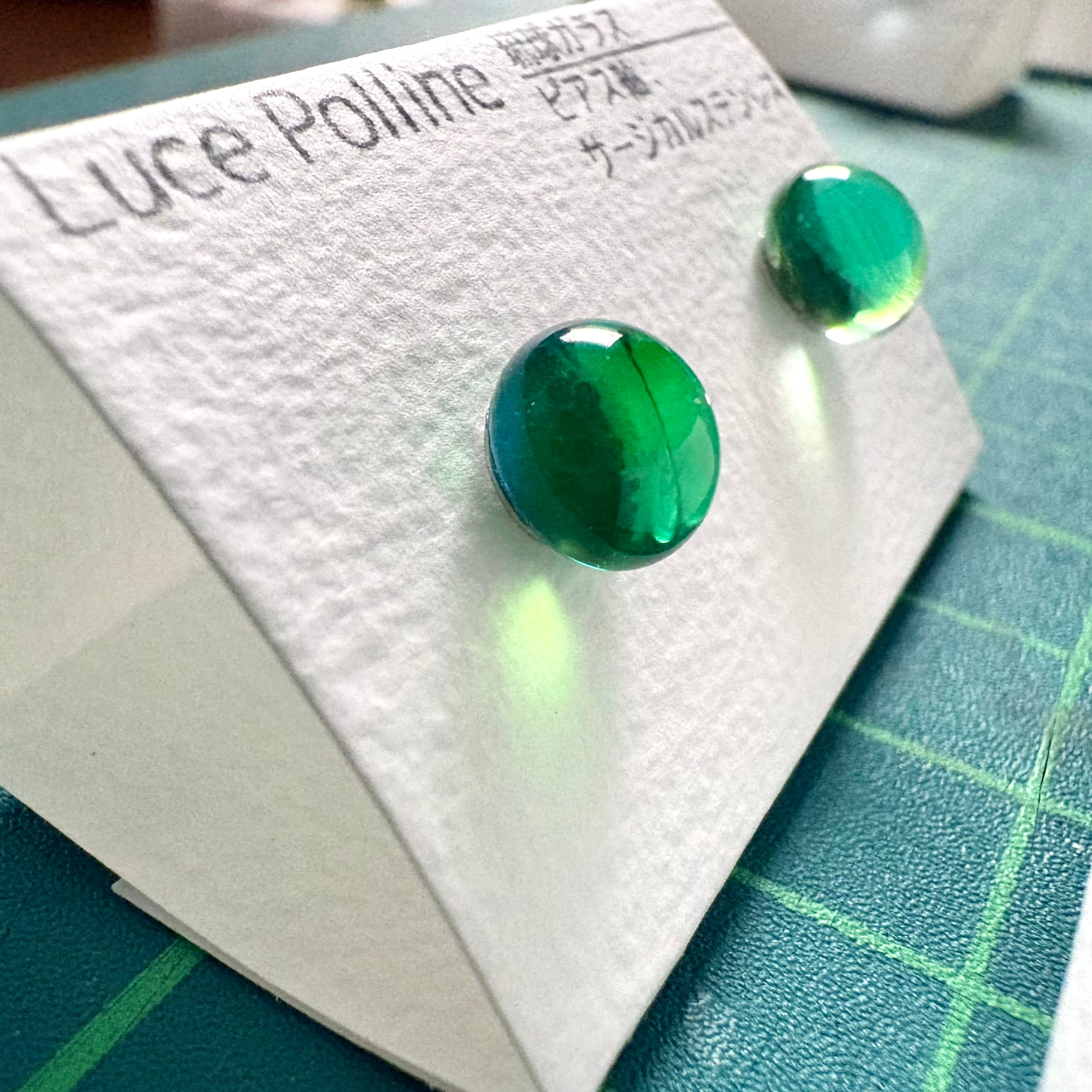 アシンメトリーなエメラルド色の琉球ガラスの粒です