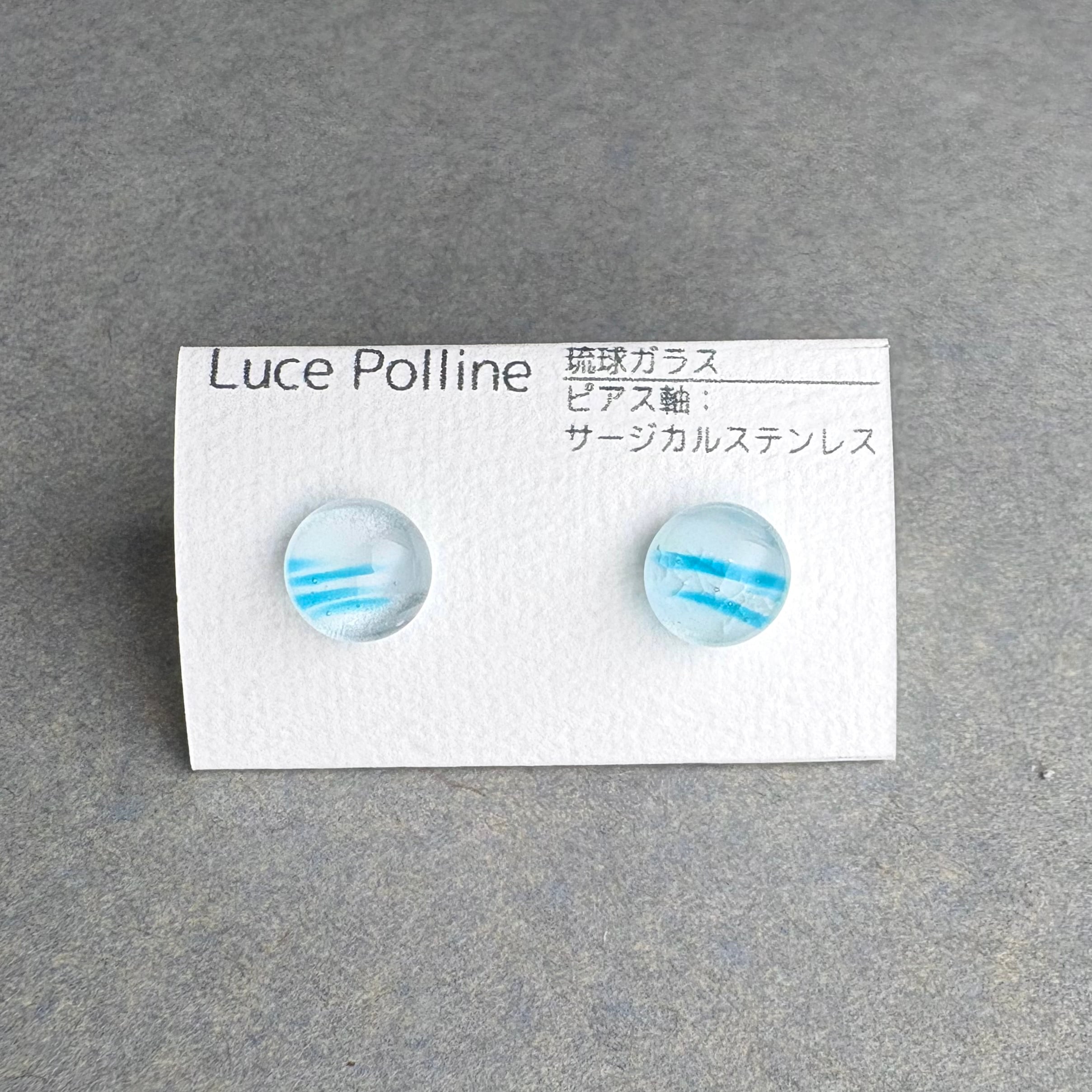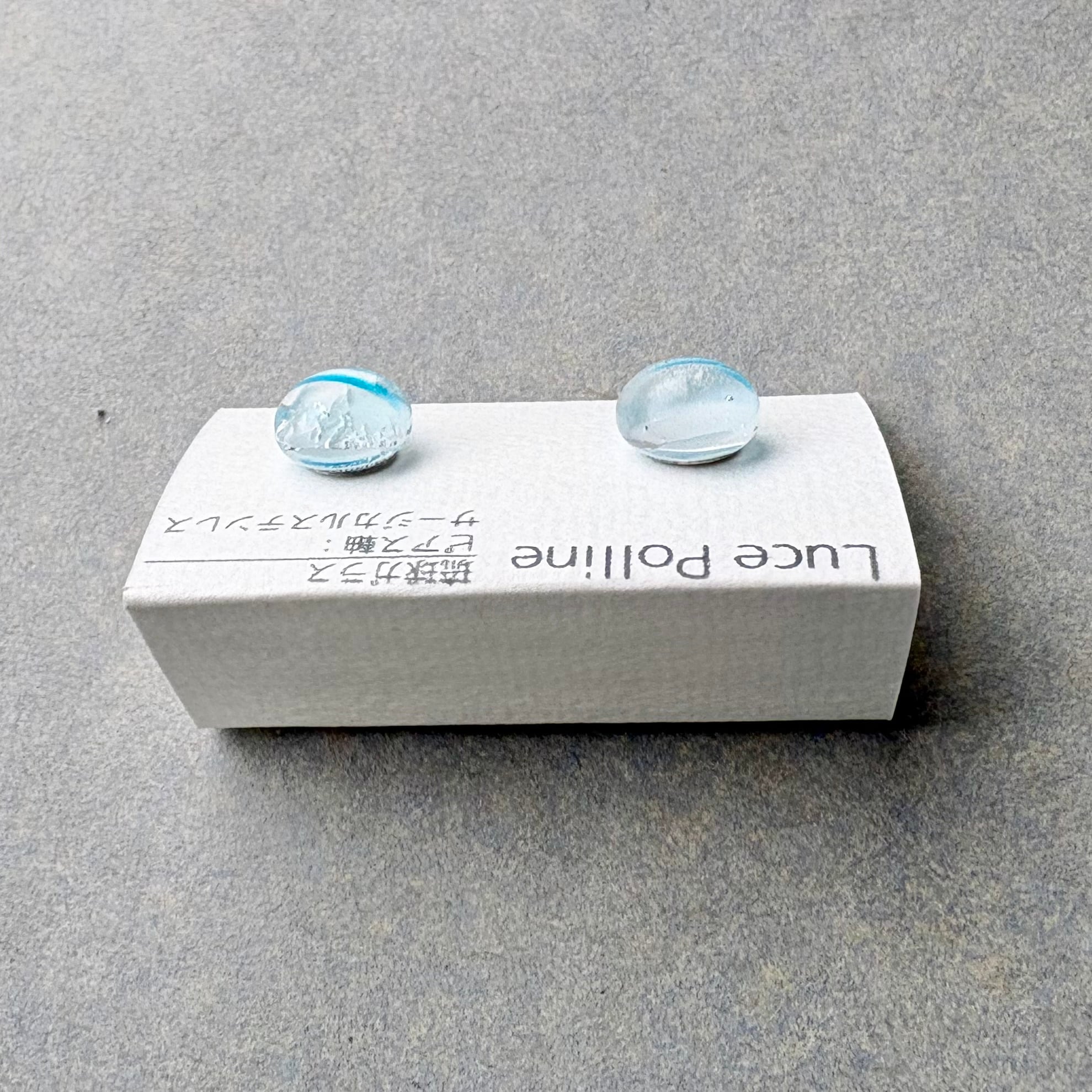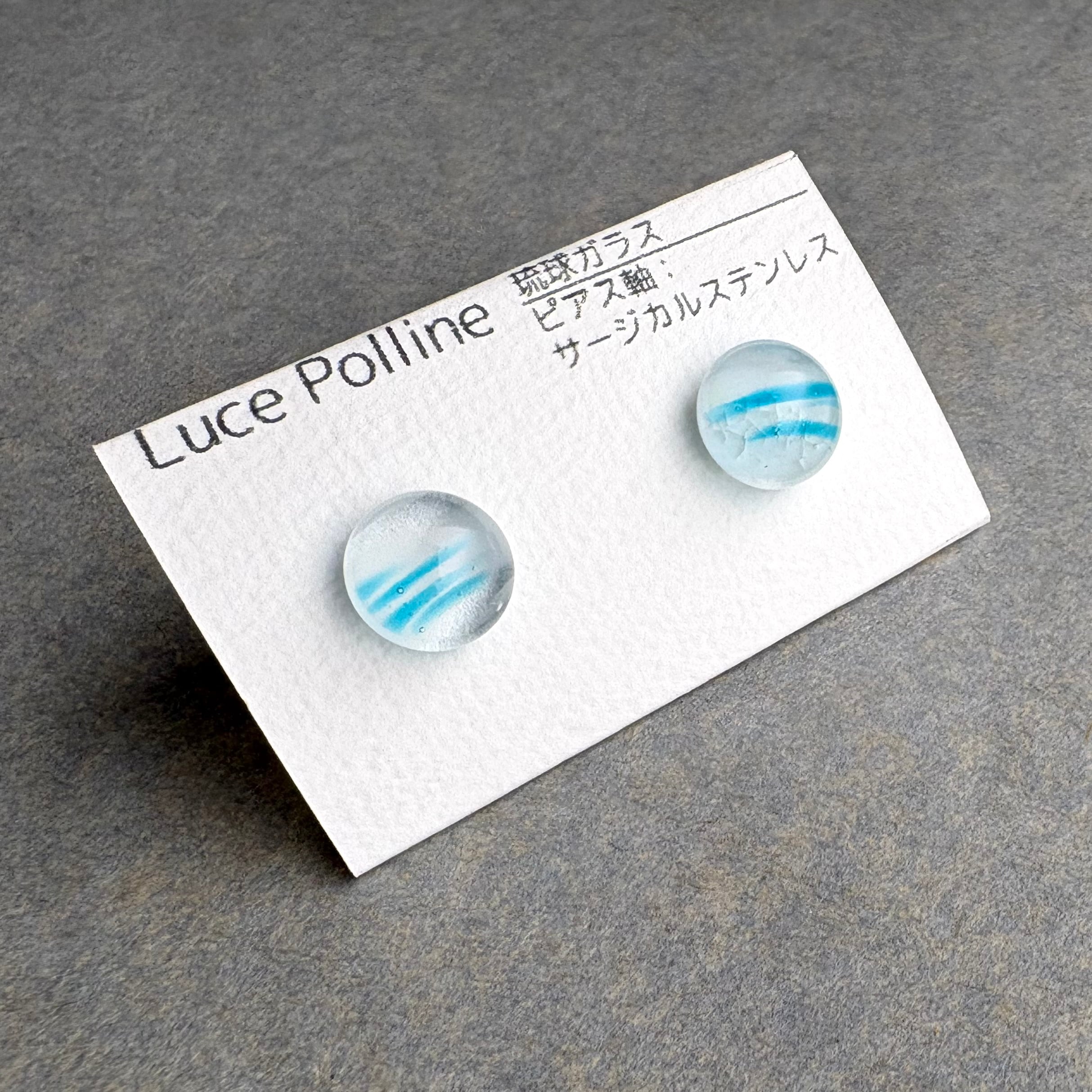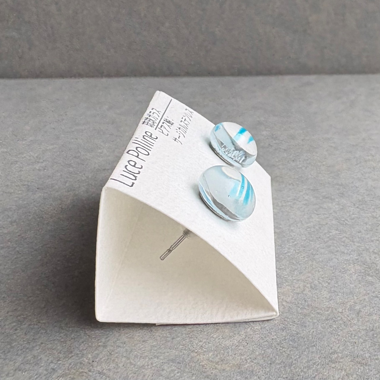 透明ながらすの奥に白いガラス、表面に青空色のガラスと奥行きのあるデザインの琉球ガラスの粒です。
