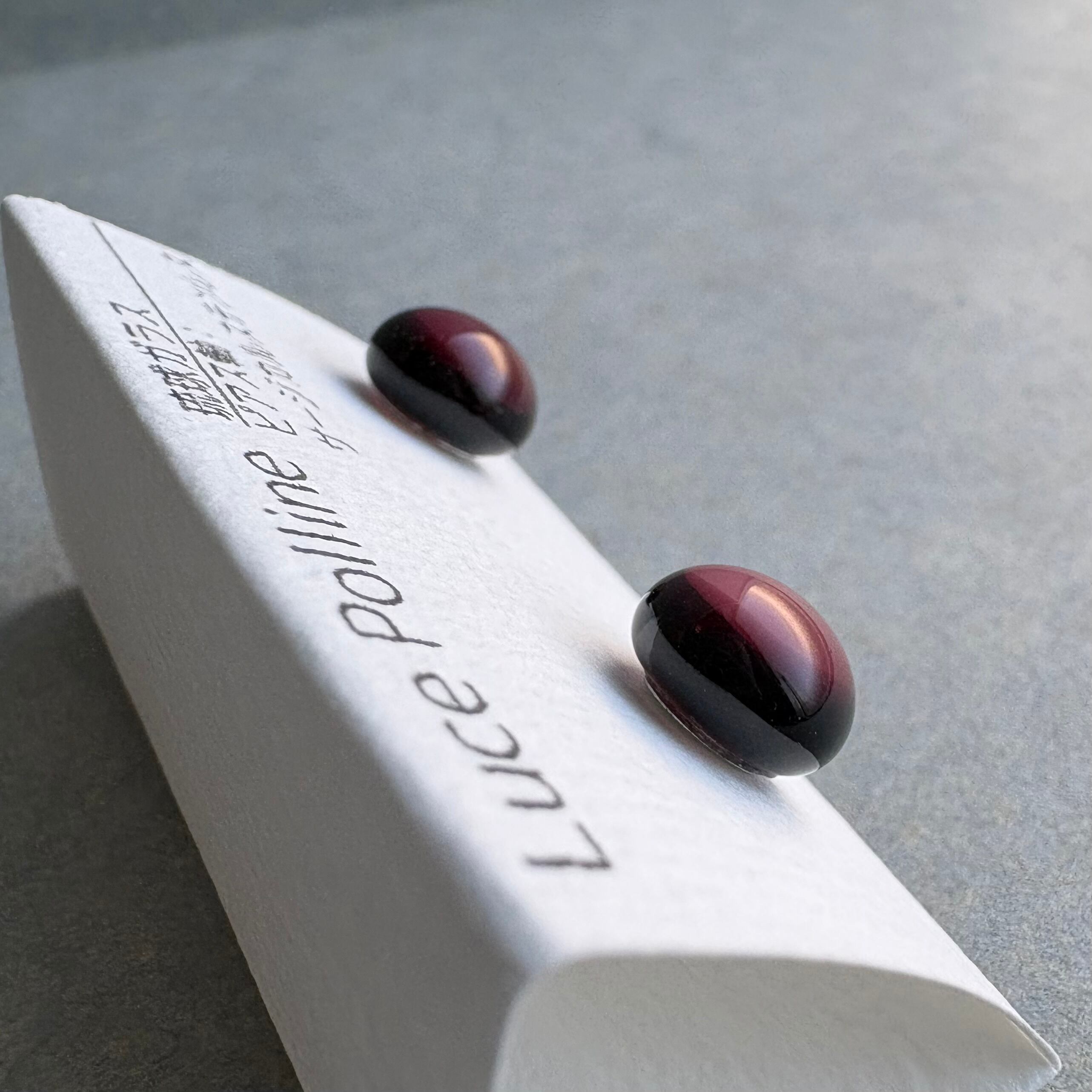 一見黒いガラスの粒ですが、光に透かすと透明なプラム色が美しい琉球ガラスの粒です。