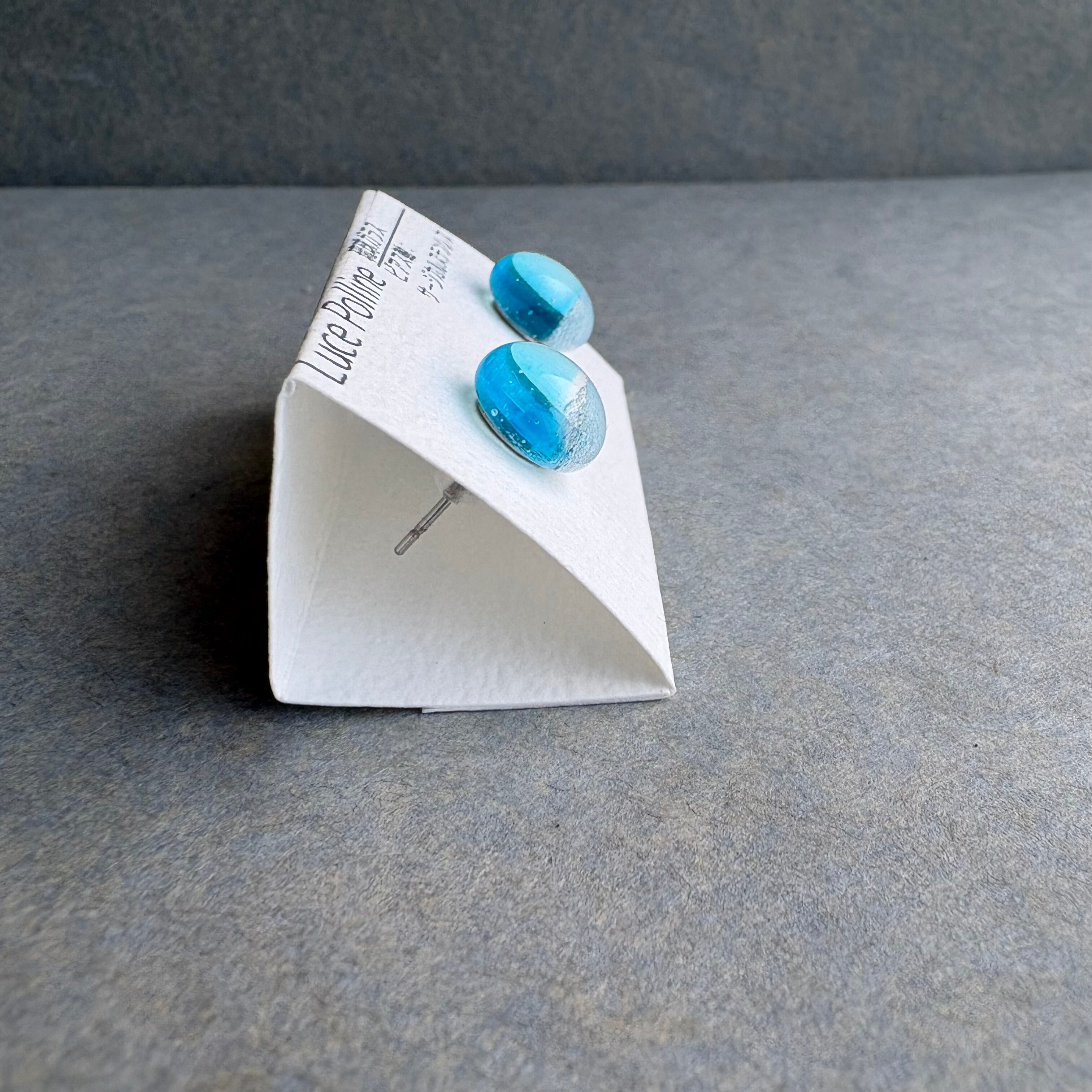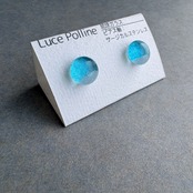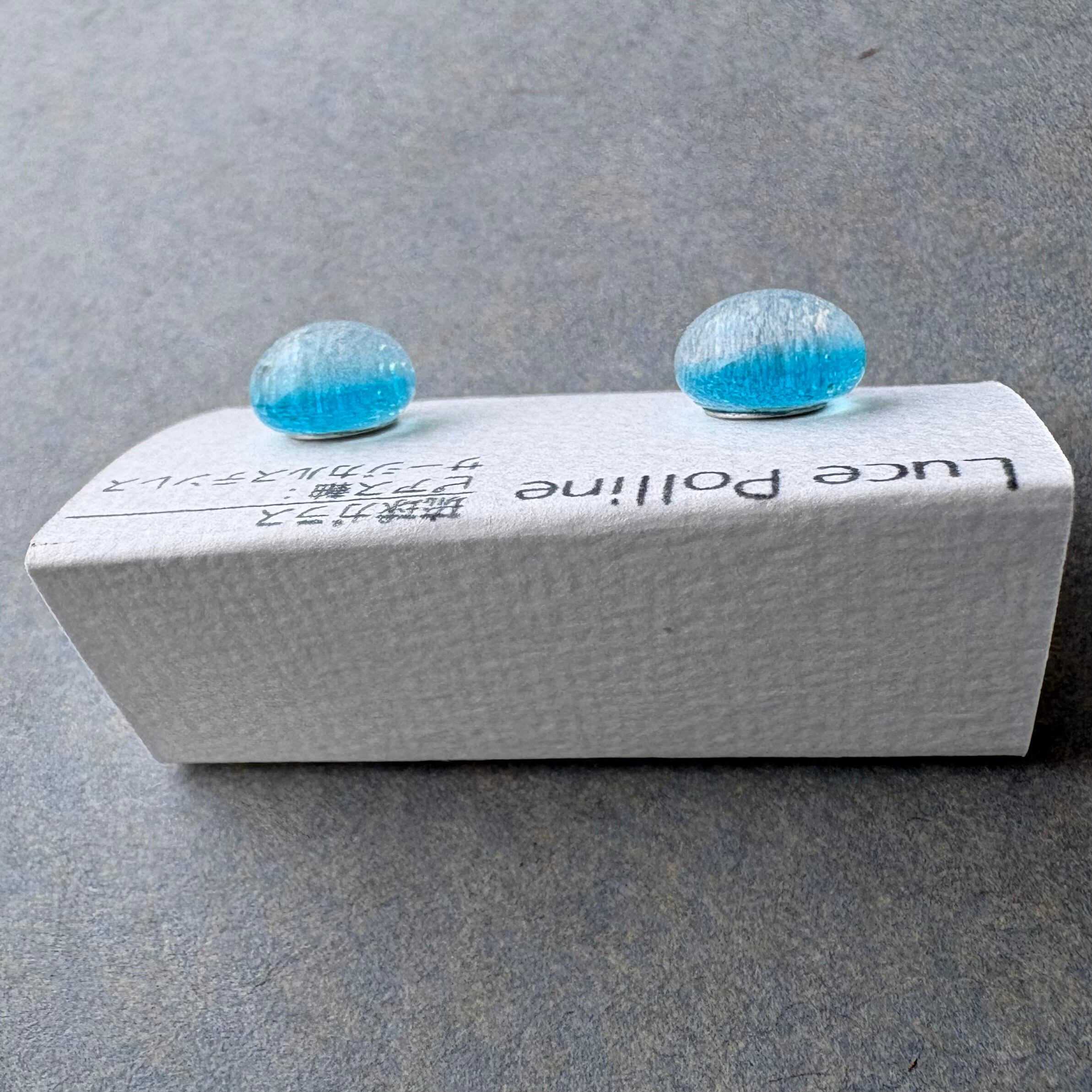 透明な水色に白い気泡の入った琉球ガラスの粒です。