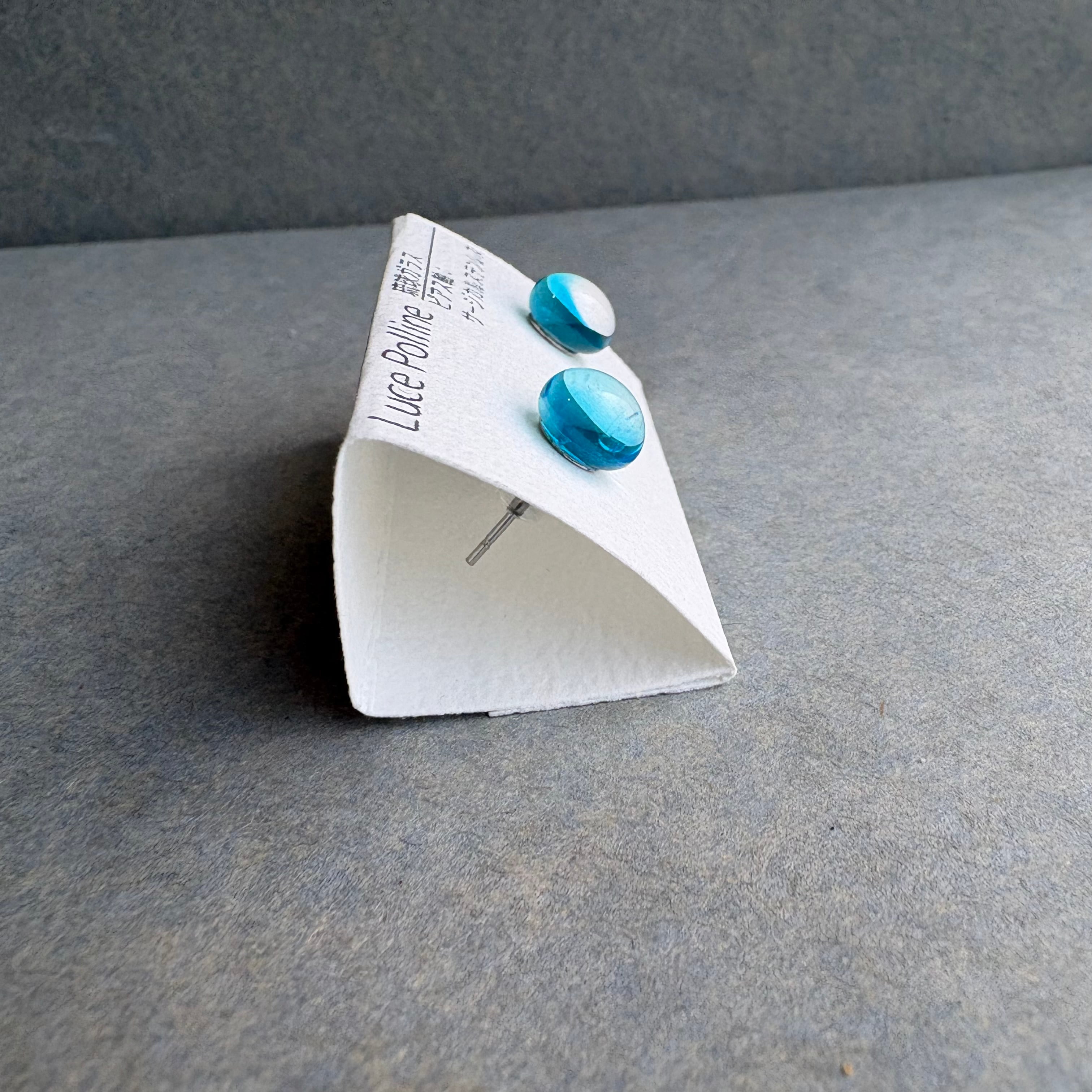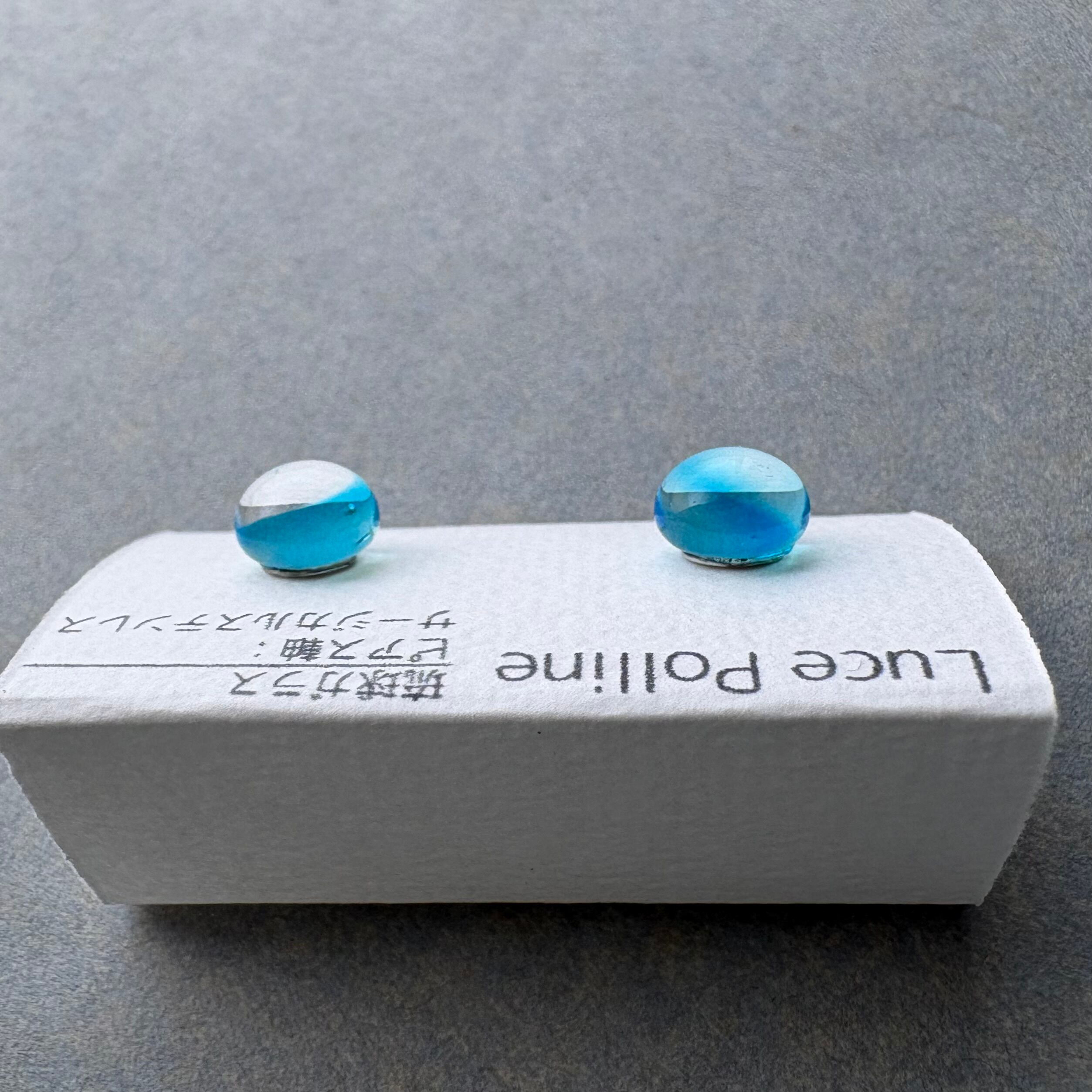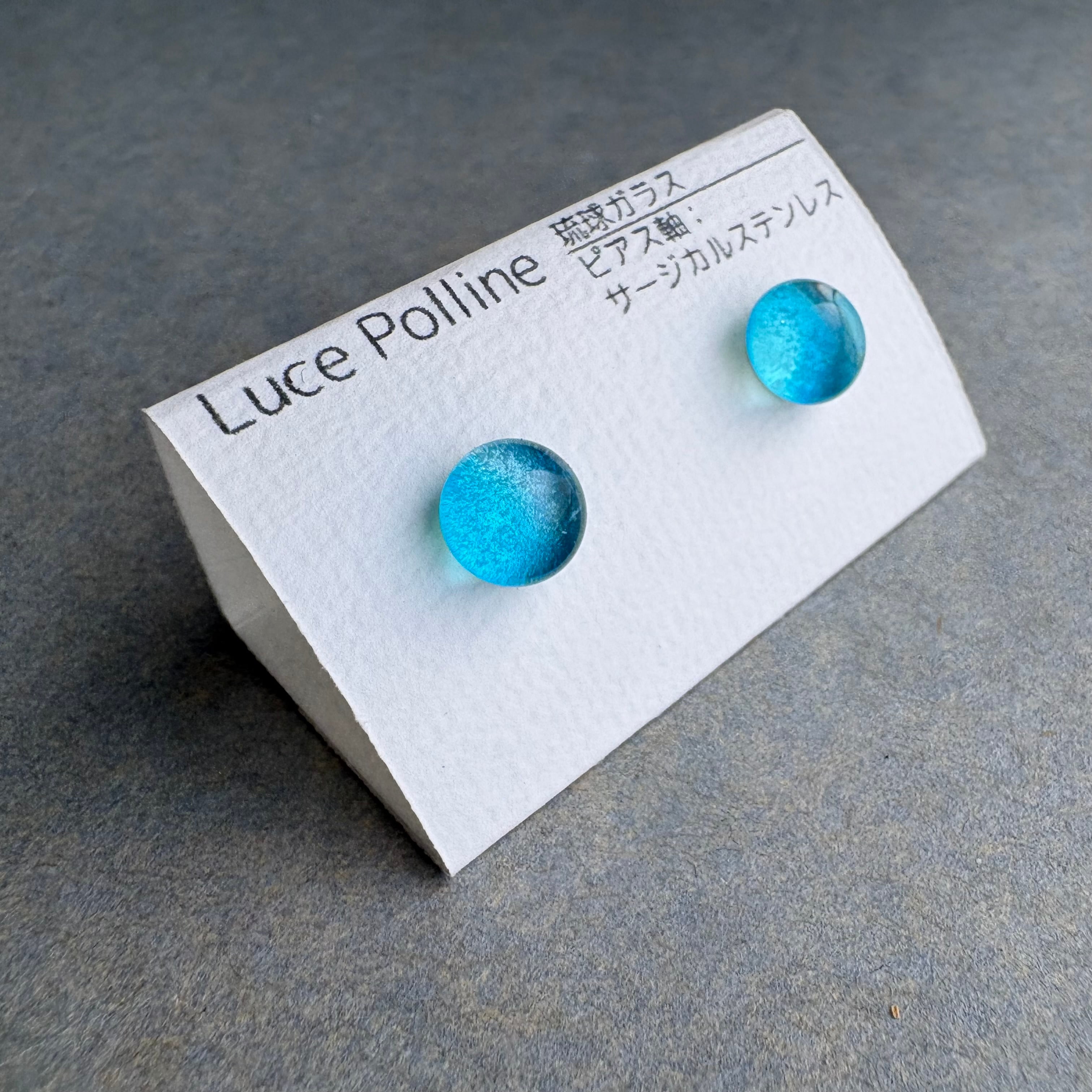 透明な水色のグラデーションが美しい琉球ガラスの粒です。