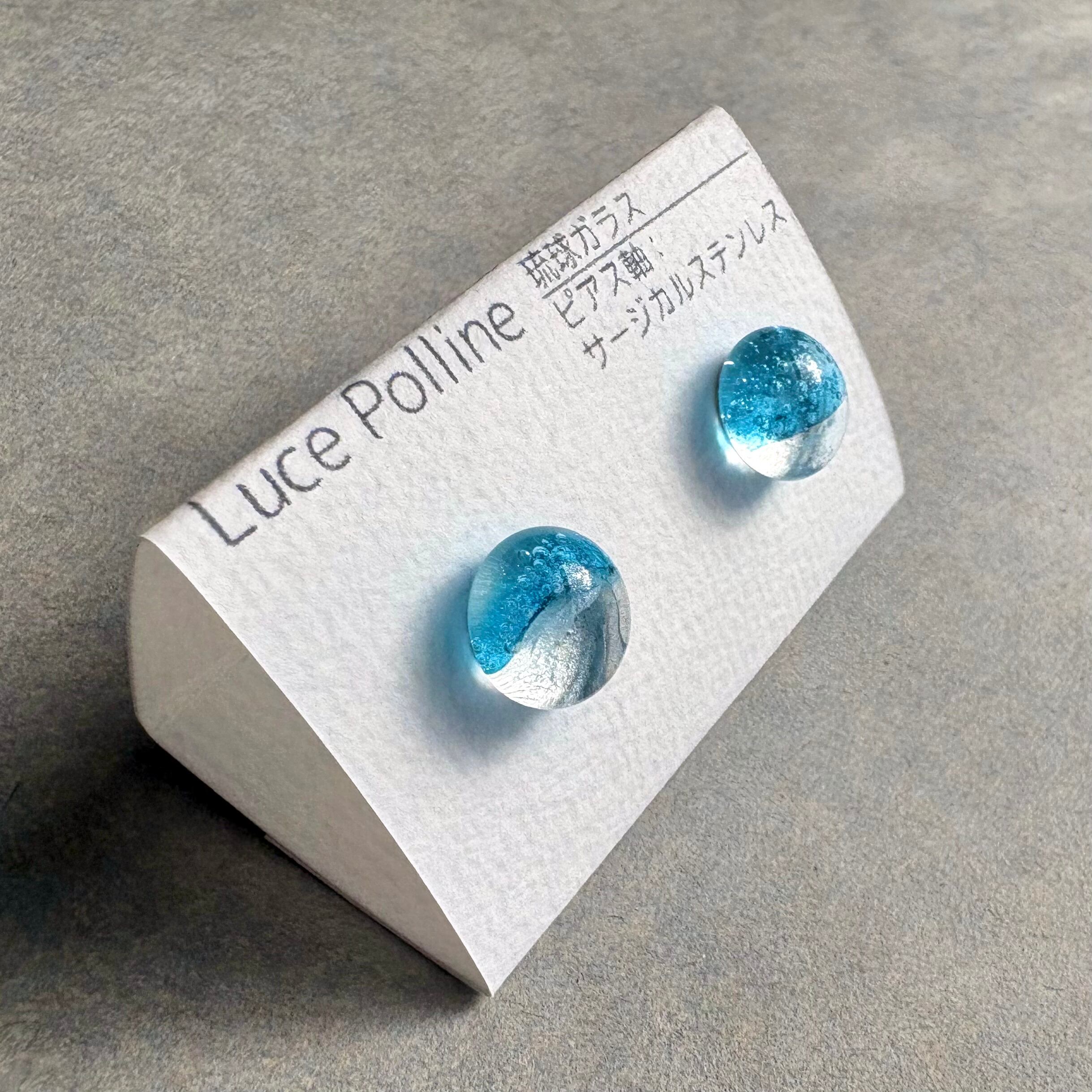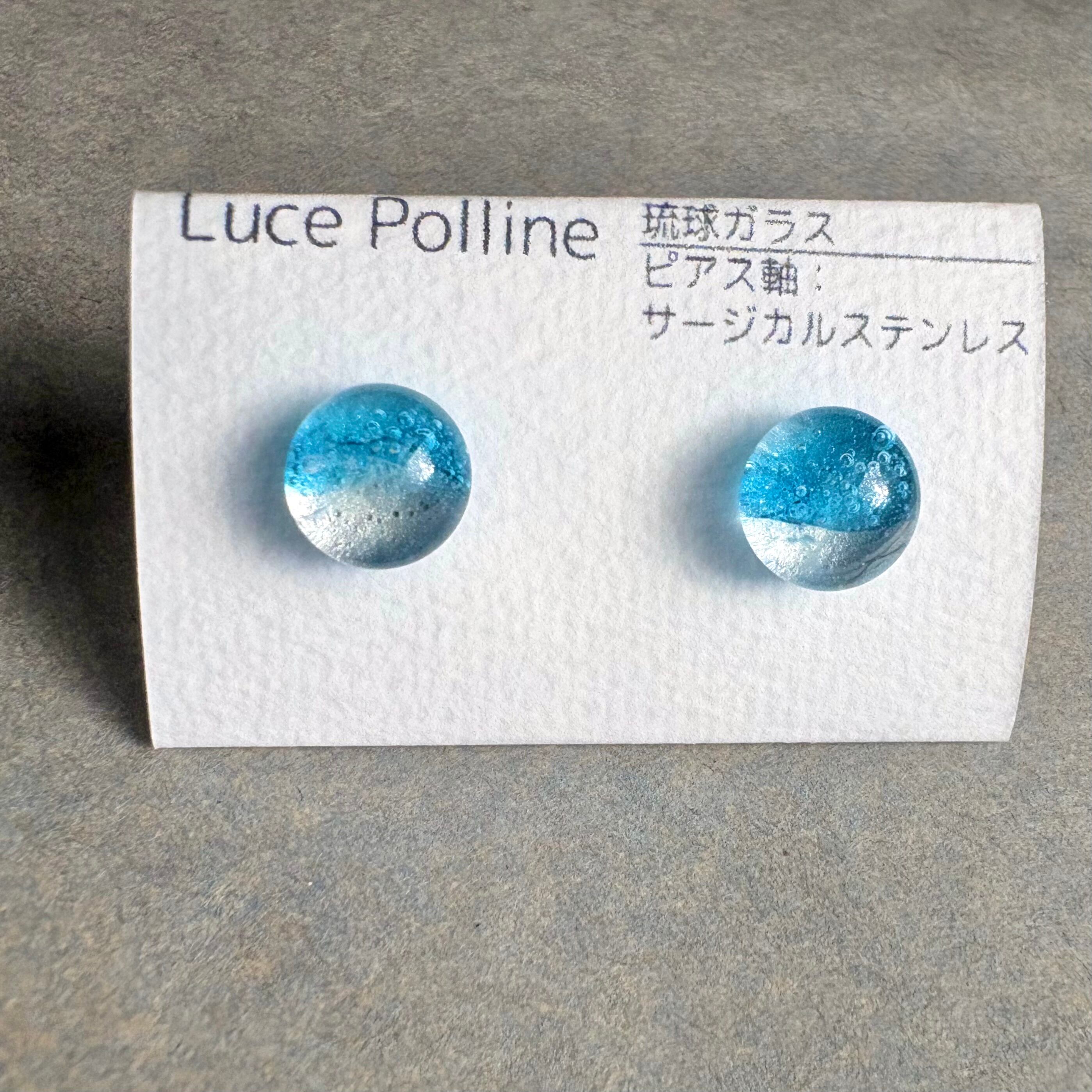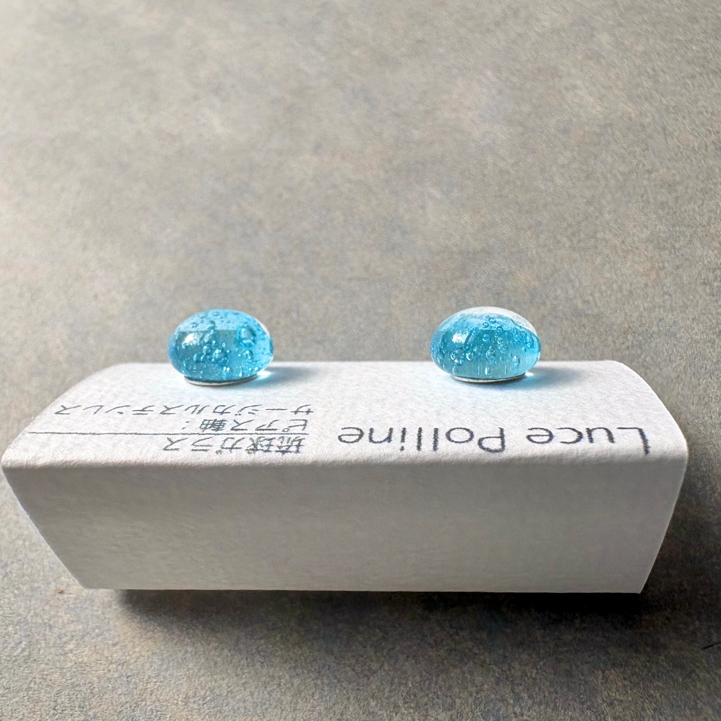 水色のガラスにたくさんの気泡が躍動的な琉球ガラスのピアスです。