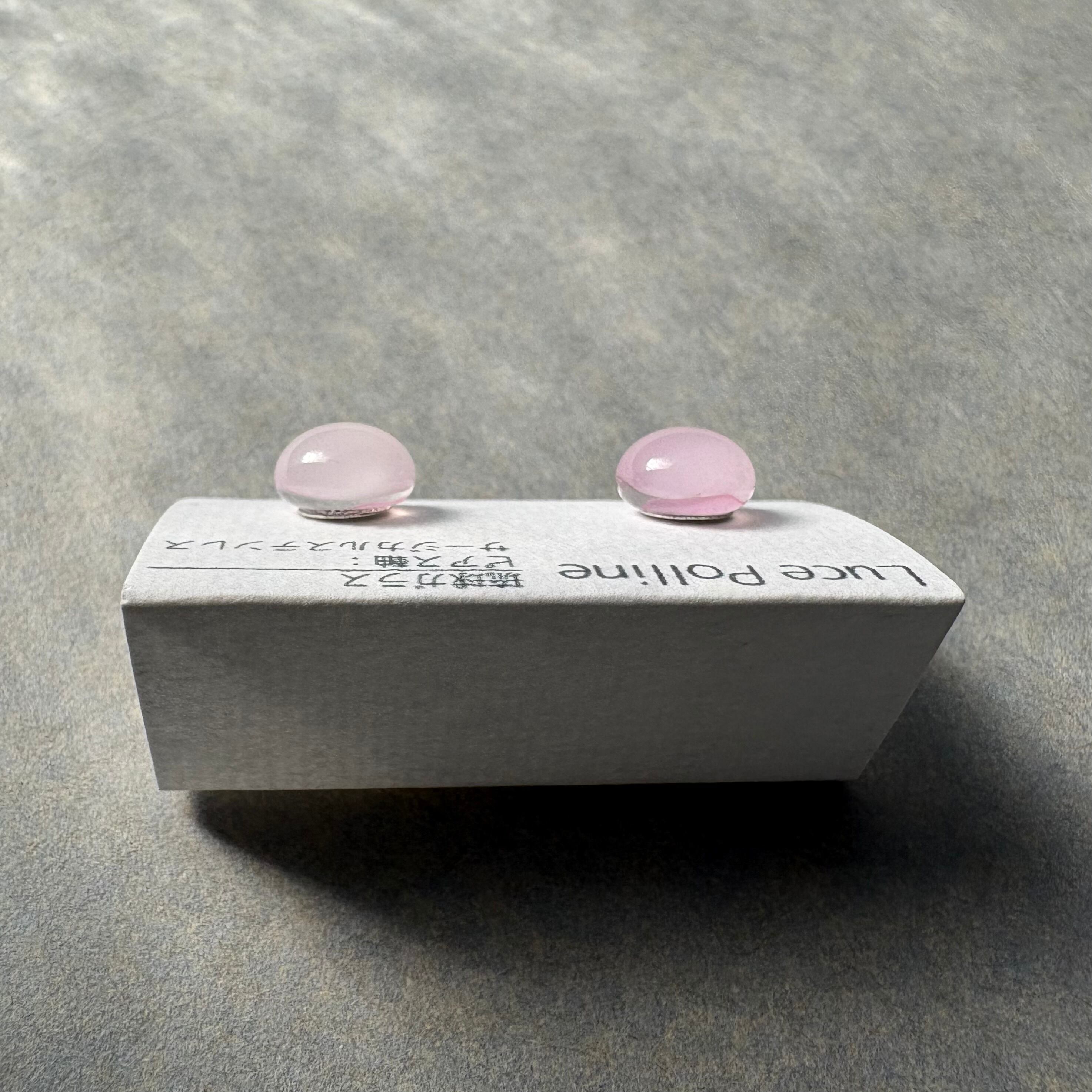透明なピンクがやわらかく霞む、琉球ガラスのスタッドピアスです。