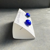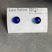 透明な濃い青に、透明の緑が浮かぶ琉球ガラスのスタッドピアスです。