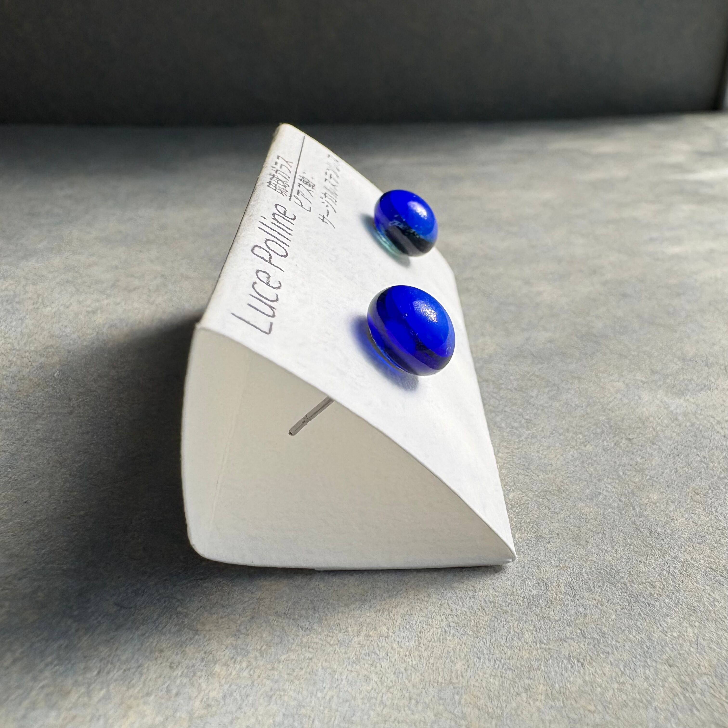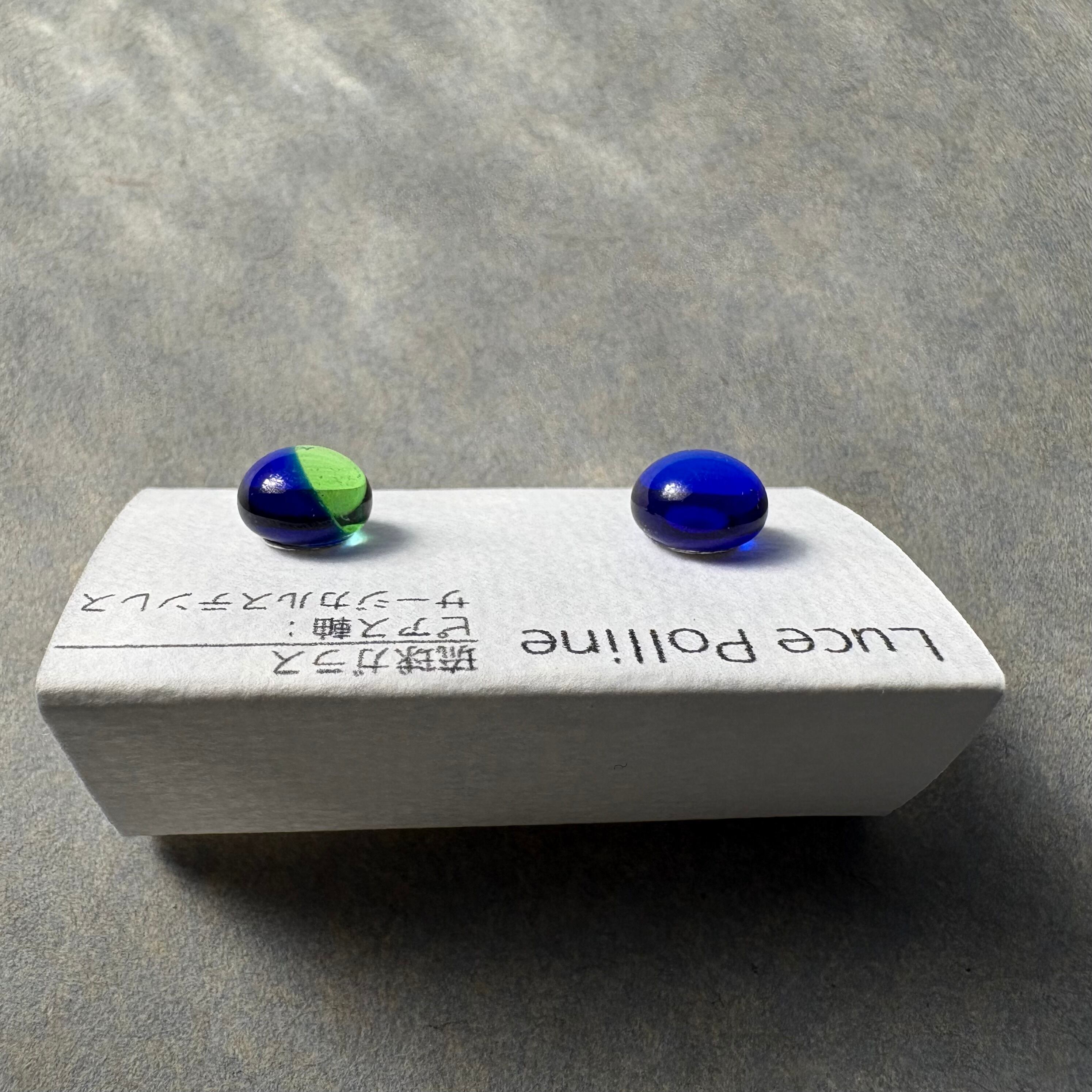 ※2つの粒はアシンメトリーです。片方は深い青、もう片方は深い青と透明の緑色のガラスを使用しています。
