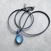 ・琉球ガラス、ワックスコード、ポリエステルネックレス50cm+アジャスター5cm